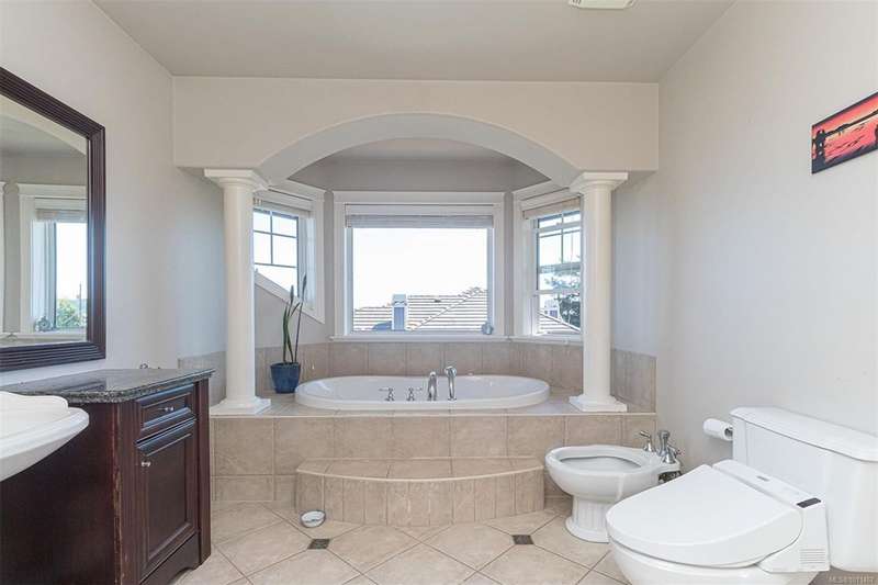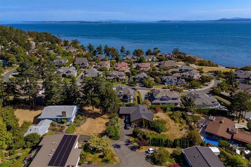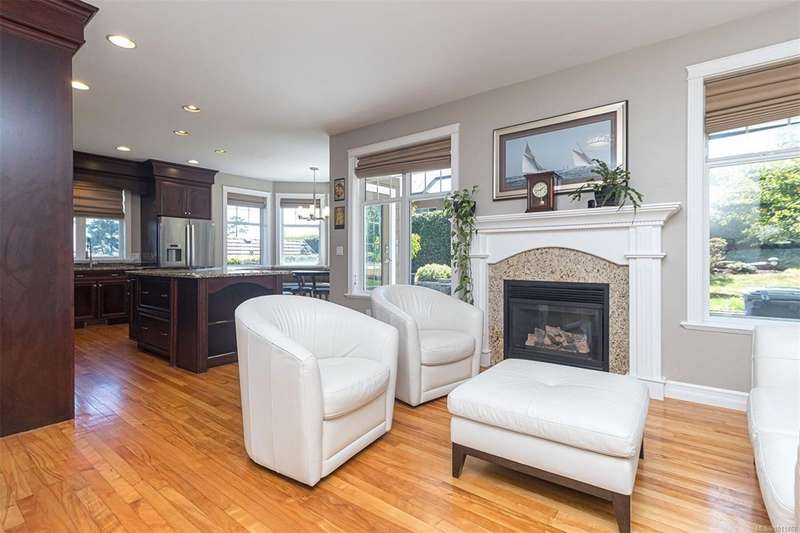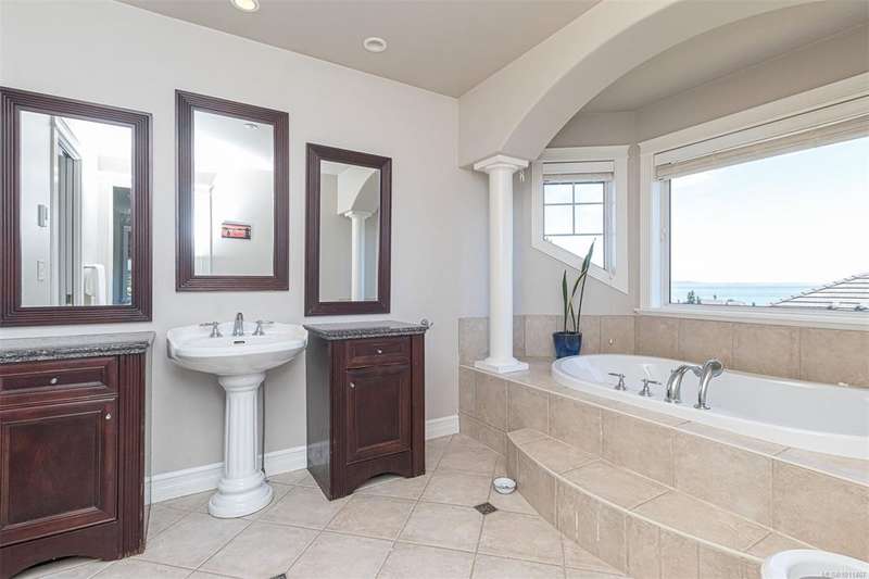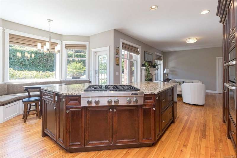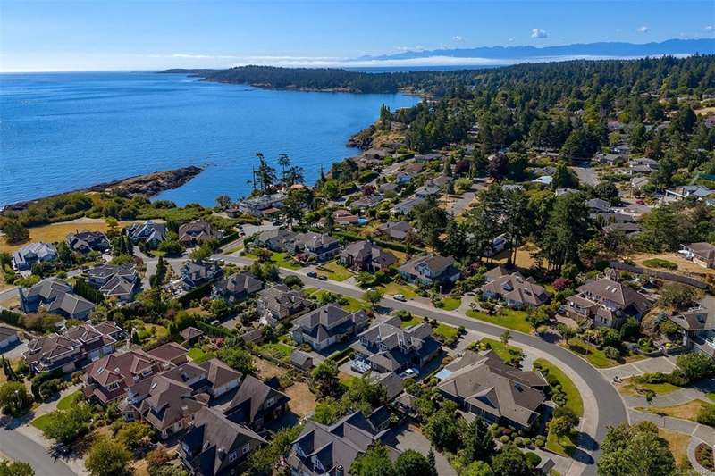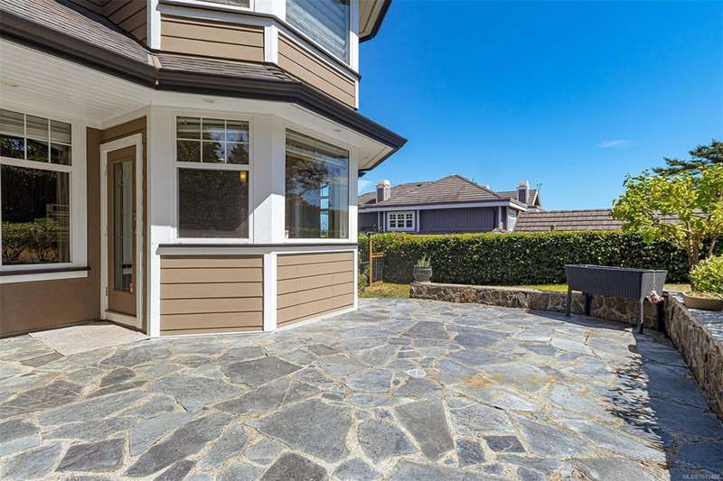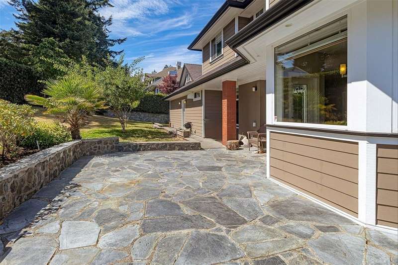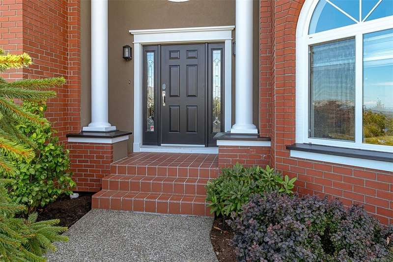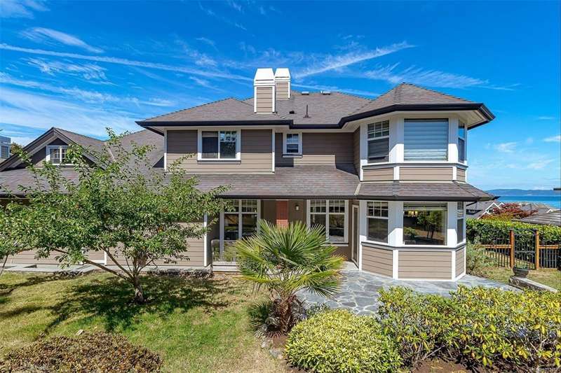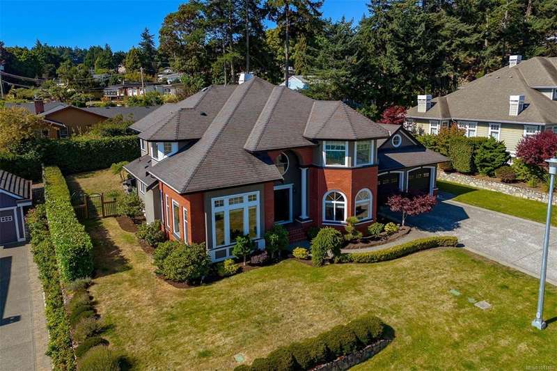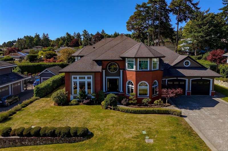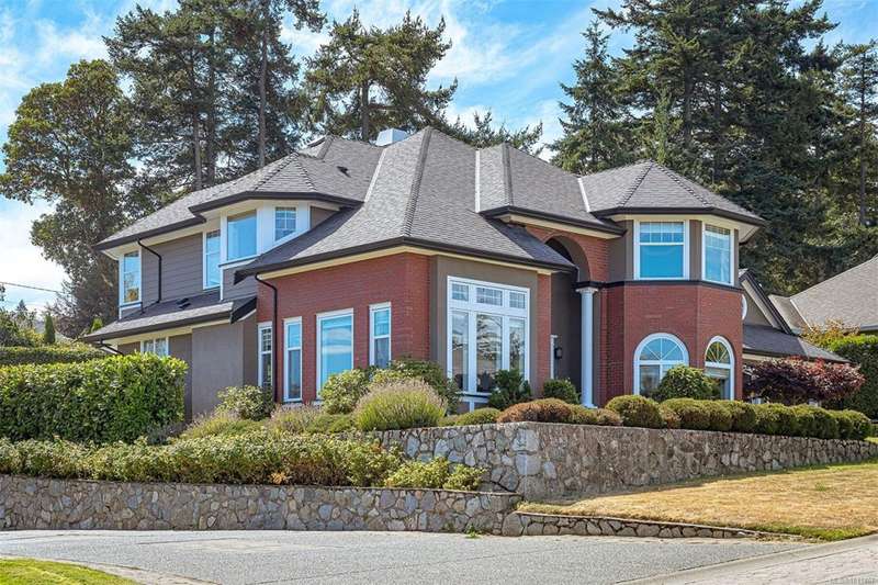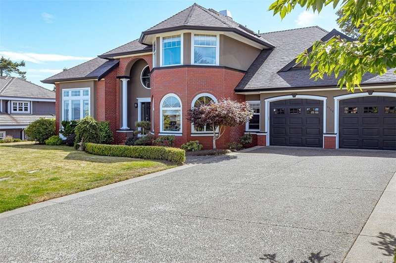 A Coastal Classic Reimagined! In the heart of Gordon Point Estate-an Oceanfront enclave known for its prestige and natural beauty-this Ocean-View Home marries timeless colonial architecture with modern comfort. The red brick fa�§ade, cathedral entry, and sweeping staircase makes a striking first impression. The main level features a formal living&dining room, elegant kitchen w/rich wood cabinetry, oversized island, a Spice Kitchen keeps the main kitchen pristine, cozy breakfast nook, family room w/gas fireplace, Rec Room, Gym&Den or use for bedrooms; Upstairs, the primary suite enjoys a luxe ensuite, while 2 other BDs each have their own bath. A storage room w/washer & two attic-style flex rooms add versatility. Lower level offers 2BD, 1BA, laundry/kitchenette-ideal for guests or create an in-law suite. Complete w/Double garage, fenced yard, inviting patios, this home blends prestige, space, and coastal lifestyle in one of Victoria's most desirable communities.