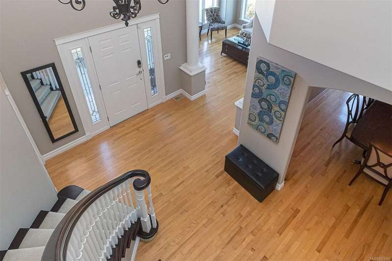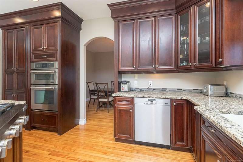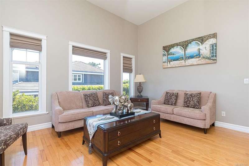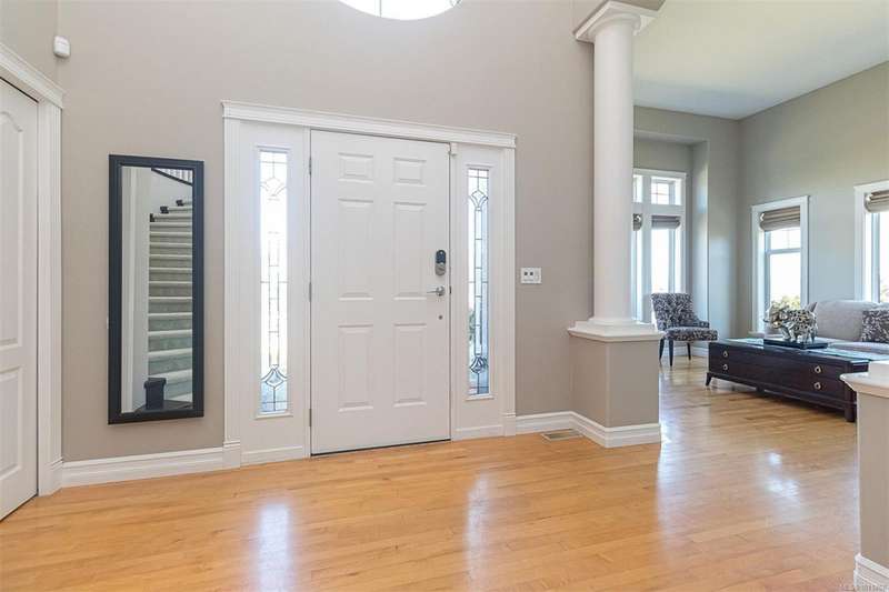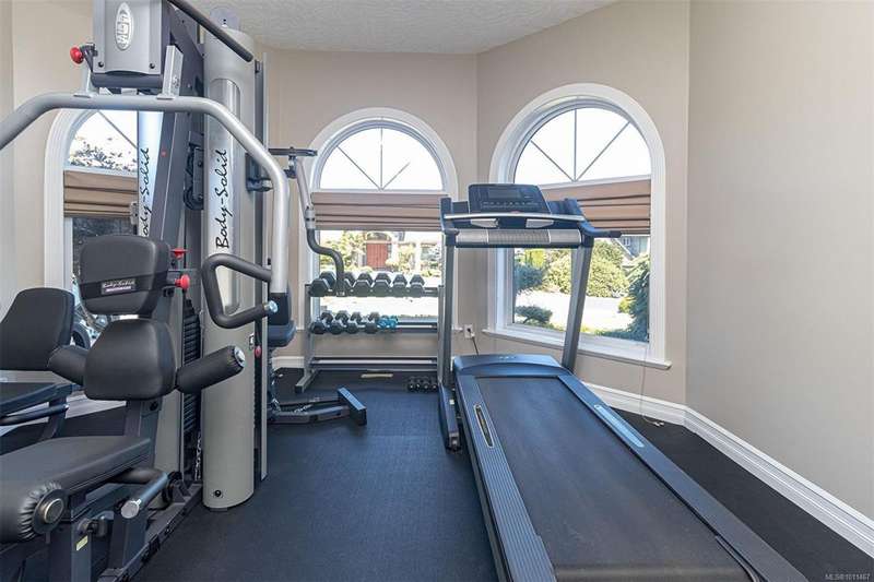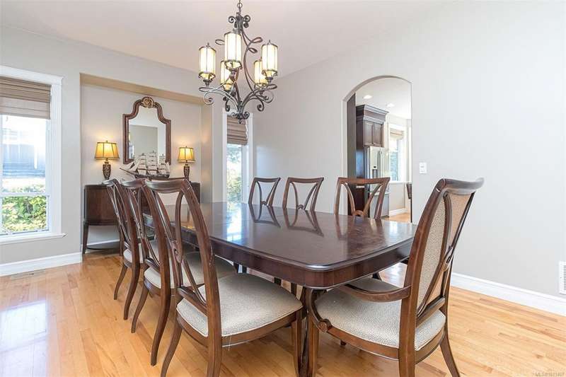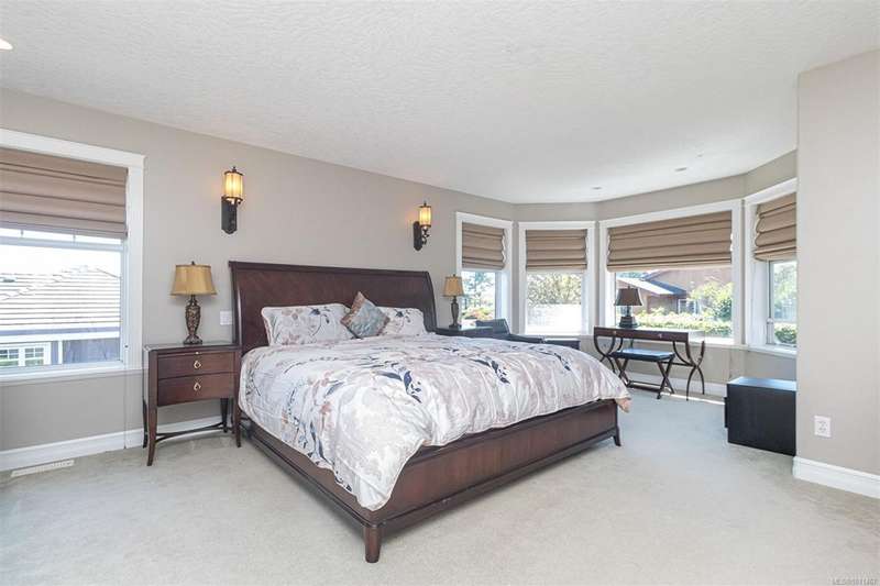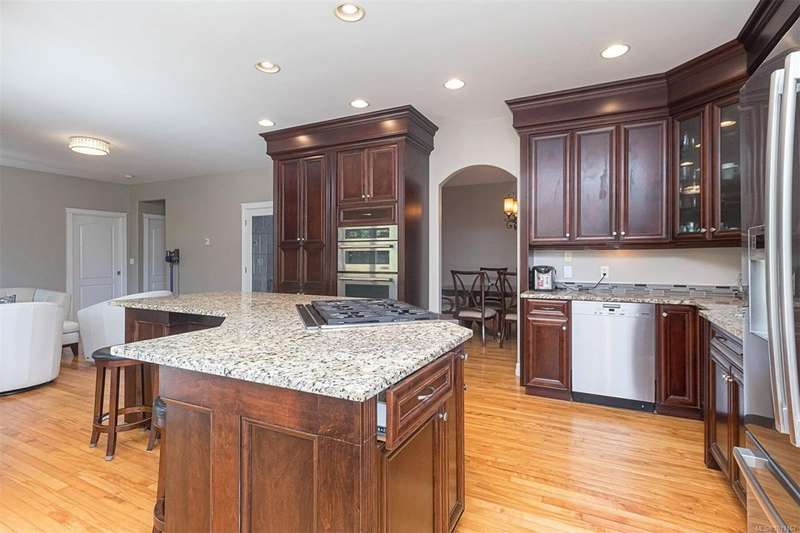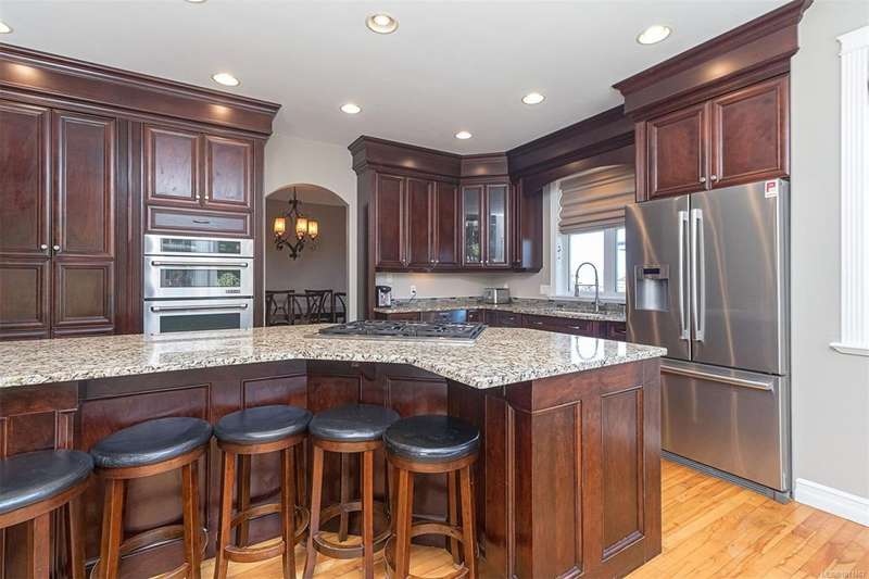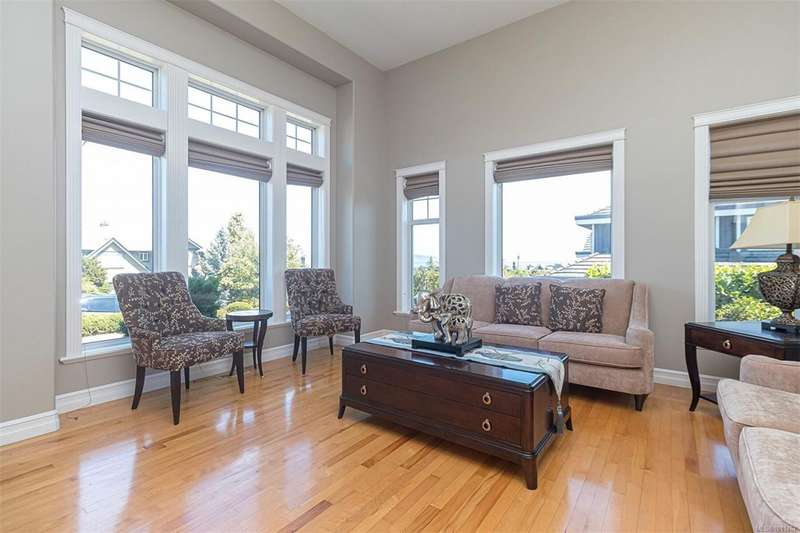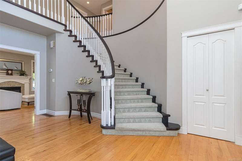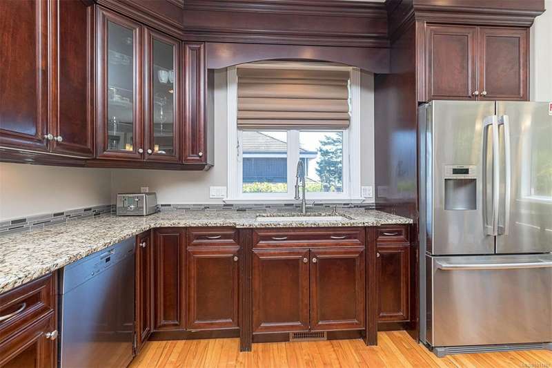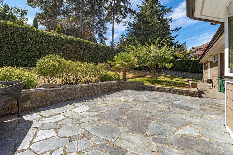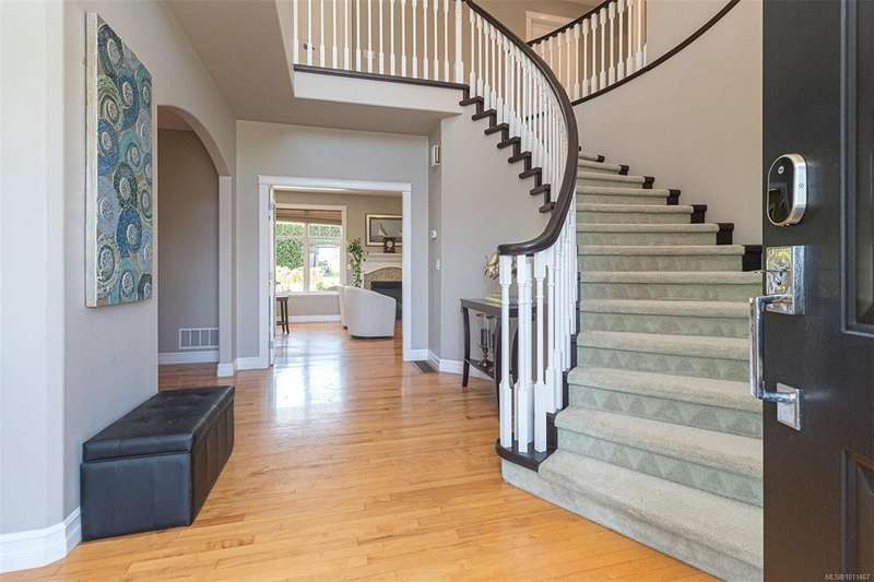 A Coastal Classic Reimagined! In the heart of Gordon Point Estate-an Oceanfront enclave known for its prestige and natural beauty-this Ocean-View Home marries timeless colonial architecture with modern comfort. The red brick fa�§ade, cathedral entry, and sweeping staircase makes a striking first impression. The main level features a formal living&dining room, elegant kitchen w/rich wood cabinetry, oversized island, a Spice Kitchen keeps the main kitchen pristine, cozy breakfast nook, family room w/gas fireplace, Rec Room, Gym&Den or use for bedrooms; Upstairs, the primary suite enjoys a luxe ensuite, while 2 other BDs each have their own bath. A storage room w/washer & two attic-style flex rooms add versatility. Lower level offers 2BD, 1BA, laundry/kitchenette-ideal for guests or create an in-law suite. Complete w/Double garage, fenced yard, inviting patios, this home blends prestige, space, and coastal lifestyle in one of Victoria's most desirable communities.