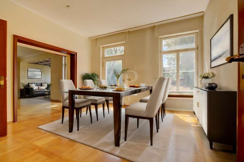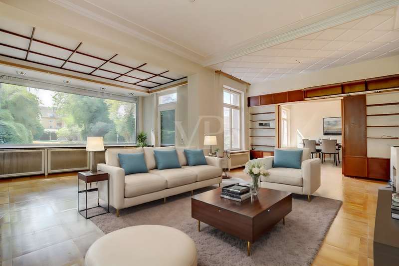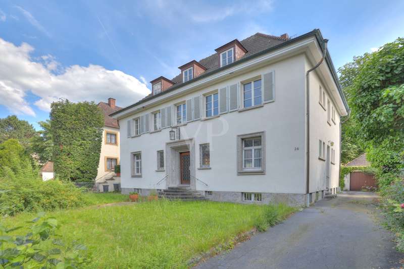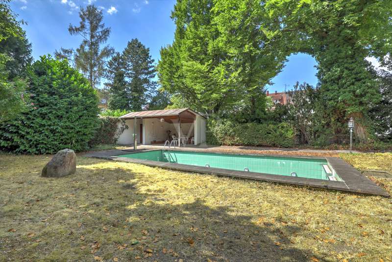 Prestigious town villa with plenty of space for your ideas. One of the few remaining villas with a stately plot is for sale. The impressive property offers approx. 300 m² of living space and plenty of room for the whole family or a shared apartment. Are you looking for prestigious rooms for yourself and your clients? This property makes it possible to combine living and working and also offers the ideal basis for a shared apartment. Special features: The first floor and upper floor form a single unit and are connected internally by an attractive staircase, making it easy to use as a shared apartment. Layout: - First floor (approx. 150 m²): - Spacious entrance area - Living room with wood-burning stove and direct access to the south-facing terrace - Kitchen with adjoining dining room and pantry - Spacious study - Guest WC and separate checkroom - Second entrance on the west side of the villa, practical for shopping - Access to the garden with mature trees and pool with pool house via the elevated terrace - Upper floor (approx. 100 m²): - Possible uses: four bedrooms with dressing room and bathroom as well as separate WC, ideal for a shared apartment or as office space with plenty of storage space and kitchenette - Spacious south-facing roof terrace with a view of the garden - Granny apartment (top floor): - Separate access (west façade) - Four-room apartment, which was renovated in the 90s, with approx. 70 m² floor space and approx. 50 m² living space - Upstairs storage room and attic - Basement: - Classic utility room and boiler room - Vaulted cellar/wine cellar The building was rebuilt in the 1950s and is in good condition, but is in need of loving renovation with a flair for the extraordinary. The property is located in the popular district of Heilbronn-Ost, which offers numerous leisure opportunities.