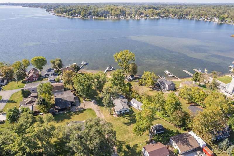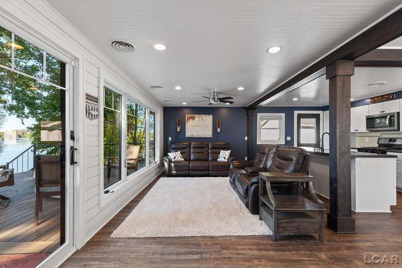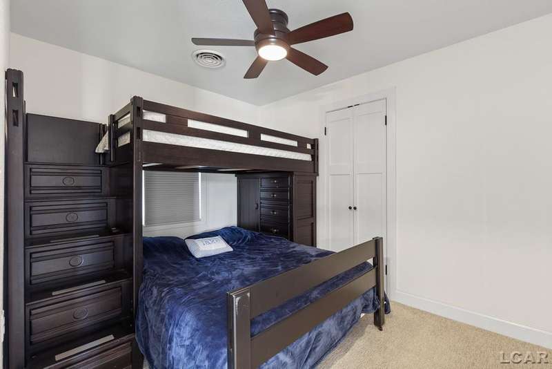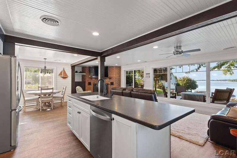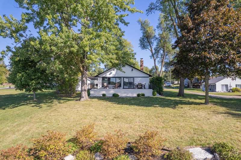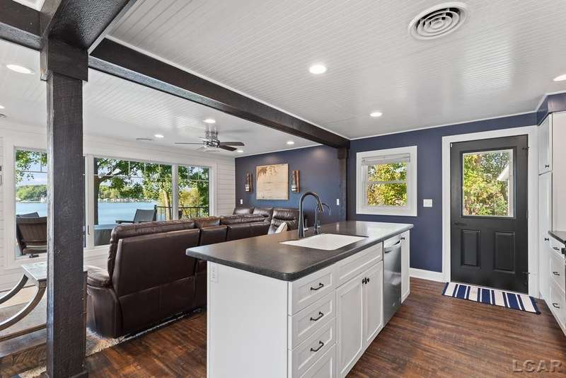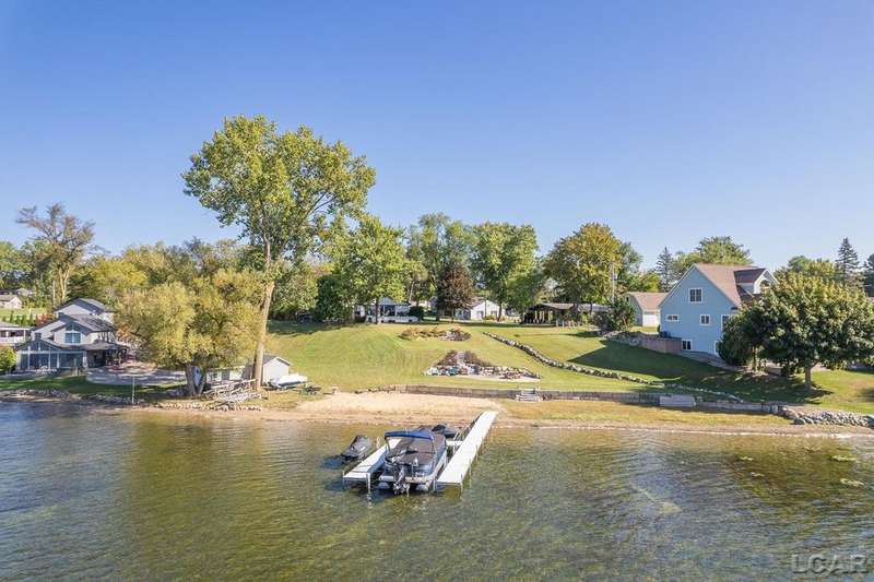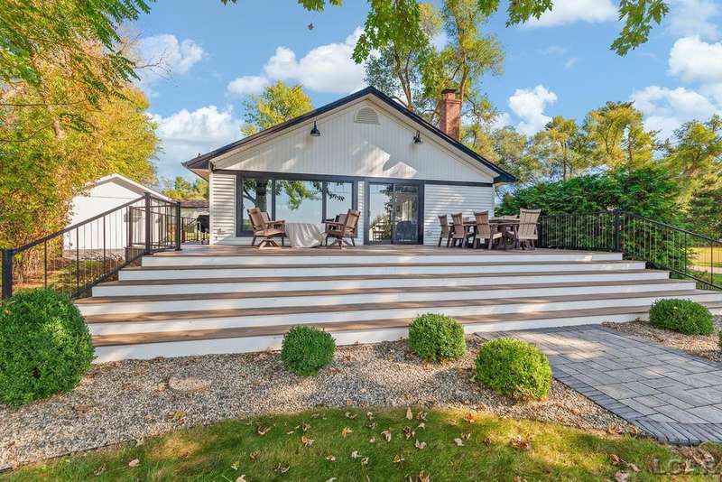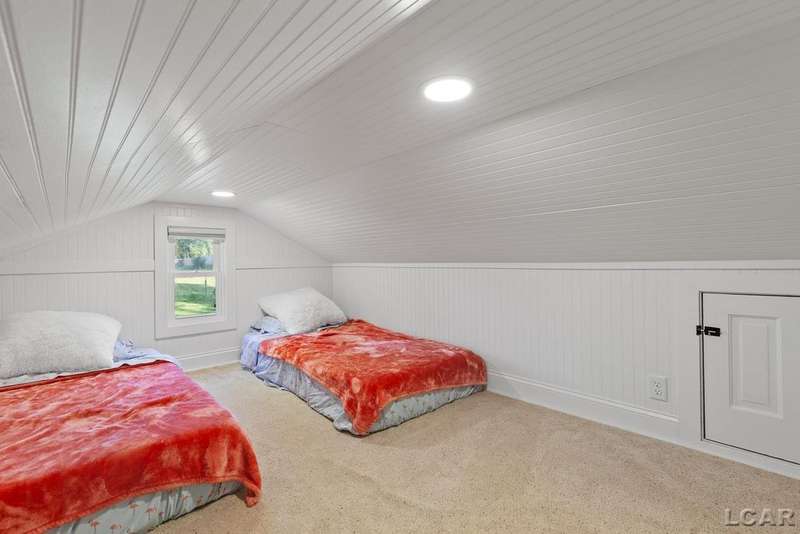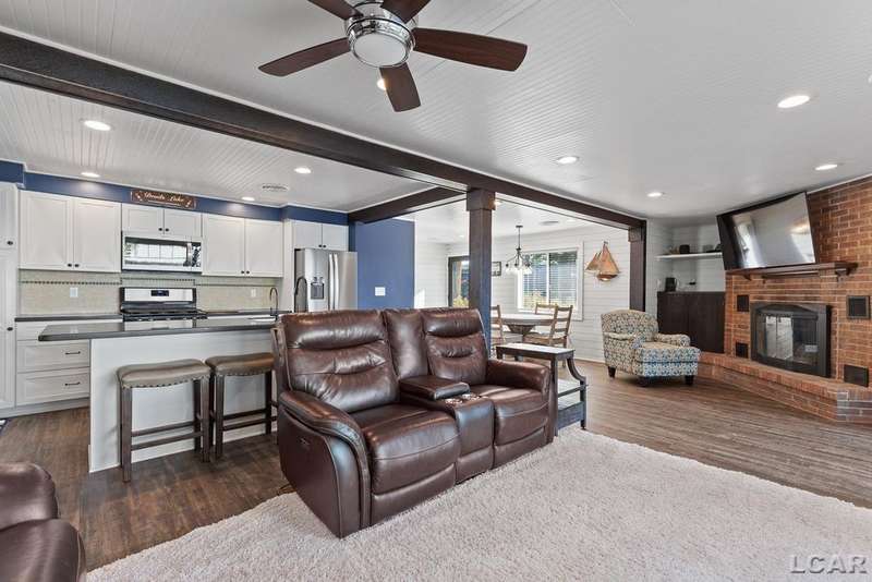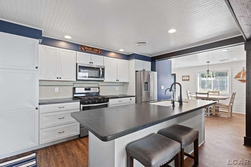 Completely remodeled Devils Lakefront Cottage with 80' of waterfront, approx. 1800 sq. ft. 3BD 2 BA on more than 1/2 acre of outdoor living space. This home features 5 lots on a dead-end street for privacy and solitude with ample parking for all your visitors behind the house in the green space between the house and smaller shed. Plenty of room for a garage and/or carriage house. 80' of beachfront with additional patio space nearby for enjoying all this beautiful property has to offer. The interior has been updated throughout, new windows and doors, electrical, plumbing, lighting, additional blown in insulation, outdoor shower hookup with drain, new paint, flooring, 15x30 composite Timbertech decking with railing and professional illumination surround, landscaping, hardscaping, water softener with reverse osmosis system, Navien instant hot water system, electric fence for pets remain. The interior includes a 25x25 loft area with enough space for 3-4 twin beds and storage with additional a/c space unit for comfort. The exterior includes a 12x30 prefab shed insulated with electrical includes space with a/c unit for three season comfort to store all the water toys, overstock space for food and pantry items along with a 12 x 12 room for gaming, overflow overnight guests, home office, hobby room, exercise/yoga/pilates space or play area. Additional shed on property for storage of yard items included. All stainless steel kitchen appliances to remain.