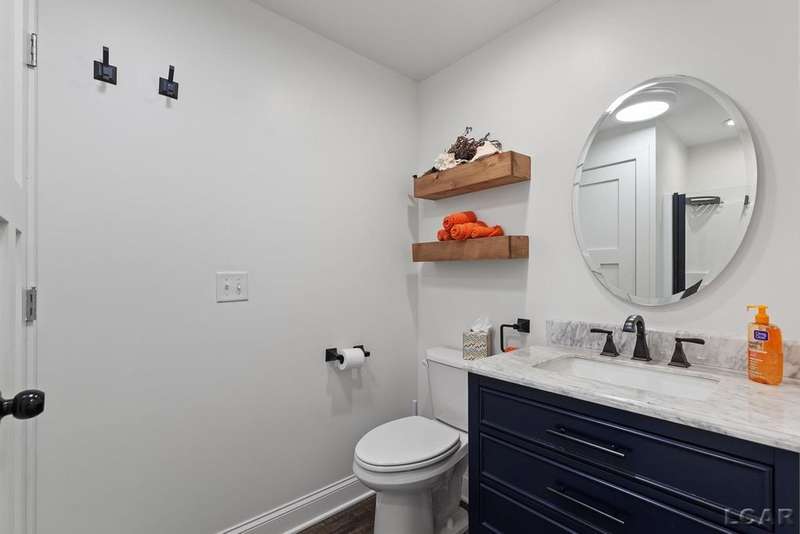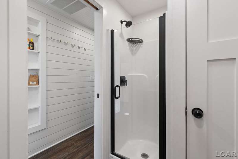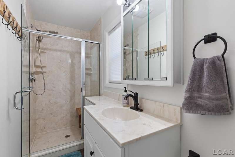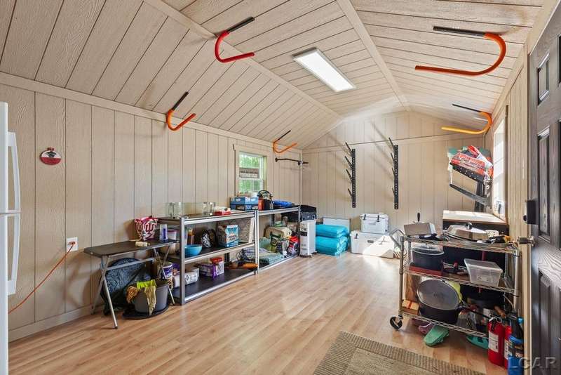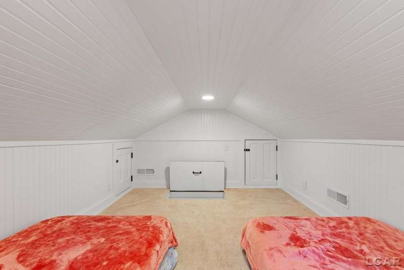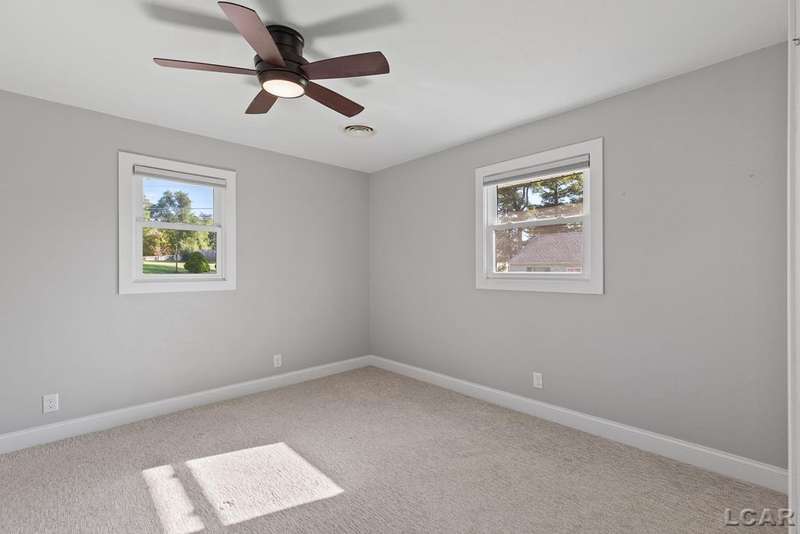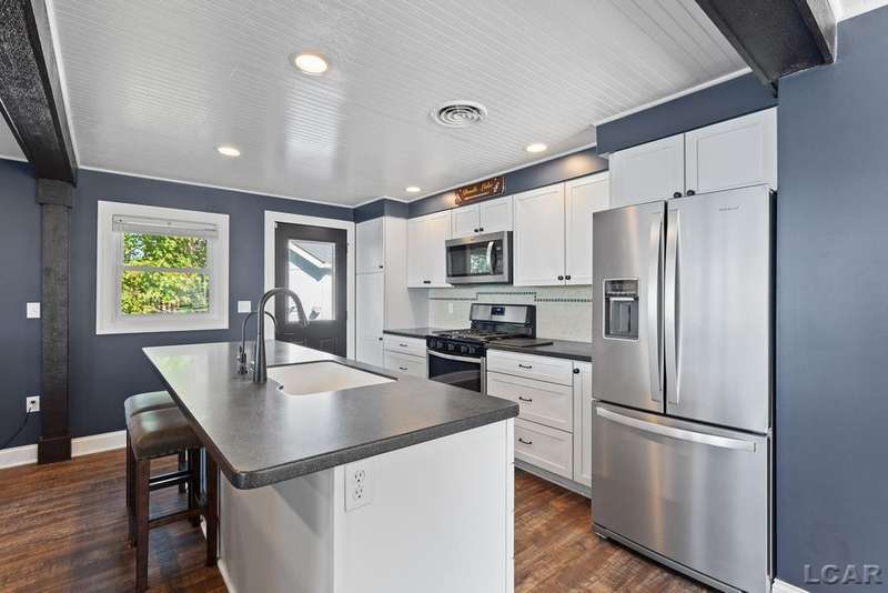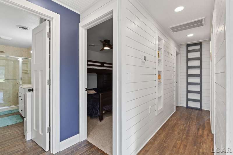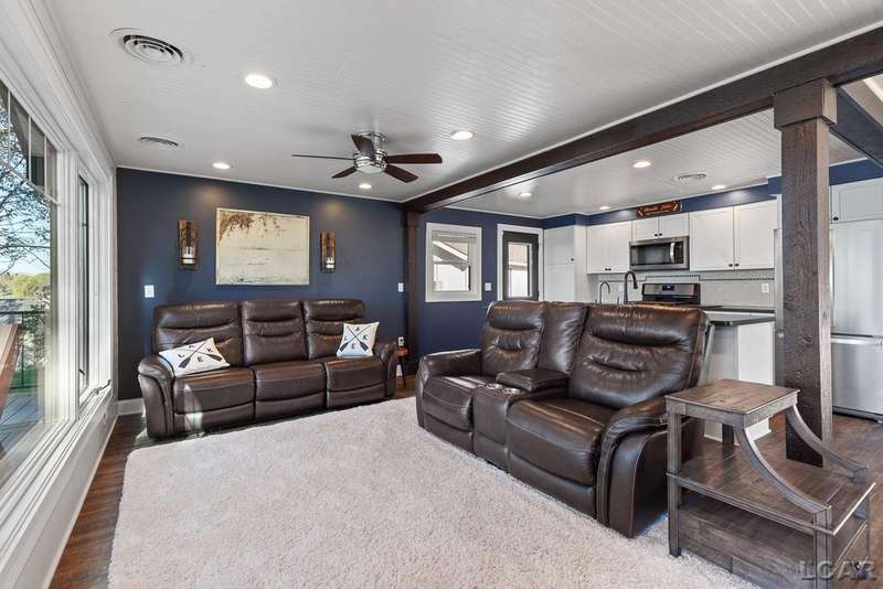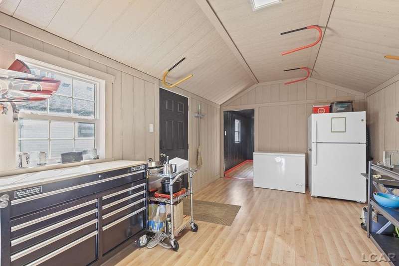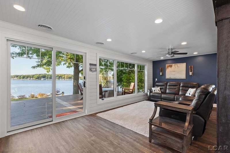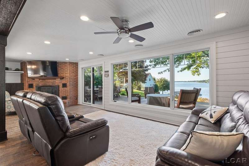 Completely remodeled Devils Lakefront Cottage with 80' of waterfront, approx. 1800 sq. ft. 3BD 2 BA on more than 1/2 acre of outdoor living space. This home features 5 lots on a dead-end street for privacy and solitude with ample parking for all your visitors behind the house in the green space between the house and smaller shed. Plenty of room for a garage and/or carriage house. 80' of beachfront with additional patio space nearby for enjoying all this beautiful property has to offer. The interior has been updated throughout, new windows and doors, electrical, plumbing, lighting, additional blown in insulation, outdoor shower hookup with drain, new paint, flooring, 15x30 composite Timbertech decking with railing and professional illumination surround, landscaping, hardscaping, water softener with reverse osmosis system, Navien instant hot water system, electric fence for pets remain. The interior includes a 25x25 loft area with enough space for 3-4 twin beds and storage with additional a/c space unit for comfort. The exterior includes a 12x30 prefab shed insulated with electrical includes space with a/c unit for three season comfort to store all the water toys, overstock space for food and pantry items along with a 12 x 12 room for gaming, overflow overnight guests, home office, hobby room, exercise/yoga/pilates space or play area. Additional shed on property for storage of yard items included. All stainless steel kitchen appliances to remain.