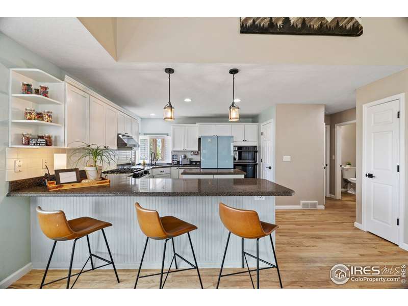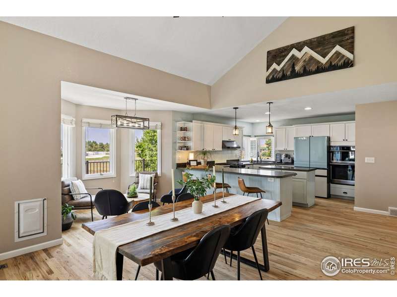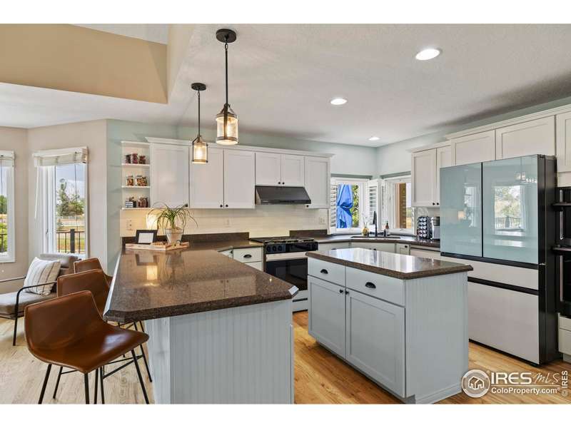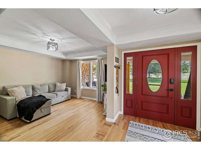 Tucked in the serene and spacious Windsong Ranch neighborhood, this beautifully updated and meticulously cared-for home offers mature landscaping, and the inviting charm on nearly 2 acres of in-town horse property with unobstructed mountain views. From the moment you arrive, you'll appreciate the long driveway the leads to an oversized 3-car garage with ample space for vehicles, toys, or a workshop.Inside, real wood floors flow throughout the main level, complemented by vaulted ceilings and a striking stone fireplace that creates a warm, elegant atmosphere. The updated kitchen and fixtures, along with newer appliances, offer turnkey convenience.Downstairs, the walk-out basement with brand new carpet is an ideal retreat for kids or guests, opening directly to the fully fenced backyard.Enjoy Colorado's sunshine and natural beauty from four separate outdoor living areas! A welcoming front patio perfect for sunrise coffee. Spacious back patio designed for entertaining. A lower patio with hot tub and seamless backyard access. And, a private deck off the primary suite to soak in sunsets and mountain views!Other highlights include, new roof (2020), furnace, A/C, and water heater replaced in 2019. This is a rare opportunity to enjoy the peace and privacy of a rural setting with all the conveniences of an in-town location. Move-in ready and built to impress-this one is a must-see!