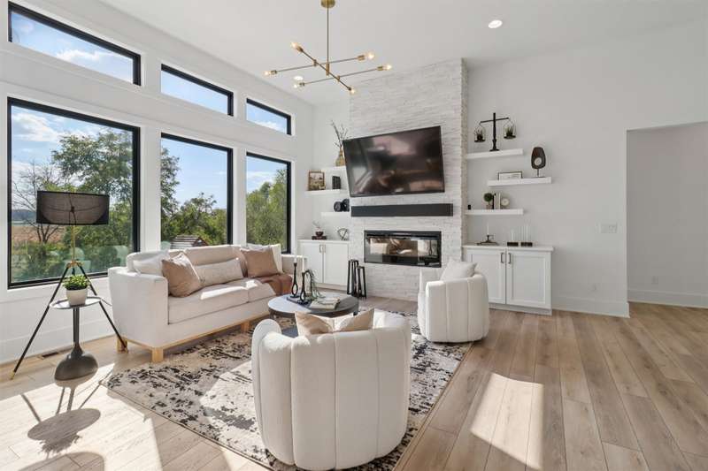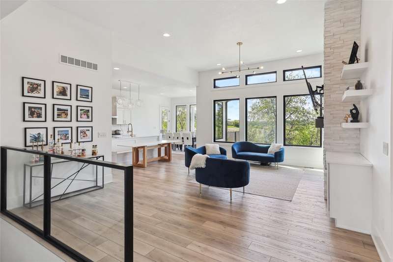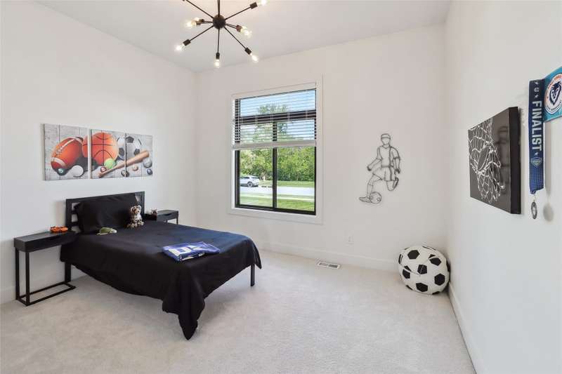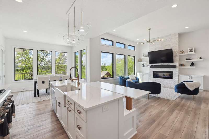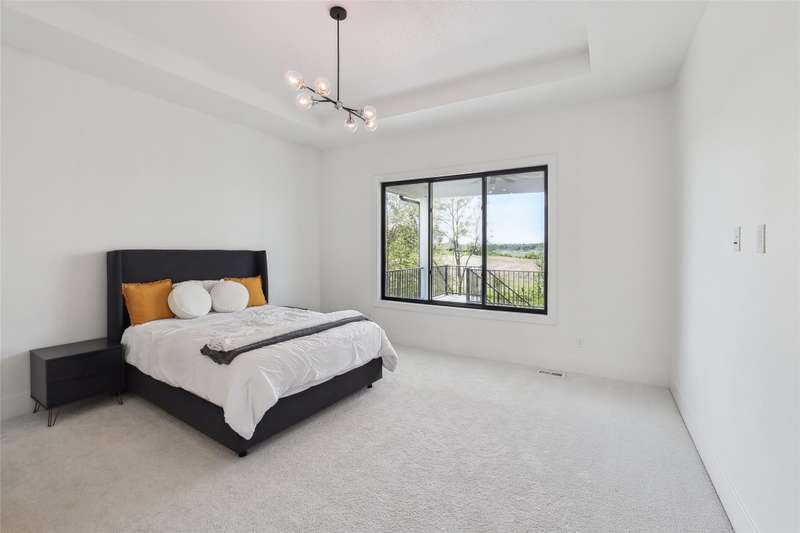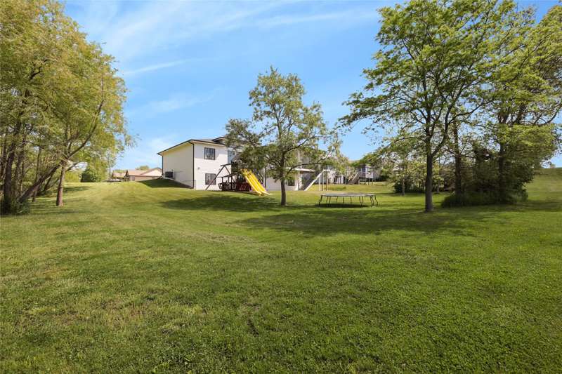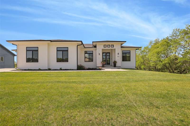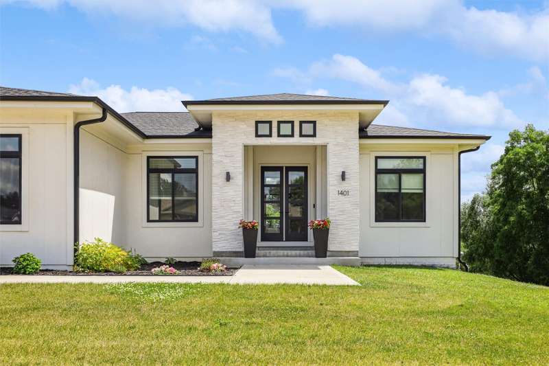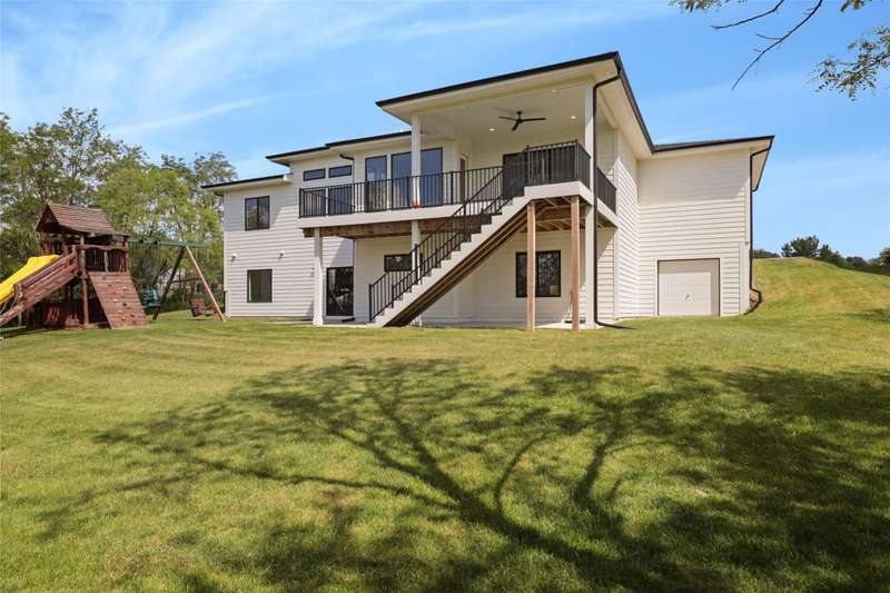 Drive up & be impressed! Stunning contemporary black & white exterior & double door entry welcome you into the foyer of this custom home built in 2020. Open floor plan & incredible views will catch your attention immediately. Spacious living room w/ fireplace opens to the kitchen, complete w/ quartz counter, stainless appliances, farm sink and adjacent walk-in pantry. Soaring ceilings throughout, featuring 3 main level bedrooms + home office (could be used as a 4th BR). Primary BR includes ensuite w/ soaking tub, walk in shower, double sinks & spa like finishes. Main level powder room & laundry (included). 3 car garage (electric vehicle outlet). Amazing covered deck w/ vinyl railing & maintainance free decking. Fully finished LL includes 2 additional BR, living room w/ compete wet bar, full bath + amazing home gym (all equipment included!) Tons of storage too + 2nd laundry. Walkout to the large 0.61-acre in-town lot, full of trees & beautiful views. Drive under 4th garage stall adds amazing storage space! So much to take in here, come have a look!