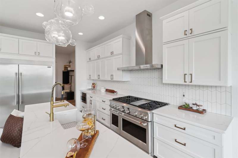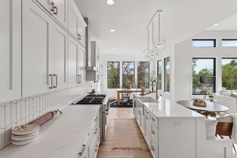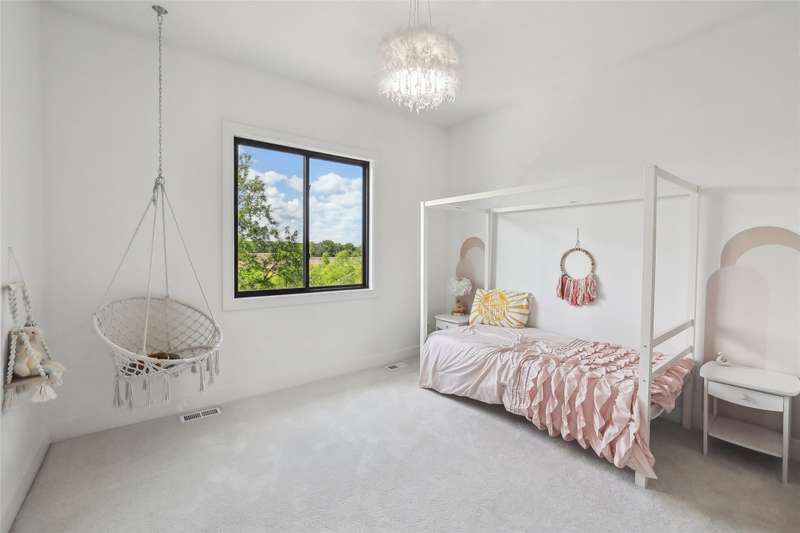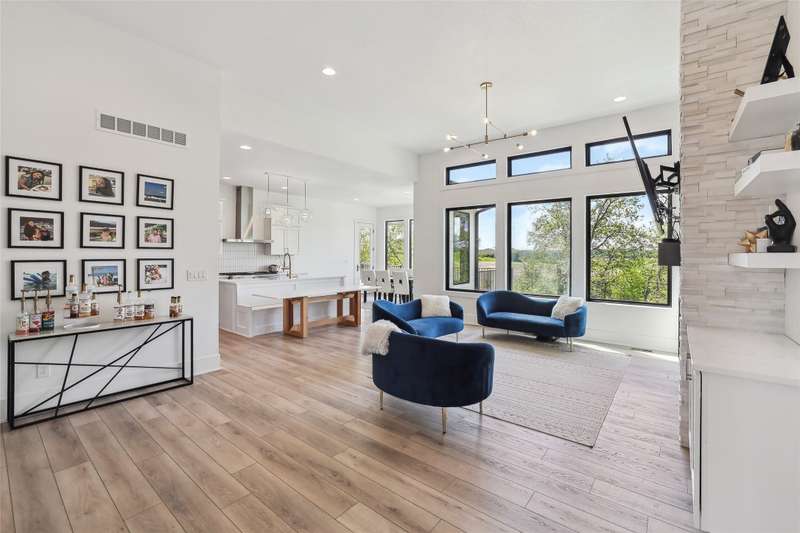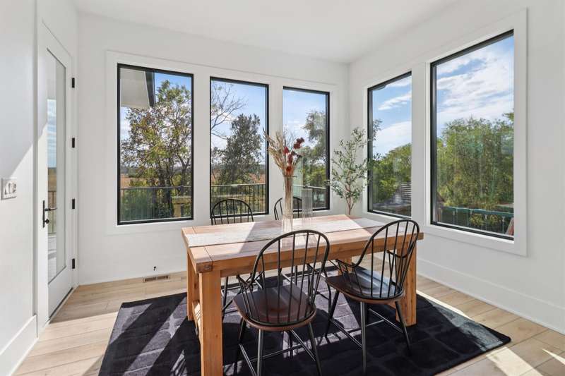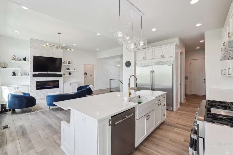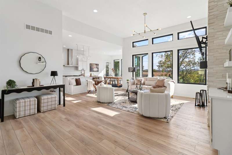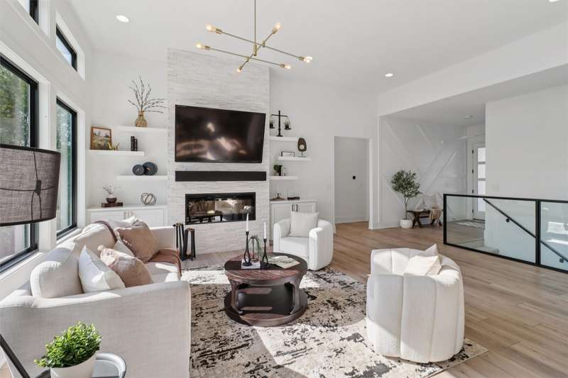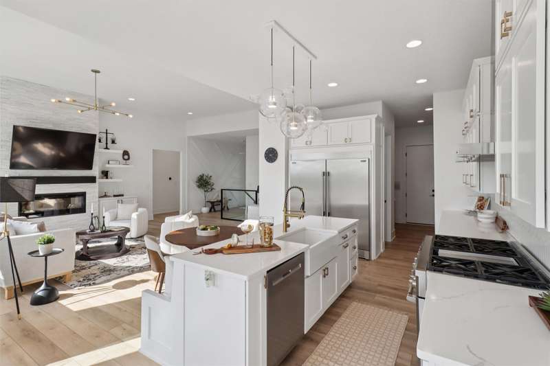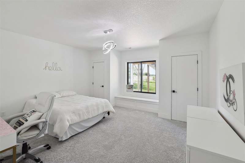 Drive up & be impressed! Stunning contemporary black & white exterior & double door entry welcome you into the foyer of this custom home built in 2020. Open floor plan & incredible views will catch your attention immediately. Spacious living room w/ fireplace opens to the kitchen, complete w/ quartz counter, stainless appliances, farm sink and adjacent walk-in pantry. Soaring ceilings throughout, featuring 3 main level bedrooms + home office (could be used as a 4th BR). Primary BR includes ensuite w/ soaking tub, walk in shower, double sinks & spa like finishes. Main level powder room & laundry (included). 3 car garage (electric vehicle outlet). Amazing covered deck w/ vinyl railing & maintainance free decking. Fully finished LL includes 2 additional BR, living room w/ compete wet bar, full bath + amazing home gym (all equipment included!) Tons of storage too + 2nd laundry. Walkout to the large 0.61-acre in-town lot, full of trees & beautiful views. Drive under 4th garage stall adds amazing storage space! So much to take in here, come have a look!