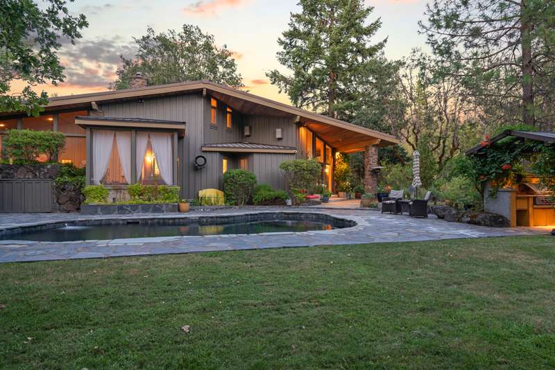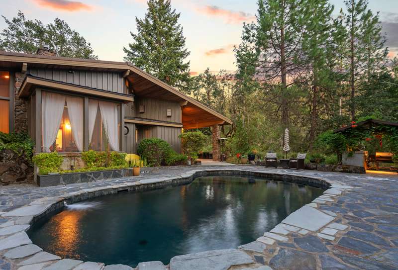5 PARCELS INCLUDED - An opportunity to own property like this is almost never seen! Set above BIG BUTTE CREEK with more than 1,200ft OF LIVE WATER frontage, this 40-acre estate is bordered on 3 sides by over 7,000 ACRES OF PUBLIC LAND, creating an unmatched sense of privacy and access to recreation. The residence blends modern design with Northwest lodge character, centered on a dramatic great room with soaring ceilings, walls of glass, and a stone fireplace overlooking the creek and evergreens. The master suite is a private retreat with vaulted ceilings, dual baths, and patios perched above the water, while guest accommodations provide comfort for family and friends. Outdoor living is equally inviting with patios, decks, a newly finished pool, and a one HALF-ACRE POND with dock and pond house. Trails, gardens, and the surrounding public land extend opportunities for hunting, hiking, horseback riding, and YEAR-ROUND ADVENTURE on this ONE-OF-A-KIND SANCTUARY!