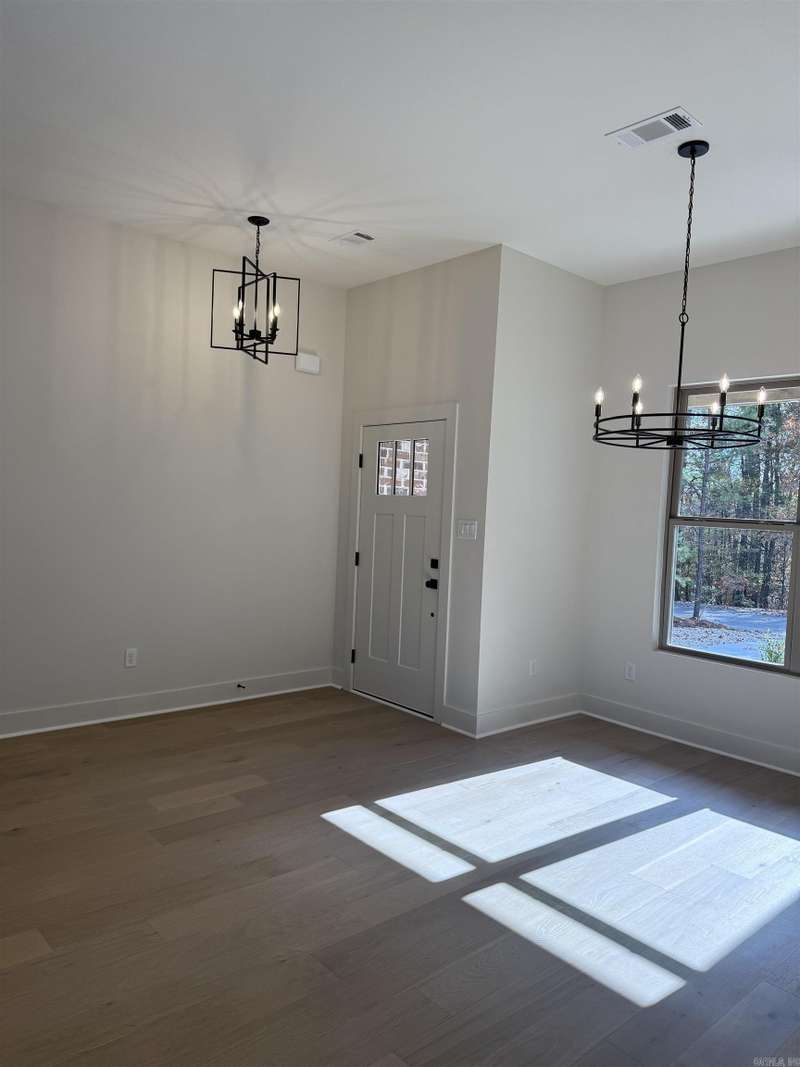 Discover luxury in this new construction home nestled in the prestigious Hot Springs Village golf community! This stunning 3-bedroom, 2-bathroom residence sits on a flat, tree-lined lot, offering privacy and natural beauty. The oversized 2-car garage provides ample space for vehicles and storage. Inside, enjoy a custom-designed kitchen with top-of-the-line stainless steel appliances, sleek countertops, and a large island perfect for entertaining. The open-plan living area features a cozy fireplace, soaring ceilings, and high-end finishes throughout, creating a warm and inviting atmosphere. With access to world-class golf courses and serene community amenities, this home is ideal for those seeking modern comfort and an active lifestyle. Move in and start living your dream today! Hardwood floors throughout. 3 foot doorways make this home accessible. Flat yard and zero steps into front door. Flat sidewalk.