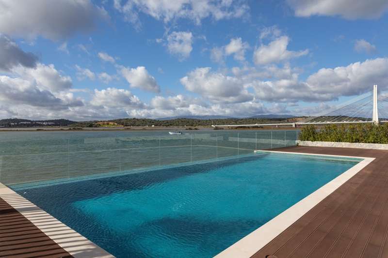 This spectacular 2-bedroom apartment is set in a gated community in an exclusive location with unobstructed, breathtaking views over the River Arade. This is an apartment with good-sized rooms, plus two fantastic balconies. It consists of two bedrooms, one of which is en suite with a small walking closet, and the other bedroom has a great closet with plenty of storage. Both rooms share a balcony with river views, facing west so you can enjoy the sunset. Both the dining room and the living room are open-plan, with an extra area that can be used as an office or reading room. This large area is equipped with air conditioning and a wood burning stove for maximum comfort in cooler weather, with access to the fantastic balcony with river views and space for outside dining. The kitchen, fully equipped with high-end appliances, has plenty of space for storage and preparing meals. The apartment also has solar panels for water heating, double glazing, electric interior blinds, as well as a parking space with an automated gate and direct access to the interior of the condominium. The condominium also has an infinity pool facing the river and a gym for the exclusive use of residents. Located 5 minutes from Portimão, as well as Lagoa, within short distance of golf courses, as well as all day-to-day amenities and services. It is 40 minutes from Faro International Airport via the A22 highway. CHARACTERISTICS:Area: 170 m2 | 1 826 sq ft Useful area: 126 m2 | 1 351 sq ft Bedrooms: 2 Bathrooms: 3 Garage: 1 Energy efficiency: B- FEATURES: 2 bedrooms Equipped kitchen Balconies Swimming pool Gym Garage Gated community Air conditioning Solar panels