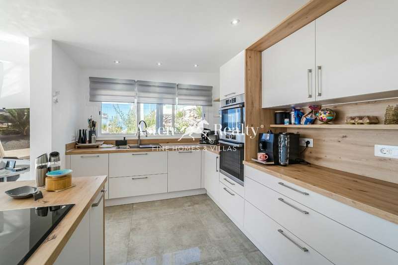 •? ?Elegant kitchen open to the living room, equipped with high-end appliances.