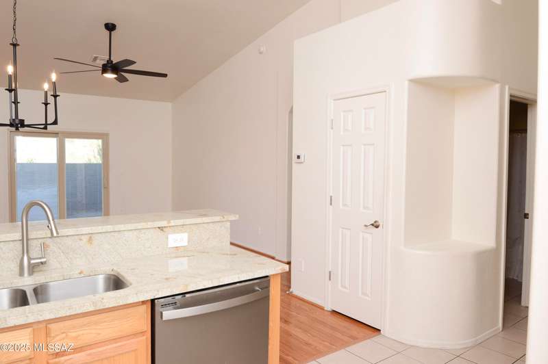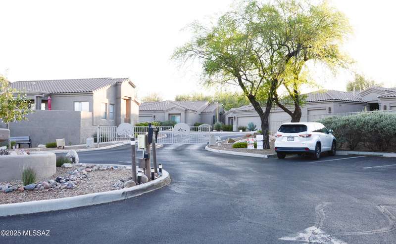This move-in ready gem is located in a private gated Foothills community. This single-level home features vaulted ceilings and an open layout. The kitchen includes oak cabinetry, granite countertops and breakfast bar.Split bedroom plan with walk-in closets. Enjoy the private covered patio, accessible from both the living room and primary bedroom. Recent updates include new paint (2023), granite counter tops in kitchen and bathroom, light fixtures and epoxy flooring in garage.Ideally situated near Whole Foods Market, restaurants, golf, hiking, and art galleries, with easy access to the River Loop via Craycroft Road. The HOA includes common area maintenance, garbage collection, pest control, roof repair and street maintenance. Agent/Owner