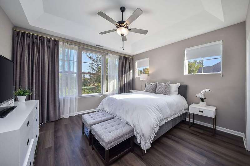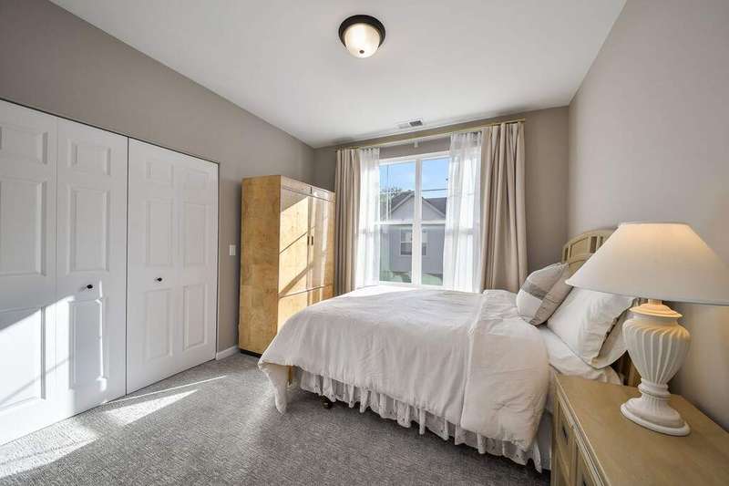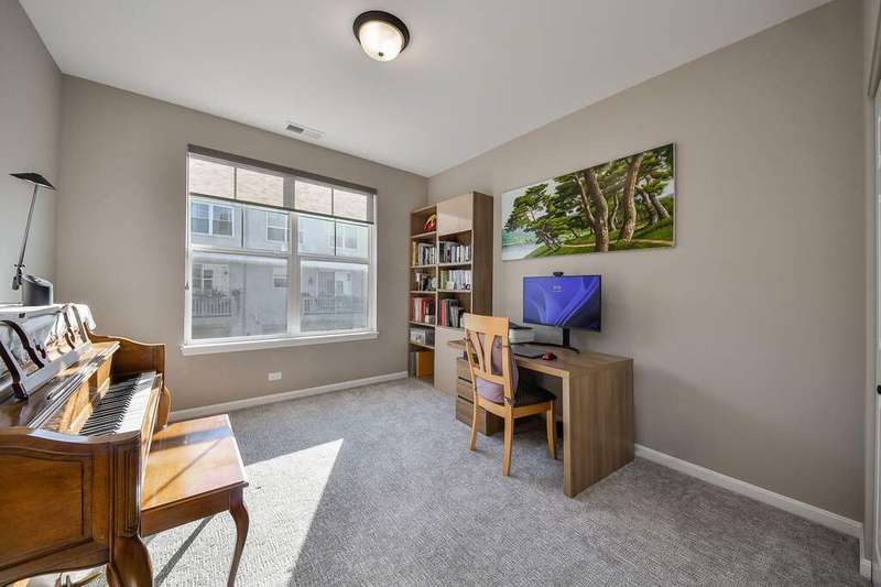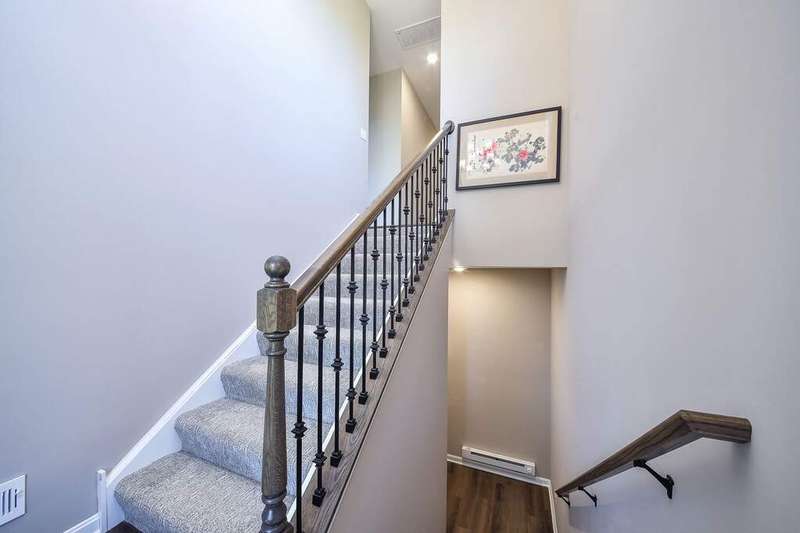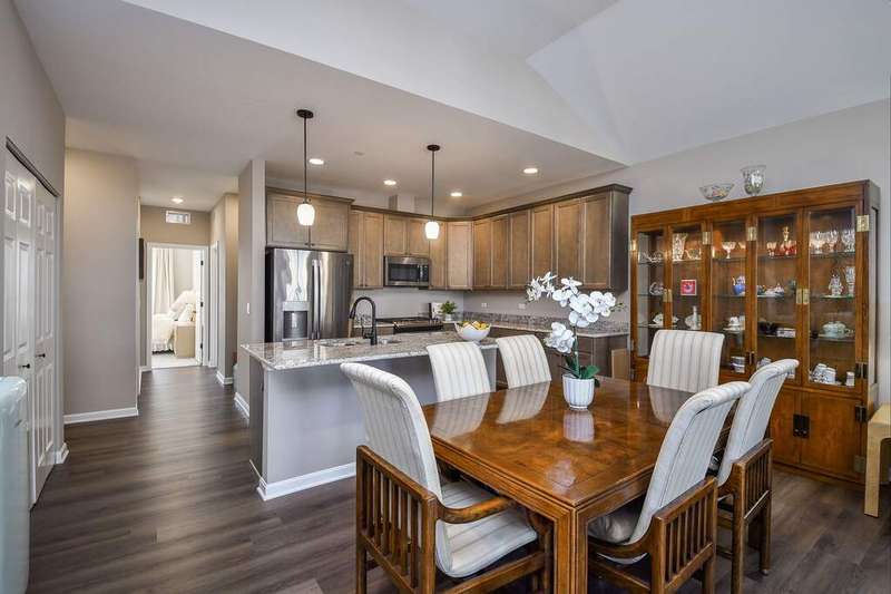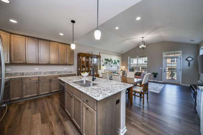 Welcome to this stunning end-unit home that feels like new construction! Ideally positioned with a front entrance facing a mature treed area, this property offers peaceful surroundings and an abundance of natural light throughout. Enjoy main floor living with an open-concept layout designed for both comfort and functionality. The spacious kitchen features a large, oversized island with seating and storage-perfect for cooking, entertaining, or casual dining. High-end stainless-steel appliances, including a premium refrigerator, elevate the space for any home chef. The kitchen flows seamlessly into a generous dining area and an expansive living room, complete with upgraded remote-controlled blinds for added convenience. Step out onto the private balcony to enjoy your morning coffee or relax in the evening. Stylish wide-plank luxury vinyl flooring runs throughout the main living spaces, while the two bedrooms are carpeted and feel like new. An updated full bath with a tub and shower combo is ideally located for both bedrooms to use. The spacious primary suite includes a walk-in closet and a beautifully appointed en-suite bath with dual vanities and a separate water closet. Two additional bedrooms offer ample closet space and elegant window treatments. The attached two-car garage provides plenty of space for parking and additional storage. Located in a prime area close to restaurants, shopping, and major expressways-this home is a true must-see! No showings until live on the MLS October 9th.