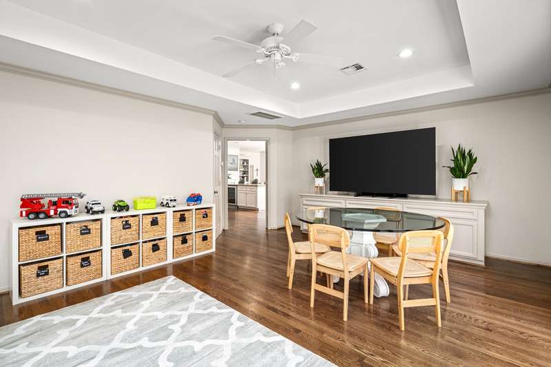 Charming gas lantern lighting welcomes you to this stunning Briargrove home! Inside, refinished hardwoods flow through all living areas & bedrooms. The spacious family room features soaring ceilings, a fireplace & French doors opens to a patio. The kitchen impresses w/stainless appliances, wine fridge, ice maker & breakfast bar which opens to the family room - ideal for entertaining! A versatile game room/den w/built-ins provides access to the turfed backyard. The expanded dining room offers floor-to-ceiling windows & abundant natural light. The primary suite boasts a generous walk-in closet, an additional flex room (office/nursery/2nd closet) & a remodeled spa-like bath w/soaking tub, separate shower & dual vanities. Three generously sized secondary bedrooms w/two beautifully updated baths. Recent updates include new hardwoods, refinished floors, interior & cabinet paint, solar film, & slurry finish on the exterior brick. Stylish, move-in ready & ideally located! All info per seller