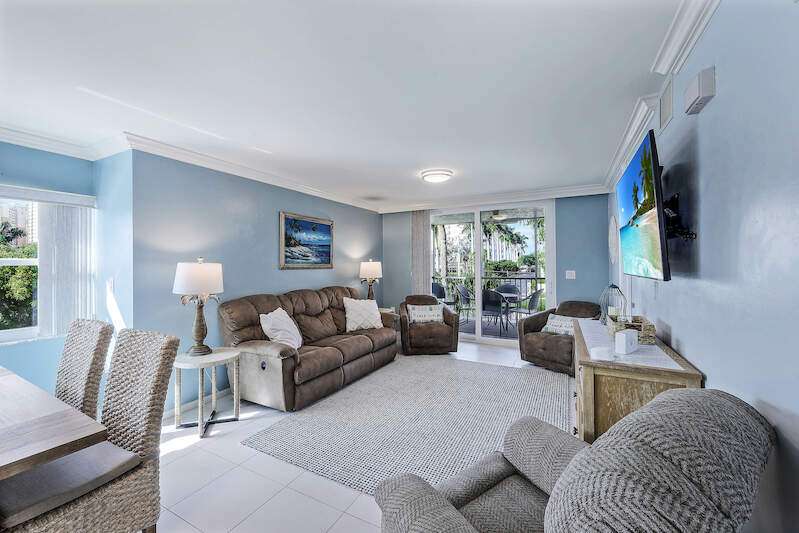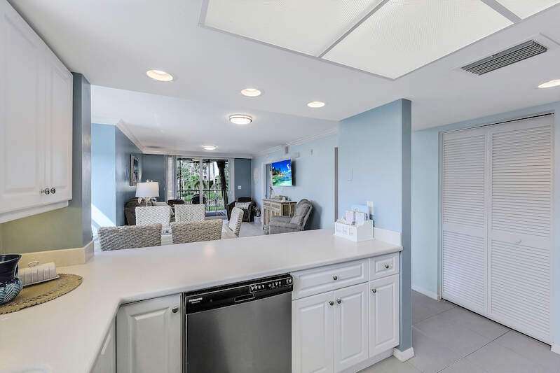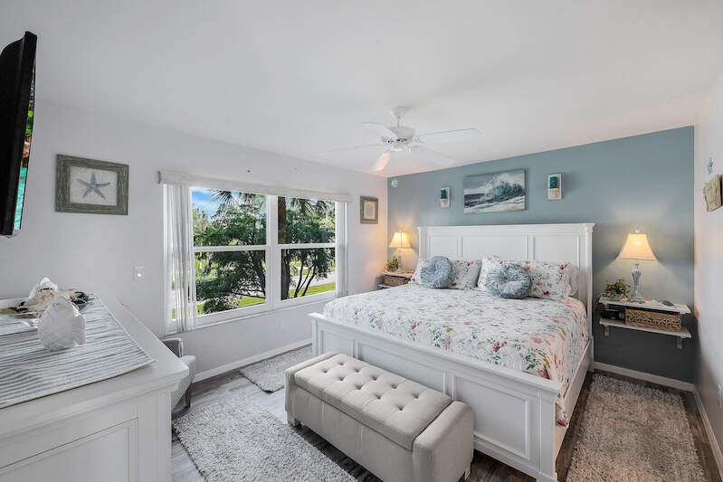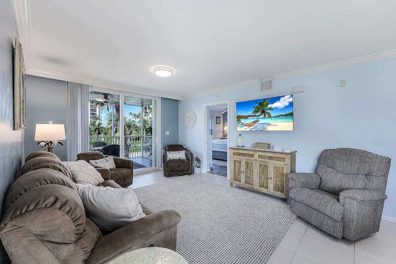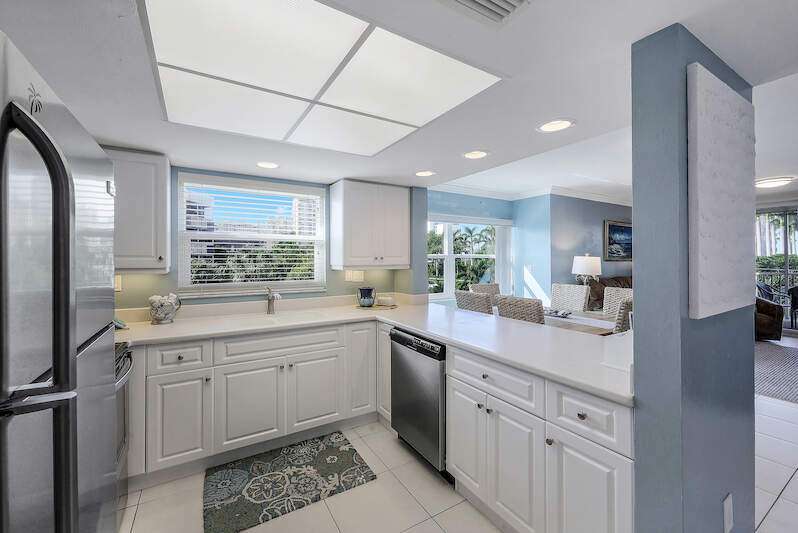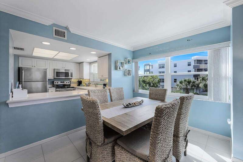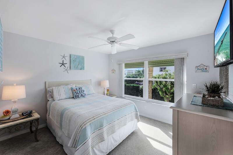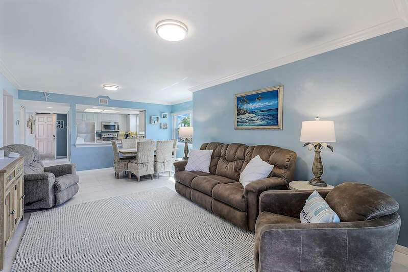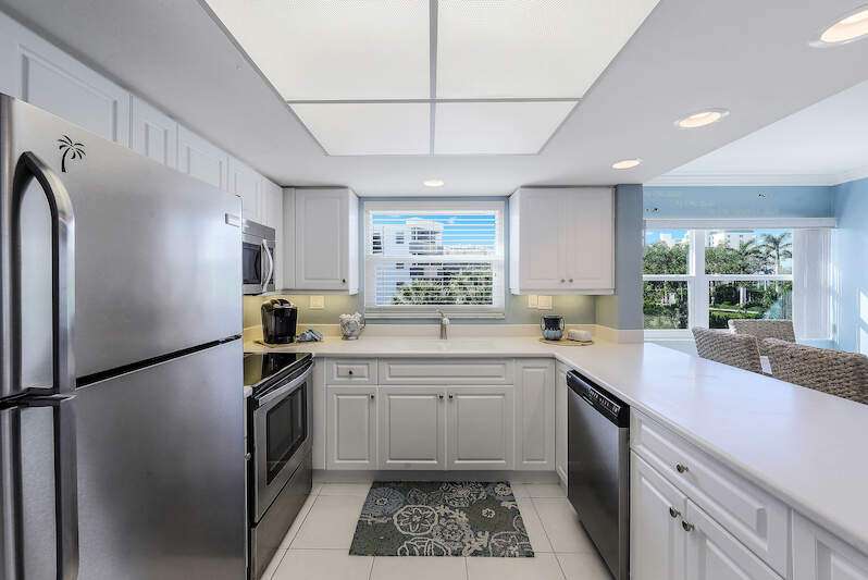This rare 3-bedroom end unit condo, steps from Marco Island's famed crescent beach, is the perfect investment or second home! A prime location just two blocks from South Beach access and three blocks from Marco Walk puts you in the heart of it all - restaurants, shops, and entertainment are just a stroll away. This beautifully appointed, turnkey unit allows for weekly rentals, maximizing your investment potential. Inside, find updated bathrooms, a spacious kitchen with coastal white cabinets, and a generous layout perfect for everyone. Step outside to enjoy sunrise coffee on your expansive 15x12 east-facing lanai, bright & cheerful days thanks to south-facing windows, and sunset cocktails on the screened west-facing lanai. The community offers a heated pool bathed in day-long sun, tennis, pickleball, BBQ areas, and an elevator for your convenience. Investors will love the weekly rental potential, lack of assessments, impact glass, no storm damage (plus an engineer's study for peace of mind!),meticulously maintained and HOA fees that include cable, internet, water, and public insurance. With an assigned carport and storage for beach toys, island life is a breeze. Don't miss this incredible opportunity!