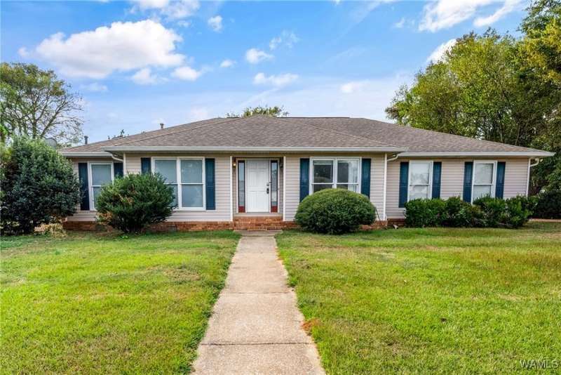 Spacious four-bed, two-bath home with 2,432 sq ft, built in 2022 by Southern Energy. This 76' x 32' home features an open floor plan with a large living area, modern kitchen with island and stainless appliances, and stylish wood-look flooring throughout. The primary suite offers a double vanity, soaking tub, and separate shower. Generously sized additional bedrooms, updated finishes, and a spacious front deck make this home move-in ready. Located on Watermelon Road with easy access to Tuscaloosa amenities.