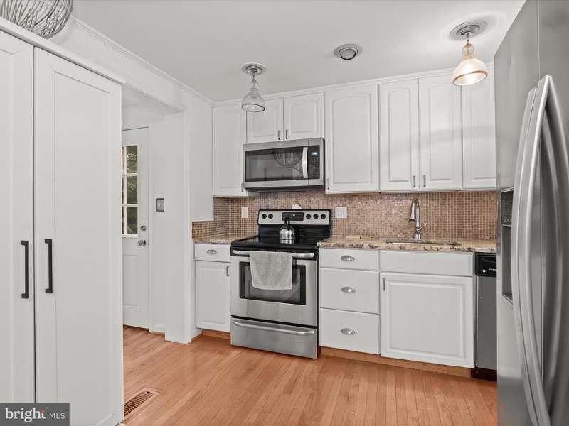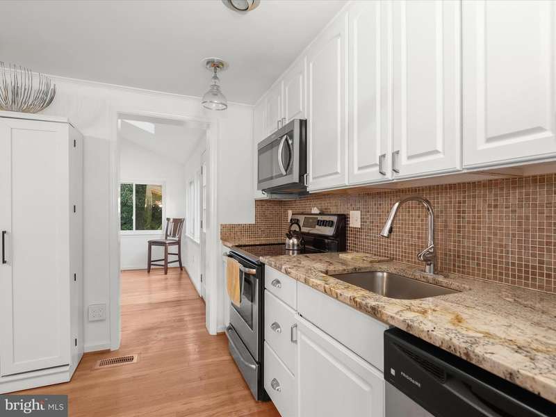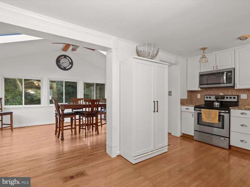 Discover this beautifully maintained home in a sought-after water-oriented community just a short walk to the marina, library, schools, post office, and the scenic Gunpowder River! This inviting property features 2 spacious bedrooms upstairs (easily convertible back to 3), 2 full bathrooms, and a thoughtfully updated kitchen with white cabinetry, tile backsplash, stainless steel appliances, and gleaming wood floors. The bright and airy family room boasts of an abundance of windows, skylights, and access to a large deck-perfect for relaxing or entertaining. The fully finished lower level offers a generous recreation room with a cozy brick fireplace, built-ins, recessed lighting, an additional bedroom, full bath, and walk-out access and fenced rear yard. Laundry room includes ample storage and a second fridge. Enjoy excellent curb appeal with a welcoming front porch and canopy. This home shows beautifully and is move-in ready. Don't miss your chance to live in this vibrant and convenient waterfront community! You will not be disappointed! Home sold as is, but in great condition. Note: Select interior photos have been virtually staged.