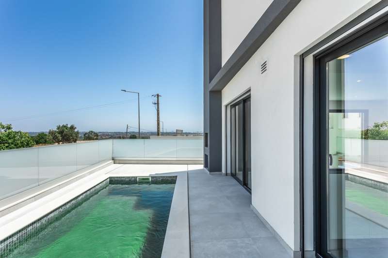 Modern style 3+1-bedroom villa with swimming pool, located in a quiet urban area between Lagos and Alvor, in its final stages of construction. Upon entering the home into the entrance hallway, we see the spacious open-plan living, dining room and a fully equipped kitchen with top of the line appliances, with big glass sliding doors which offer an abundance of natural light. From here, we can access directly to outdoors, as the pool, the garden and a barbecue area. Also located on this floor, there is a bathroom and an extra room which could serve as an additional bedroom or an office. In the first floor, there are the three spacious suites, all with built-in wardrobes and a glazed balcony to enjoy the views towards the estuary of Alvor. The basement level of the property is spacious and well-designed to include a large garage, a laundry room and offers ample space for a gym, cinema room or games room. Boasting contemporary elegance, practicality and comfort, this home nestled in the heart of a peace village, is in a small distance to services, close to schools, a sport complex, golf courses, an easy access to highway A22 and national roud 125, and less than 1 hour to Faro International airport and 15 minutes to the beaches of Alvor or Lagos. CHARACTERISTICS: Plot Area: 237 m2 | 2 551 sq ft Area: 185 m2 | 1 991 sq ft Bedrooms: 3 Bathrooms: 4 Garage: 3 Energy efficiency: A+ FEATURES: 3 suites Equipped kitchen Balconies / Terrace Swimming pool Garden Garage Laundry room