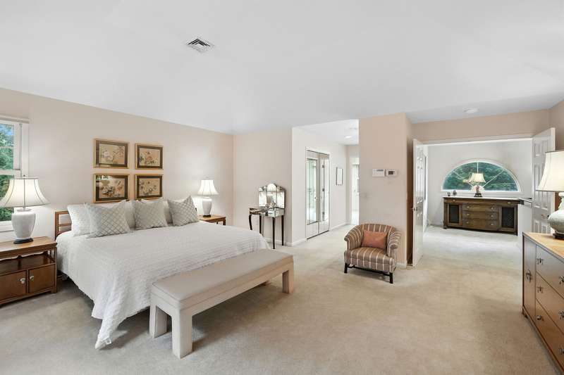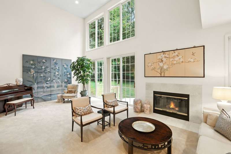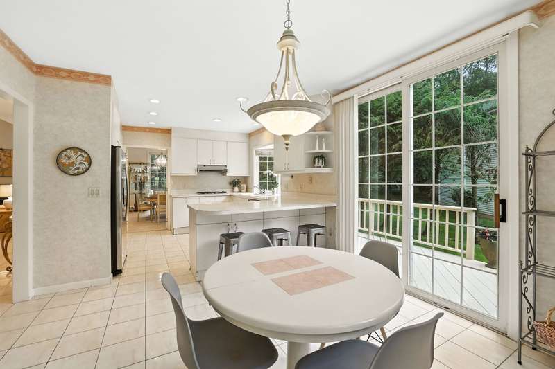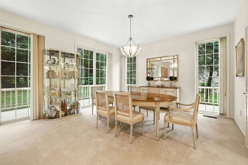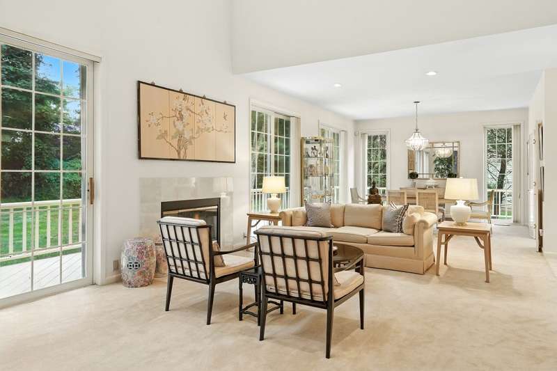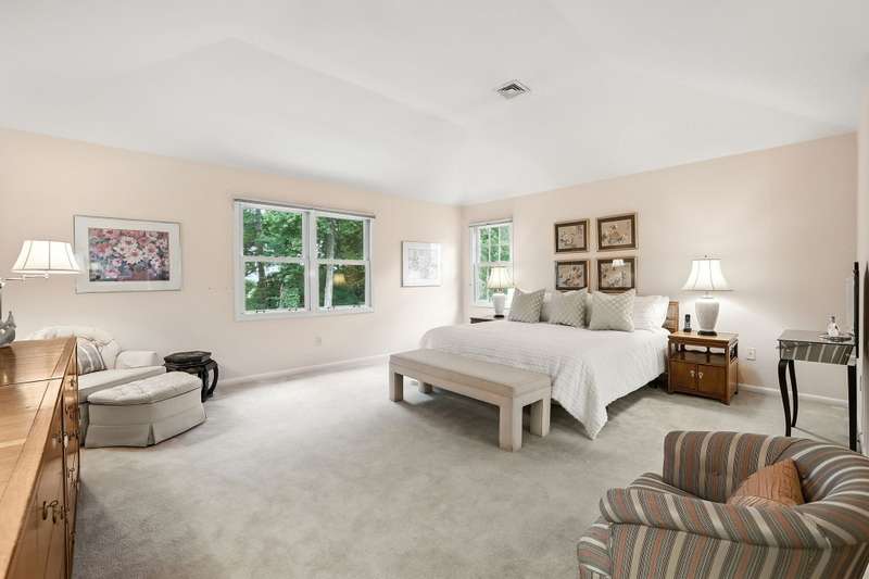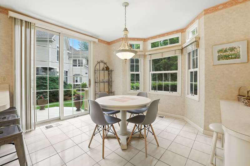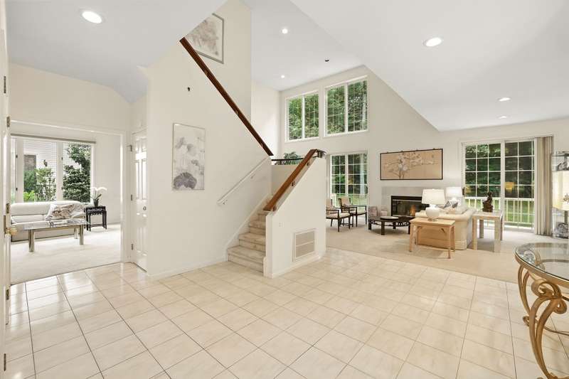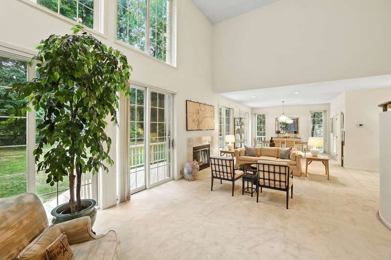 Nestled within the secure, 24-hour gated community of Cobblefield, this beautiful and spacious free standing home is a tranquil retreat. Filled with natural light, the open layout features large, airy rooms perfect for both relaxing and entertaining. The dramatic entry foyer leads to a sun-filled, eat-in kitchen with a bay window and sliding doors that open to a newly painted wraparound deck perfect for grilling. The living room and dining room have additional sliding doors that lead to an oversized deck. Cozy up on chilly evenings by the fire in the living room with soaring ceiling. The versatile family room with a wet bar offers a perfect space for gatherings or can be tailored to fit your needs. A powder room and direct access to a two-car garage complete the main level. Upstairs, the stunning master bedroom suite features a tray ceiling, a generous walk-in closet plus an additional closet, a dressing area, and a spa-like bathroom with a shower, a deep tub, vanity with two sinks, and a skylight. Two additional roomy bedrooms with ample closet spaces and a hall bathroom are also on this floor. Enjoy the convenience of a second-floor laundry room, making wash days effortless. A sizable storage room provides plenty of space for all of your belongings. Outside, the deep and level backyard looks out onto a border of trees for added privacy. The front of the home faces a naturally maintained landscape, enhancing the serenity of this special property. Its ideal location puts you just a short walk from the clubhouse, tennis/pickleball courts, and the heated pool. This home is more than just a place to liveit's an elevated lifestyle. There is a one-time buyer contribution to the Cobblefield HOA reserve fund of $7500. A must see!