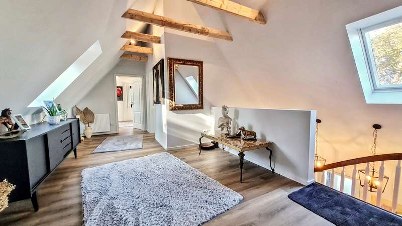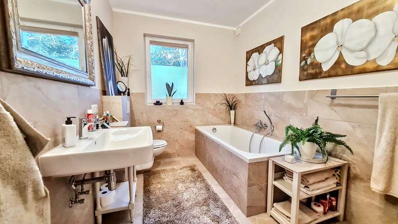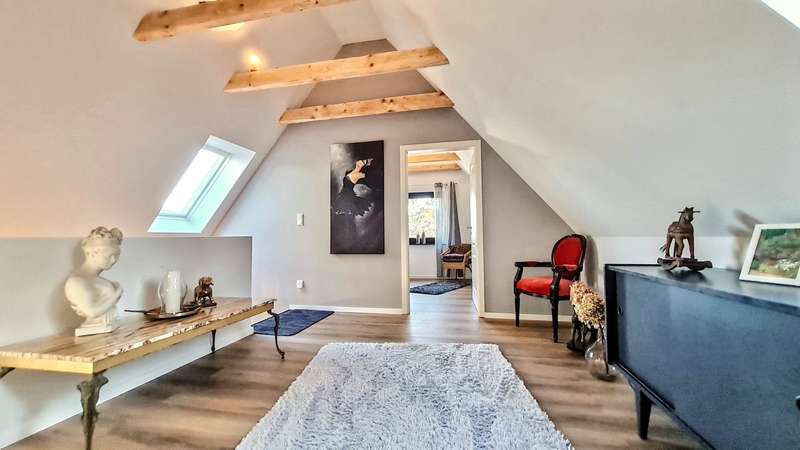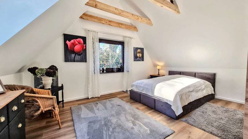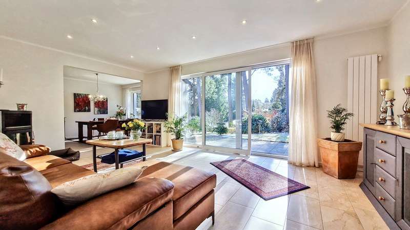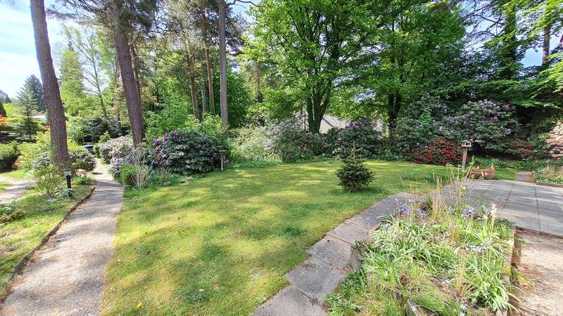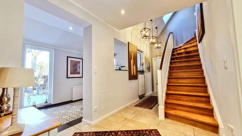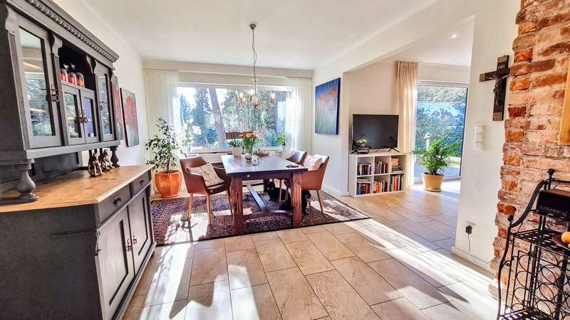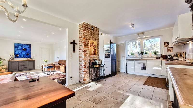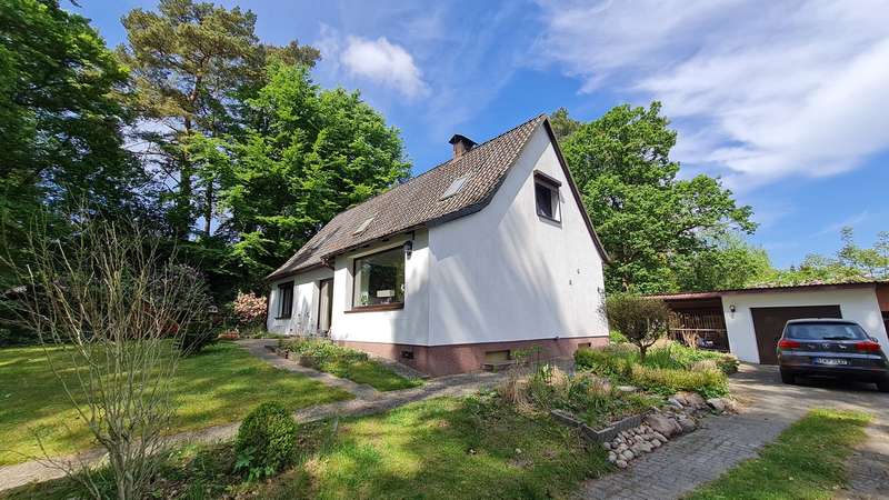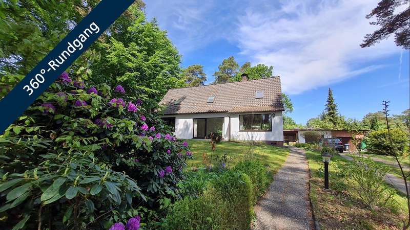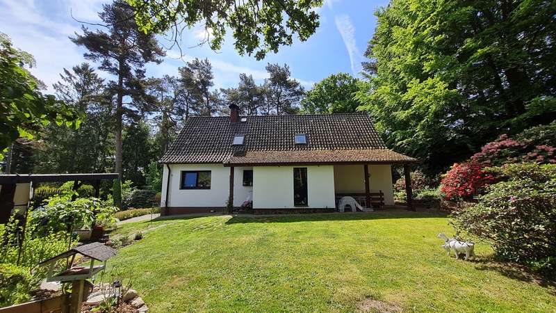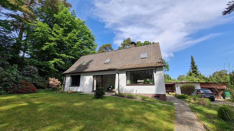 ***After downloading the exposé and if you are further interested, we cordially invite you to use our 360-degree tour. We will send you the link on request ***. For sale is an inviting detached house that was built in 1963 and has been extensively modernized and renovated over the years. The property offers a living space of approx. 140 m² and is situated on a spacious, park-like woodland plot with heritable building rights of approx. 2670 m², creating a natural and private environment. The current ground rent is approx. €1,175.70 per year / €97.98 per month and the leasehold runs for another 33 years. The house underwent a core renovation in 2024, which included roof insulation, renovation of the bathrooms and kitchen, replacement of the doors, interior fittings and renewal of the electrics and pipes. The radiators and some of the windows were also replaced as part of these measures. A modern heating system was installed back in 2001, and in 2007 some of the modern thermal insulation windows were integrated. Another important modernization measure includes the installation of a heat exchanger, which was installed in 2025, further improving the energy efficiency of the house. An optional solar system can be purchased and installed, which has already been acquired. The heart of the house is the open-plan living/dining area with adjoining modern kitchen, which invites you to linger together. A fireplace in the living room creates a cozy atmosphere. The first floor also boasts a fully equipped bathroom and a spacious living area. It is possible to live at ground level, which also makes the property attractive for different living situations. On the upper floor there are two further good-sized rooms and a shower room, ideal for family or guests. The characteristic exposed beams lend the rooms additional charm. Particular highlights in the outdoor area are the beautiful terrace and the outdoor seating area, both of which offer ideal places to relax or for social gatherings. The property has a practical garage, electronic shutters and a tool shed, which provides additional storage space. The full basement with outside access offers further space and potential uses. The house is fitted with a thermal insulation composite system (ETICS), which also contributes to energy efficiency. Velux windows create a pleasant lighting atmosphere in the rooms. This attractive property successfully combines the ambience of living in the countryside with tranquillity and contemporary living comfort. A viewing is well worthwhile to discover the full potential and special features of this house. Have we piqued your interest or do you have any questions about the leasehold? For further information, please contact our office: 040 - 46 00 26 89 0. We look forward to hearing from you!