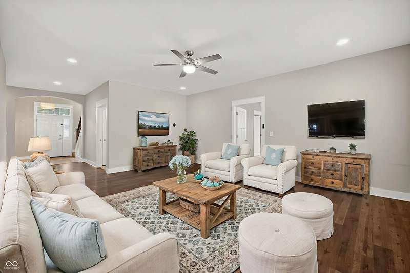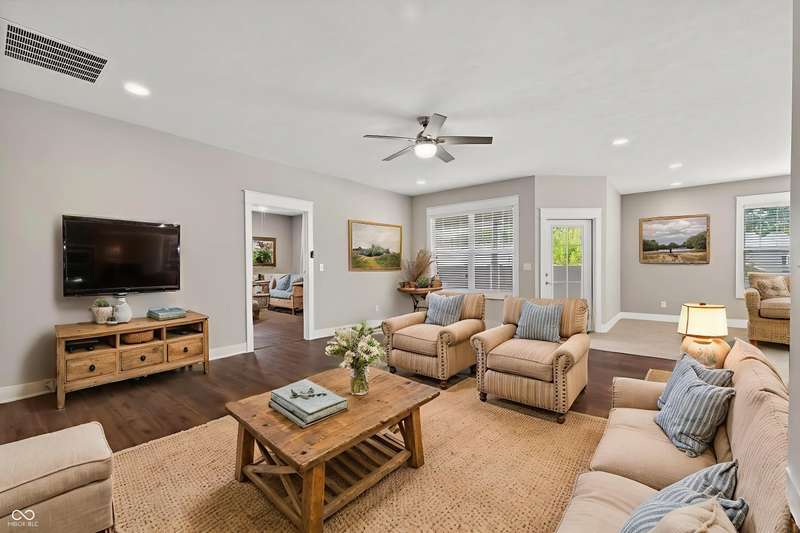 Welcome home to 3720 W. Cheryl Drive. This ranch with 1/2 story upper is a very popular floorplan. The owners have spruced up the landscaping for a very nice wow factor. The exterior mix of arched entry, stone, dormer and slat insert windows offer a craftsman bungalow feel. Inside you'll notice an open floor plan perfect for entertaining. The kitchen offers custom cabinetry with dovetailed drawers, backsplash and stainless steel appliances. Granite countertops and a kitchen island with bar seating. Kitchen is open to dining and living room, with lots of windows across the back, offering optimal natural light. The primary main level bedroom offers a walk-in closet and private bath. There is also a second bedroom, second full bath and den, large enough for a guest bedroom if needed. Upstairs you'll find 2 bedrooms or a quiet spot for a home office, tv den or home gym. This floorplan is so versatile, offering a mix of everything on one level but options for guests and hobbies. Outside there is a covered back porch with shade blinds and a fully fenced backyard. There is also a 10x10 storage barn. The home offers popular amenities within minutes: 2.4 miles to the interstate, 4 miles to Indiana University and 5 miles to downtown Bloomington. You'll also have multiple options for high speed internet to choose from.