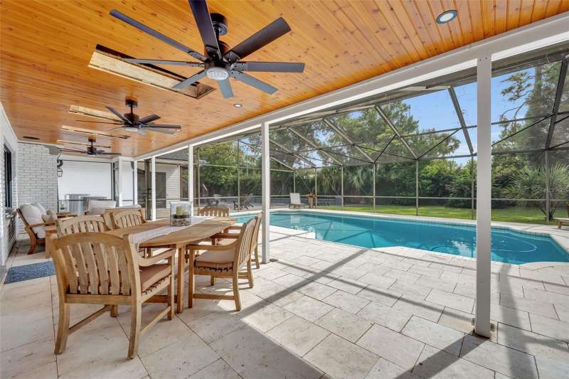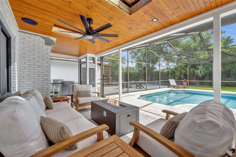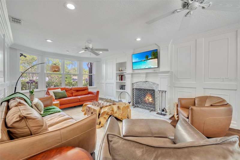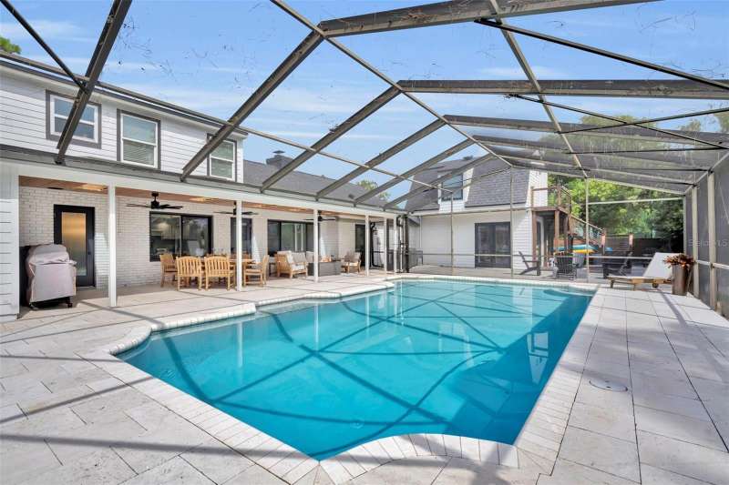 Welcome home to this beautiful Dutch Colonial Revival–style residence, gracefully set on nearly half an acre in the beloved community of Sweetwater Oaks. Filled with charm and enhanced with thoughtful, luxury upgrades, this spacious 2-story home features 5 bedrooms and 4 bathrooms in the main house, plus a private 1-bedroom, 1-bath apartment over the 3rd-car garage — perfect for family, guests, or a quiet home office. Inside, you’ll find a home designed for comfort and connection. A large home theatre room sets the stage for cozy movie nights, while the reimagined primary suite offers fireplaces and a spa-inspired bath that feels like a private retreat. Upstairs, solid hardwood flooring adds warmth to the living spaces, and top-of-the-line Pella windows and doors bathe the home in natural light. The separate guest apartment, complete with its own entrance and Trex staircase, provides stylish privacy for visitors. Step outside to a backyard made for entertaining. The screened saltwater pool has been beautifully renovated with imported limestone pavers, a sparkling quartz surface, and upgraded tile, while the lanai boasts a tongue-and-groove ceiling, Sonos sound system, and elegant lighting. Beyond, more than 2,200 sq. ft. of brick pavers, a firepit, and custom masonry details create a welcoming outdoor gathering space. Recent upgrades include a new roof, full siding replacement, a fully renovated garage with epoxy flooring, multiple newer A/C units, and a whole-house Brita water softener — proof that no detail has been overlooked. Living in Sweetwater Oaks means enjoying private access to spring-fed Lake Brantley and the Wekiva River, along with tennis, pickleball, basketball, sand volleyball, parks, and a clubhouse. Just minutes from Wekiva Springs State Park, this residence offers the perfect balance of timeless tradition, modern luxury, and community living.