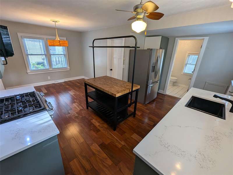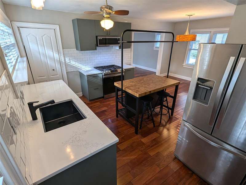 This charming 1920s bungalow is located in the perfect village setting, just a few blocks from downtown Oxford and right around the corner from the scenic Polly Ann Trail. Sitting on a spacious corner lot, this well-maintained, move-in-ready home blends classic Craftsman-style features with modern updates. The open-concept bright new kitchen(2023) includes stainless appliances, beautiful quartz countertops, new lighting and a tile backsplash. The Living area combined with the bright enclosed sun porch, create an inviting space that’s flooded with natural light and recessed lighting. The first-floor primary bedroom adds convenience, and the beautiful oak staircase adds to the home’s character. Upstairs are two generous sized bedrooms with storage and built ins and laminate flooring. The basement is light with a daylight window, laundry area (washer and dryer are included), and plenty of storage space. Updates in the house include: hardwood floors on the first floor (2023), new carpeting in the primary 1st floor bedroom (2025), newer stainless steel appliances -gas stove, dishwasher and microwave (2023), quartz countertops (2023) energy-efficient heating and cooling system (2016), water heater (2017), and a radon system (2025). The exterior of the home features low-maintenance vinyl siding, while the backyard is a true oasis with a brick paver patio, extended deck for outdoor BBQs, and a fenced, landscaped yard with many perennials. A shed in the backyard also provides additional storage. This home offers the perfect balance of character, convenience, and modern living in a highly desirable location and immediate occupancy.