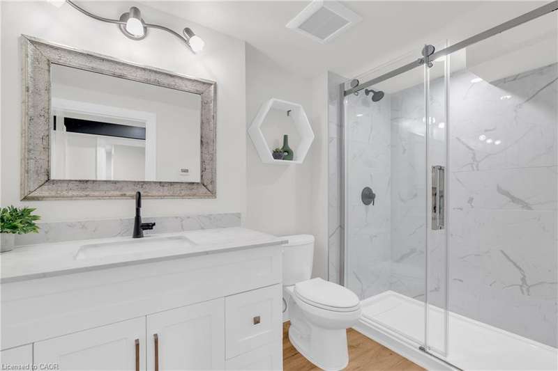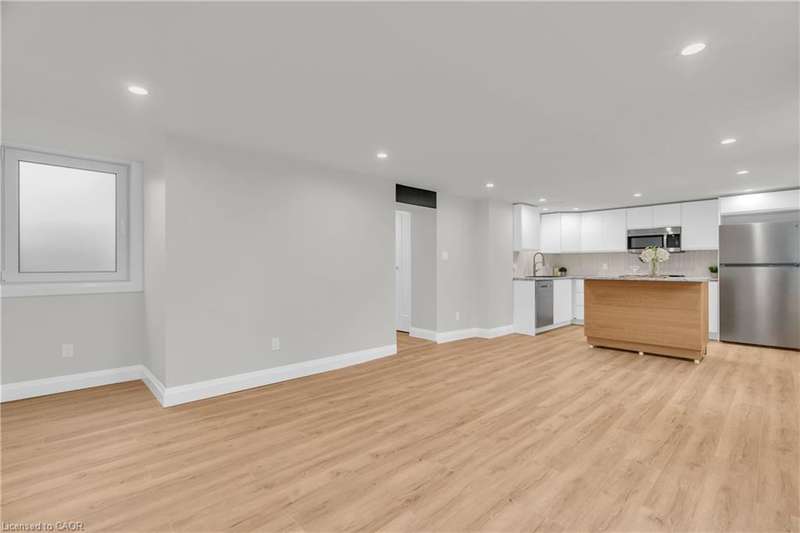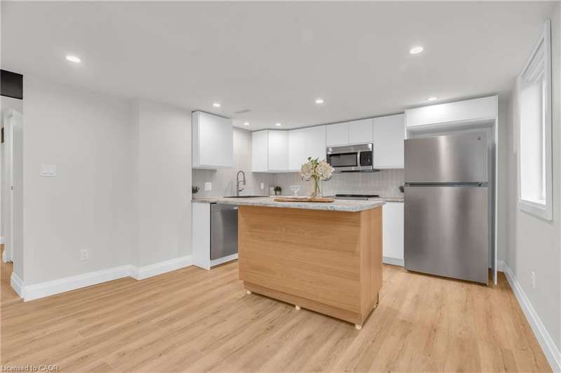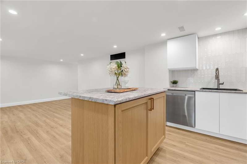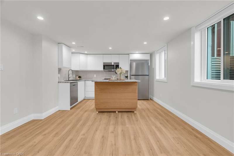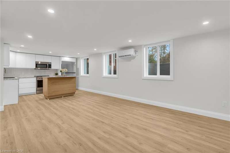 Welcome to this immaculately renovated and spacious 2 bedroom + den, 1 bath lower unit, thoughtfully designed, boasting over 1,100sqft, with a functional layout and beautiful, warm finishes. The open concept kitchen and living space features stainless steel appliances, sleek cabinetry, and 3 large windows that make this basement unit feel bright and airy, filling the home with natural light and looking out onto the backyard space. A spacious den offers versatility for those looking for some work at home space, a yoga area, or kids zone. Enjoy the convenience of an in-suite laundry room. This unit boasts lots of storage, between a large walk-in closet in the primary bedroom, under the stairs storage, and more storage in the laundry room. Two spacious bedrooms and one full bathroom with thoughtful updates, including heat pumps which are energy efficient cooling and heating sources allowing for personalized heating throughout the home. The shared backyard provides extra outdoor space to relax or unwind. Located minutes from Highway 8, a short walk to Ash Park, and close to downtown Kitchener, you have everything you need close by. Come see for yourself why this unit could be your new home!