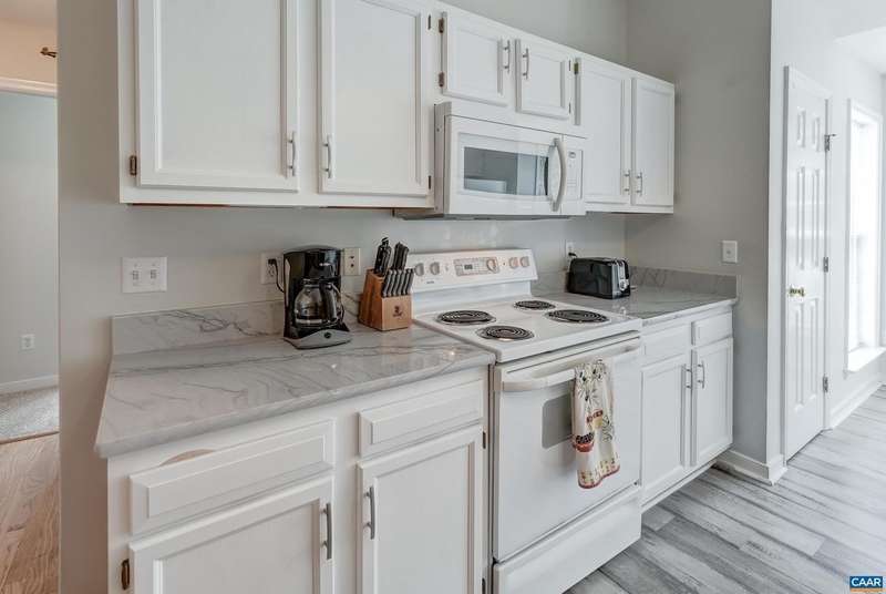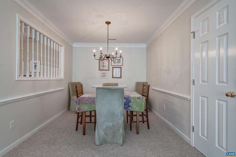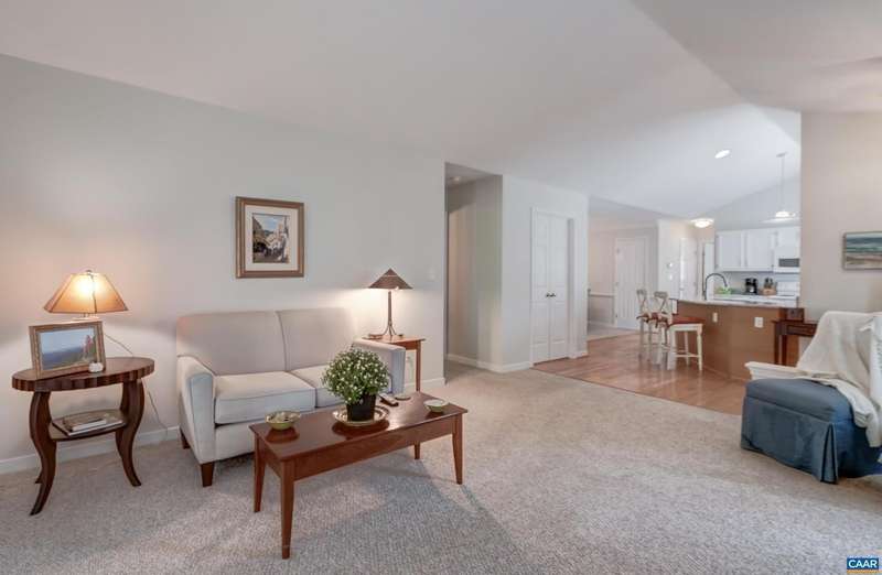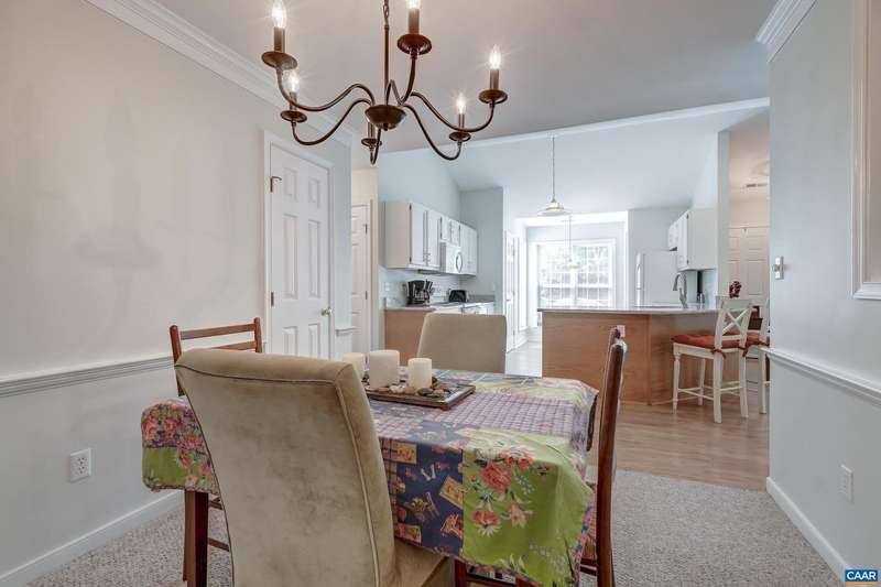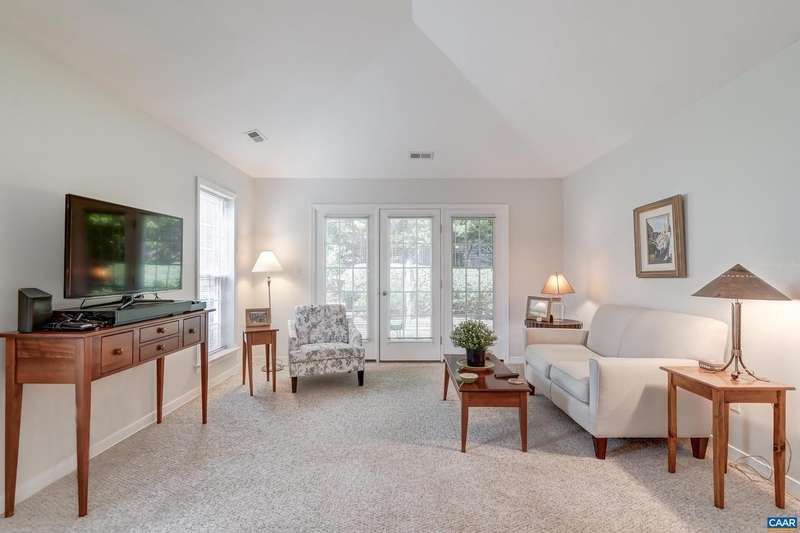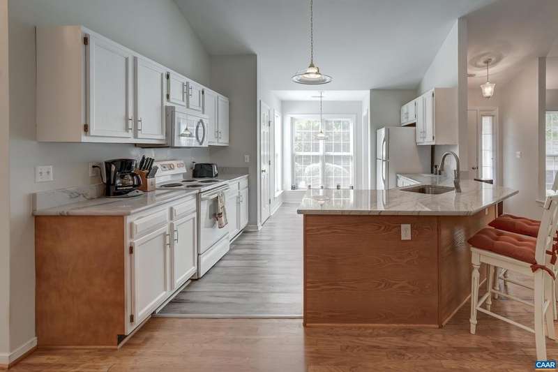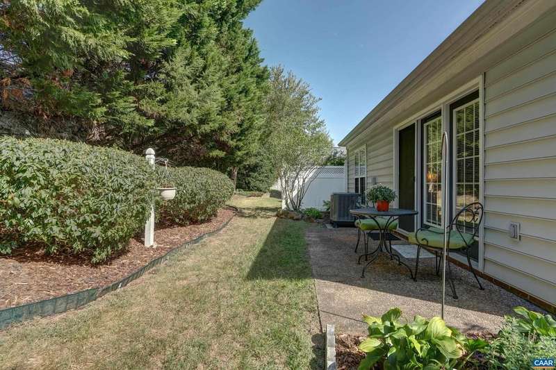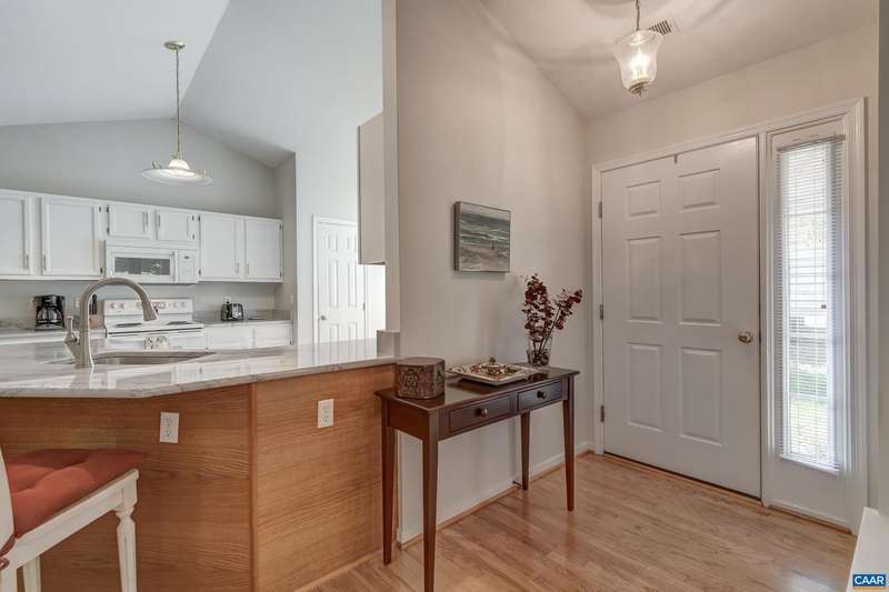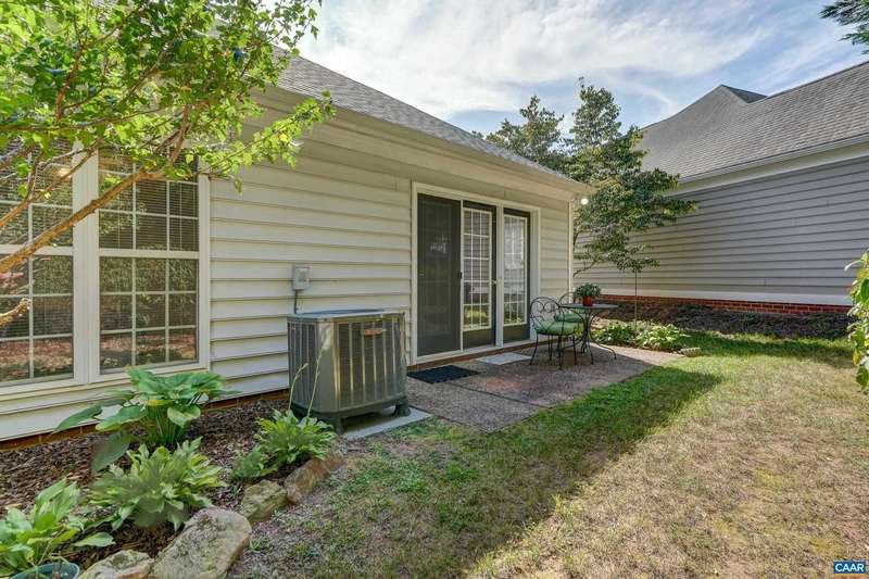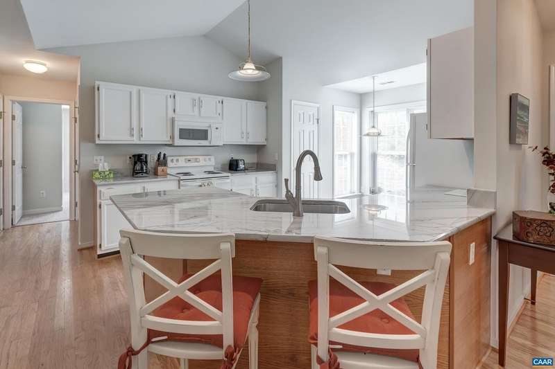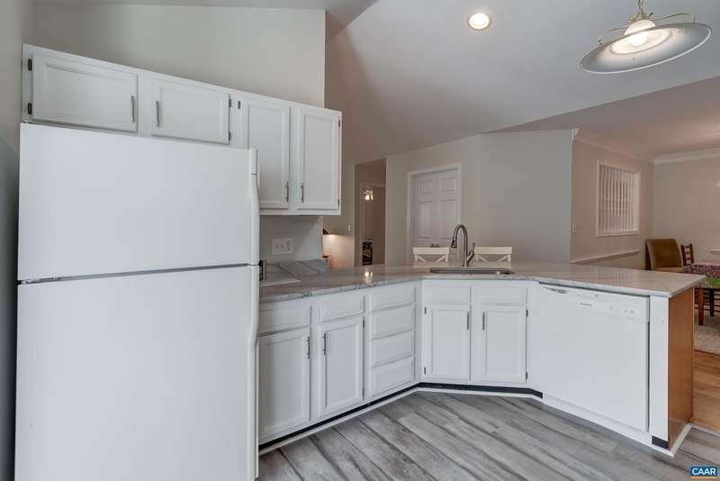 Peaceful living in the heart of Charlottesville! Tucked away in this centrally located neighborhood, this one level villa home provides a quiet sanctuary while being minutes from 5th St. Station, Wegmans, UVA and downtown. The open floor plan flows seamlessly from the large renovated eat-in kitchen with granite countertops, updated white cabinets, and new dishwasher and microwave. Formal dining area and lovely living room with soaring vaulted ceiling, and sliding doors leading out to the private back patio. The primary bedroom features two large closets and an updated ensuite bathroom with new vanity, commode, and showerhead. A second spacious bedroom with full bath that is great for guests and an additional room that can be used as an office, playroom or guest room round out this warm sun-filled home. This home features a new roof and one car garage too! Professionally landscaped with mature hedges and seasonal flowers. Neighborhood amenities such as walking/running trails, a playground, and pool are within walking distance.,Granite Counter,White Cabinets