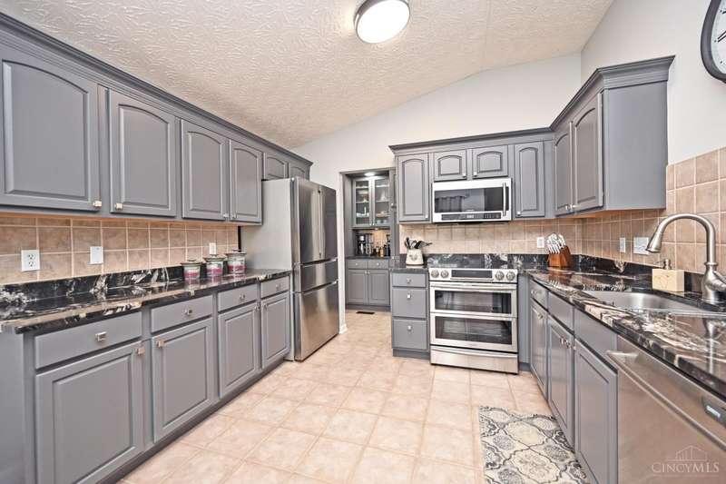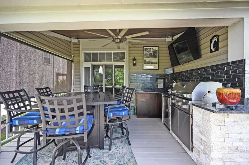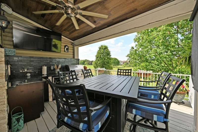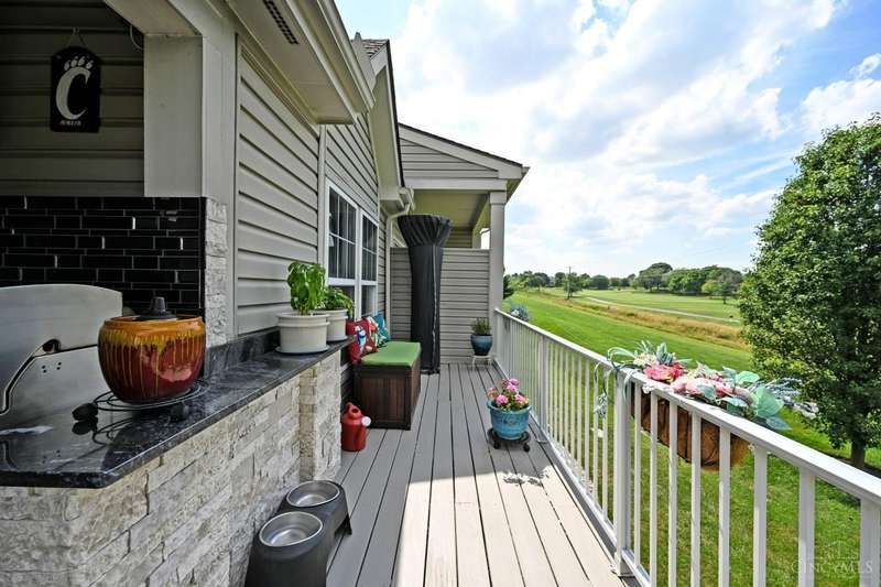 This amazing condo is back on the market due to no fault of the sellers. Now is your chance to own this Well-appointed ranch end-unit condo offers spacious covered deck equipped w/ outdoor granite kitchen overlooking trees and the 13th tee of Grizzly Golf Course. Interior highlights include high ceilings, gorgeous primary bath & closet w/ integrated laundry facilities. The eat-in kitchen includes granite surfaces, SS appliances, and a designated coffee bar. Finished walkout LL provides a wet bar, bedroom w/ 2 closets, full Jack & Jill bathroom, study, cedar closet, & substantial storage space.