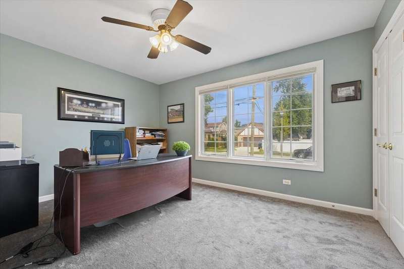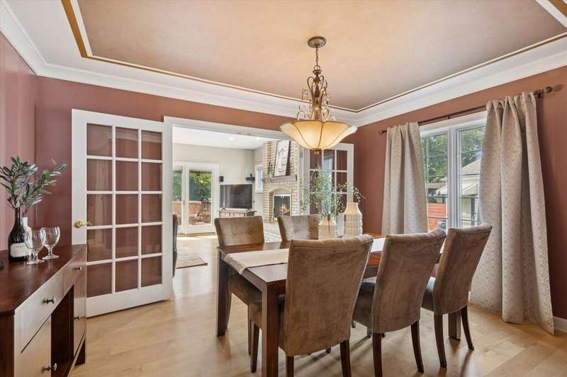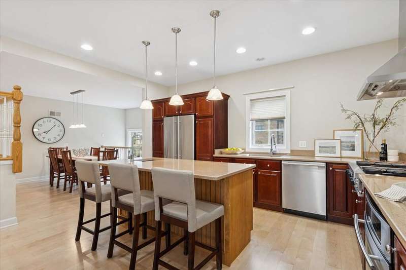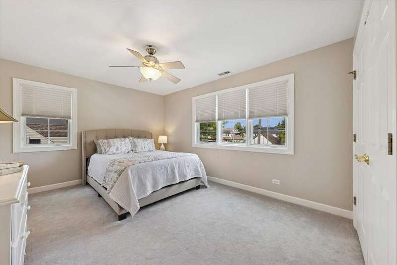 Gorgeous Two Story family home with 3146 sq ft + a finished basement. It's all here with 4 bedrooms on the 2nd floor, 1st floor den or bedroom (5th- great for in-laws) and 3 full baths. This modern open floor plan has so much natural light! The newly refinished hardwood floors are an upgraded 5' plank with a natural finish. Formal living room & dining room, 1st floor office or 5th bedroom has large closet & lots of windows - private. The kitchen opens to the family room with oversized island with seating, Viking stove, stainless modern hood, stainless appliances (newer dishwasher), Quartz countertops, wet bar, separate breakfast room & family room with sliders to the deck & a brick wood burning fireplace. Large mud room has a bench and coat closet with custom organizer- this separate room works great for kids. Impressive open staircase leads to a open 2nd floor hallway, double door linen closet, skylight, 3 bedrooms with built-in bookshelves, good closet space, a spacious laundry room & a 4th bedroom/primary suite with sitting room (or 2nd office), fireplace, walk-in closet (skylight) & luxury bath, 2 sinks, Jacuzzi tub, & separate steam shower. The finished basement has good rec kids space, exercise room, storage room & rare exterior access. The outside includes a covered front porch, Hardy Board siding, back deck, fire pit area, room for a swing set, extra wide driveway (newly redone) for parking & 2++ car garage. This house had an addition in 2005 with mechanicals redone & includes: Dual HVAC (1 cac 2013), overhead sewers, 2005 roof (30 year shingle). Seller has perfectly maintained this Tuxedo Park family home. This top location is a few doors from 2024 "Blue Ribbon Awardee" Jefferson Elementary, the IL Prairie Path, Smalley Pool-Park, and the York-Vallette Business District. Top Notch!