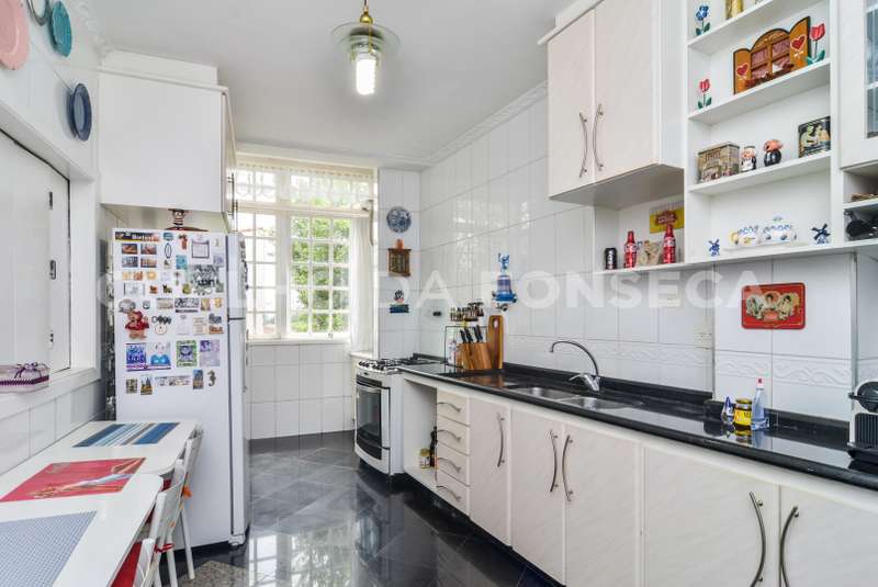 Casa com três pisos, ampliada e reformada. Local altamente arborizado, tranquilo e a 10 minutos do metrô Sumaré, quatro quartos no andar superior com hall de chegada (piso laminado, telefone e TV a cabo), sendo um com varanda, duas suítes e um com armário fixo, mesa para computador e prateleiras, uma sala de estar com hall de chegada, excelente claridade, assoalho de madeira, teto com trabalhos em gesso, papel de parede importado e uma sala de jantar com lareira.