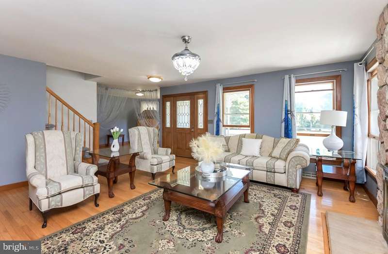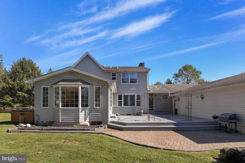 Spacious and beautifully designed 3-bedroom, 3-bath home situated on 2 acres with a 3-car garage and an unfinished basement. The first floor showcases gleaming hardwood floors, a welcoming living room with a wood-burning fireplace and stone surround, and a formal dining room that opens to a gourmet eat-in kitchen. The open layout between the kitchen and family room provides the perfect space for entertaining family and friends. Oversized sliding doors from the family room lead to a large deck and patio overlooking the lush, expansive backyard. A versatile great room on the main level offers flexibility as a guest room, home office, or playroom, with a remodeled full bath conveniently nearby. This great room also provide access to the deck and back yard Upstairs, the primary suite features a sitting area, generous closet space, and a luxurious en-suite bath with a Jacuzzi tub and imported Italian marble finishes. Two additional bedrooms share a full hallway bath. The spacious unfinished basement offers endless possibilities for future expansion. A 3-car garage provides plenty of parking and additional space for tools, storage, or a workshop. This home combines comfort, space and style all in a peaceful setting just minutes from local amenities, major routes and shopping.
