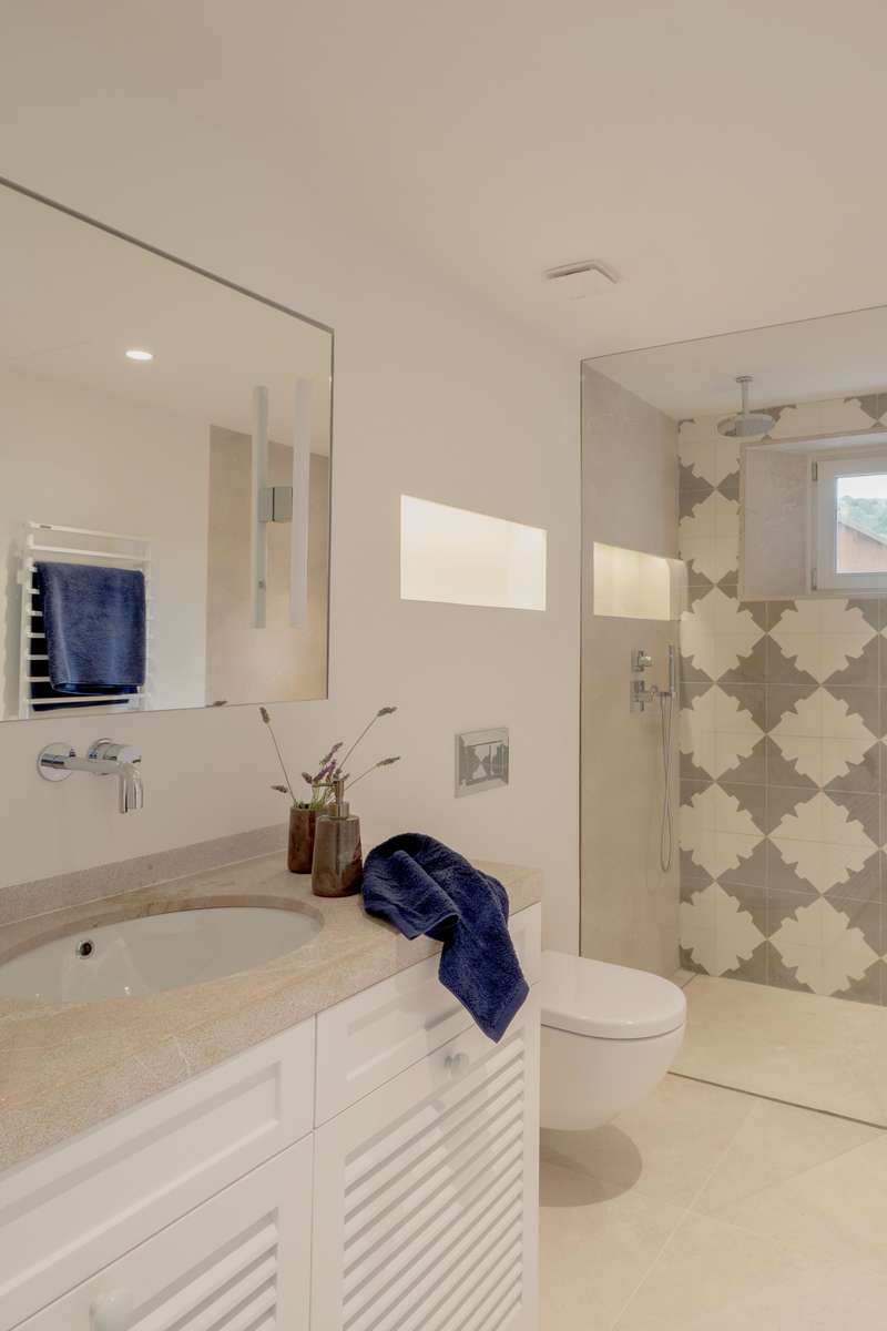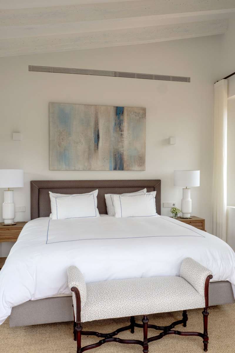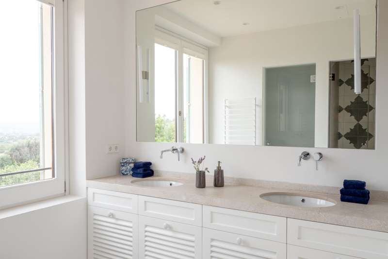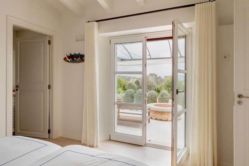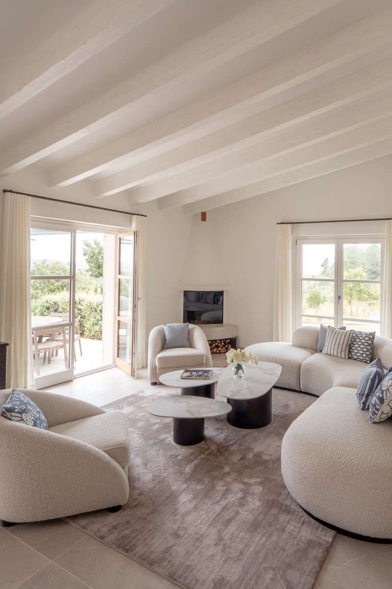 Nestled near the picturesque village of Santa Maria del Camí, this stunning four-bedroom country retreat offers a perfect escape into tranquility. Set on an expansive plot of nearly 15,000m², the property boasts breathtaking views of the Tramuntana mountains, providing both seclusion and easy access to local amenities. Inside, you'll find bright and airy spaces that beautifully blend modern design with timeless elegance. The ground floor features a spacious open-plan living and dining area that flows effortlessly onto large terraces, ideal for enjoying the outdoors. The contemporary kitchen is filled with natural light and offers a central island with lovely views of the garden. Two double bedrooms on this level come with ensuite bathrooms and direct access to the outdoor terrace, making them perfect for guests. Upstairs, two additional bedrooms await, including a generous master suite that opens onto its own terrace, where you can soak in spectacular sea views. Each bedroom upstairs