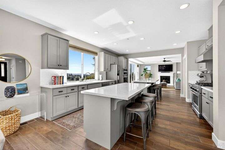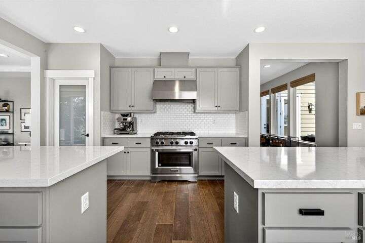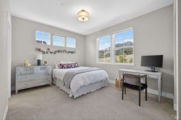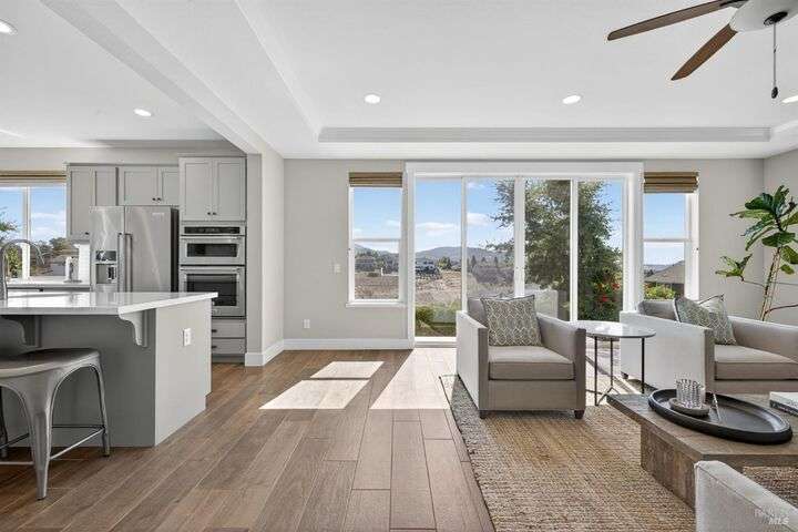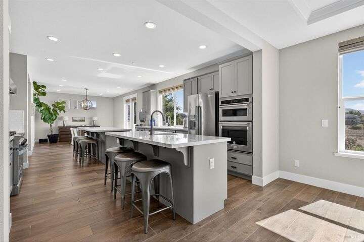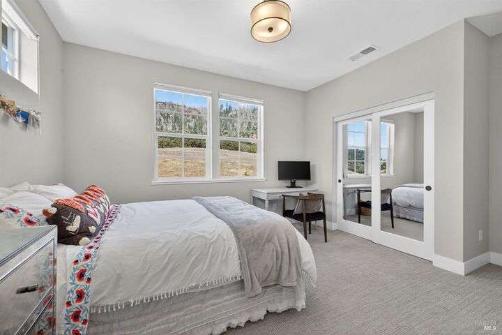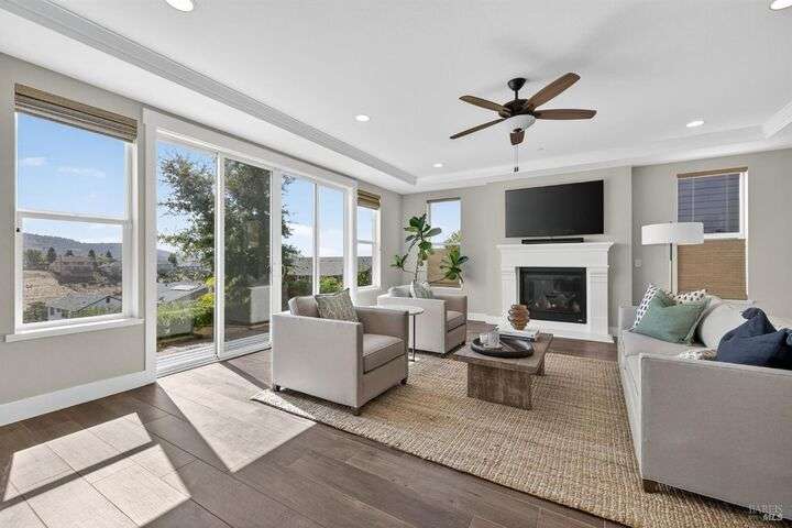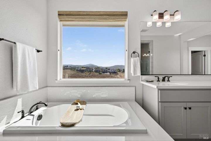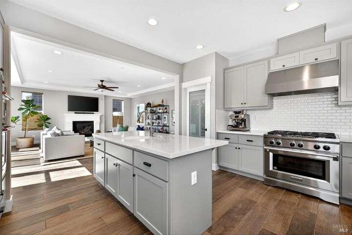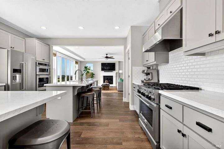 Nestled in the highly sought-after The Reserves in Skyhawk neighborhood, this exceptional home is zoned for Austin Creek Elementary, one of the county's top-rated schools. Featuring 4 bedrooms, 4.5 bathrooms, and over 3,100 sq. ft. of beautifully designed living space, it strikes the perfect balance of elegance and everyday comfort. The open floor plan showcases a chef's kitchen with premium KitchenAid appliances, dual ovens, and a rare double island, seamlessly connecting to a spacious living area with a cozy gas fireplace. A main-level bedroom with full bath, versatile upstairs loft, and multiple ensuite bedrooms provide flexibility for both family and guests. The expansive primary suite boasts a spa-inspired ensuite bath and walk-in closet, while additional highlights include tile flooring, central heat and air, and a three-car garage. Outdoors, enjoy year-round living with a built-in fireplace and serene views, with the added privacy of open space directly across the street. Set on a 0.22-acre lot and offered in excellent condition with washer, dryer, and refrigerator included, this home truly delivers the best of luxury, lifestyle, and location.