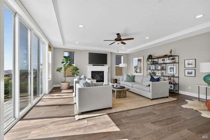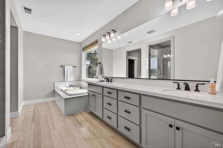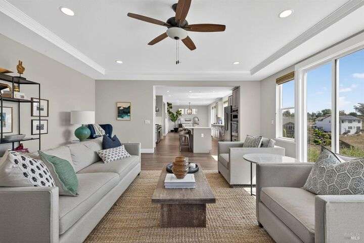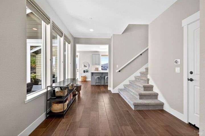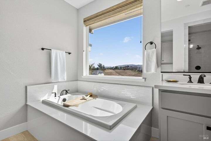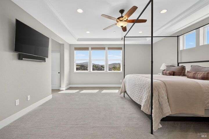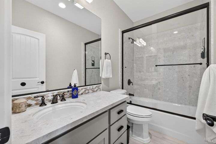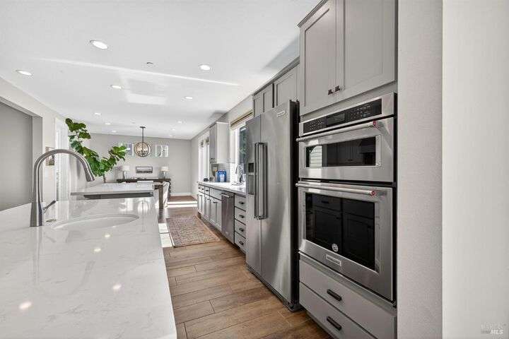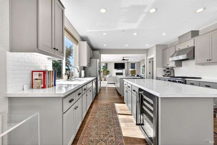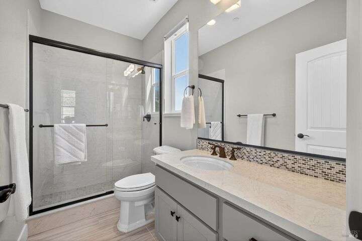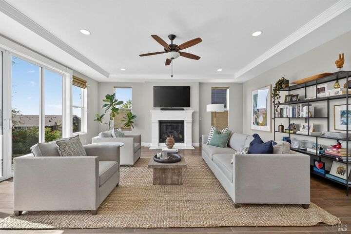 Nestled in the highly sought-after The Reserves in Skyhawk neighborhood, this exceptional home is zoned for Austin Creek Elementary, one of the county's top-rated schools. Featuring 4 bedrooms, 4.5 bathrooms, and over 3,100 sq. ft. of beautifully designed living space, it strikes the perfect balance of elegance and everyday comfort. The open floor plan showcases a chef's kitchen with premium KitchenAid appliances, dual ovens, and a rare double island, seamlessly connecting to a spacious living area with a cozy gas fireplace. A main-level bedroom with full bath, versatile upstairs loft, and multiple ensuite bedrooms provide flexibility for both family and guests. The expansive primary suite boasts a spa-inspired ensuite bath and walk-in closet, while additional highlights include tile flooring, central heat and air, and a three-car garage. Outdoors, enjoy year-round living with a built-in fireplace and serene views, with the added privacy of open space directly across the street. Set on a 0.22-acre lot and offered in excellent condition with washer, dryer, and refrigerator included, this home truly delivers the best of luxury, lifestyle, and location.