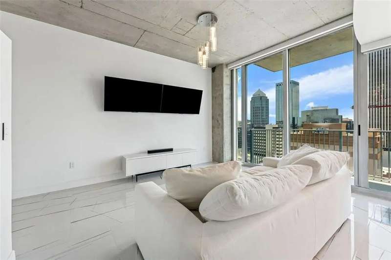 Experience elevated urban living in this stunning corner unit on the 15th floor of the iconic Skypoint condominium at 777 N Ashley Dr, Tampa, FL 33602. This residence offers breathtaking panoramic views of the Tampa skyline through floor-to-ceiling windows, complemented by soaring 10-foot ceilings that enhance the spacious ambiance. The open-concept layout seamlessly connects the living, dining, and kitchen areas, featuring high-end finishes and modern appliances. Residents enjoy access to premier amenities, including a rooftop pool, state-of-the-art fitness center, and 24-hour concierge service. Situated in the heart of downtown Tampa, Skypoint offers unparalleled convenience to dining, entertainment, and cultural venues. Don't miss this opportunity to own a piece of luxury in one of Tampa's most sought-after locations.