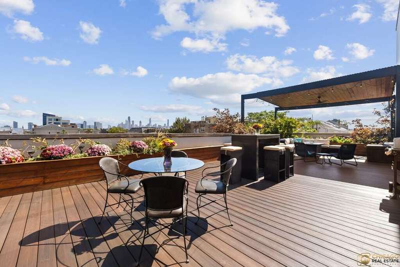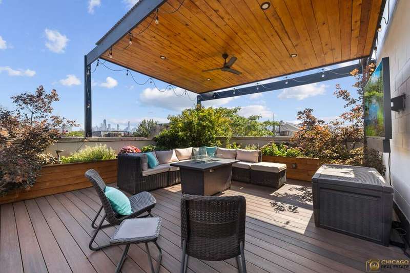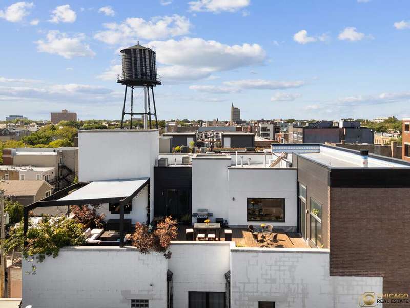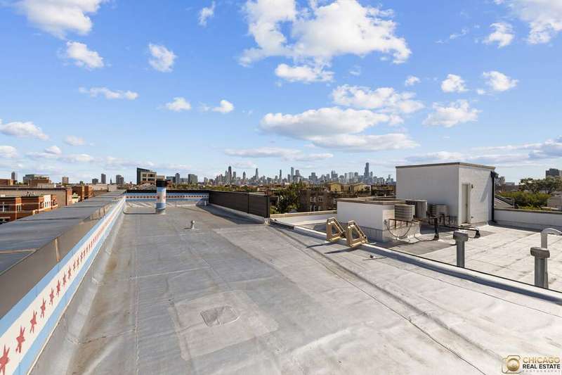 Don't miss this extraordinary full-floor 2 bedroom plus office/den/potential 3rd bedroom, 2 bathroom penthouse in the heart of Bucktown. This chic boutique building offers easy elevator access directly into your unit and the most incredible skyline views! The wide, open concept floor plan is flooded with natural light, featuring 12'+ ceilings, hardwood floors, updated moldings, and so much more. The designer kitchen has granite countertops, a huge island with stainless steel appliances, a wine fridge, and opens up to the large living room with an incredible floor-to-ceiling fireplace and separate dining room with stunning views. Access to the 1000 sqft private roof deck is available through 2 separate doors allowing for easy indoor/outdoor living from your main living area. Relax under the beautiful pergola and enjoy the composite decking and built in planter boxes while you take in the fabulous views of the city skyline. Plus you get a second 500 sqft upper rooftop deck displaying even more exceptional views. Retreat indoors to the generously sized main bedroom equipped with a walk-in closet with custom organizers, a private balcony and an en-suite main bathroom with custom tile work, a steam shower and a whirlpool tub. A second bedroom and newly renovated bathroom completes this perfect package. This amazing penthouse includes an attached 2-car garage plus additional tandem spots. Truly a rare find in a fabulous location - just steps from North/Damen, many restaurants and nightlife, public transportation and 90/94.