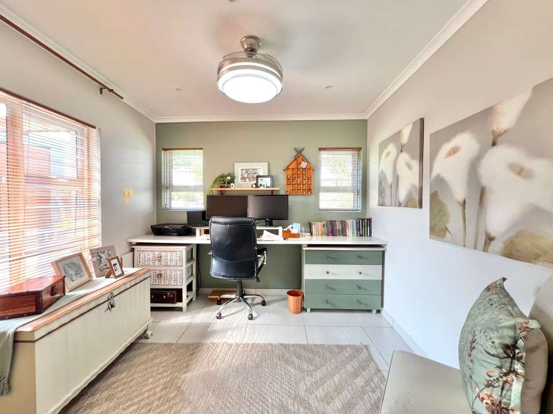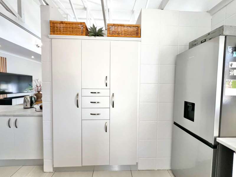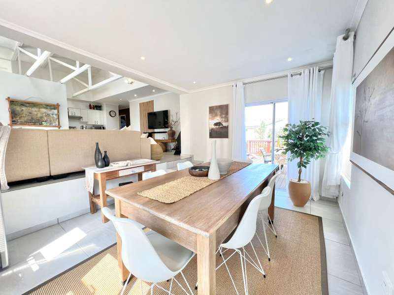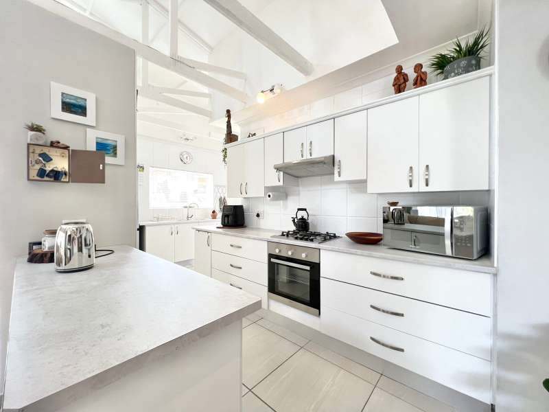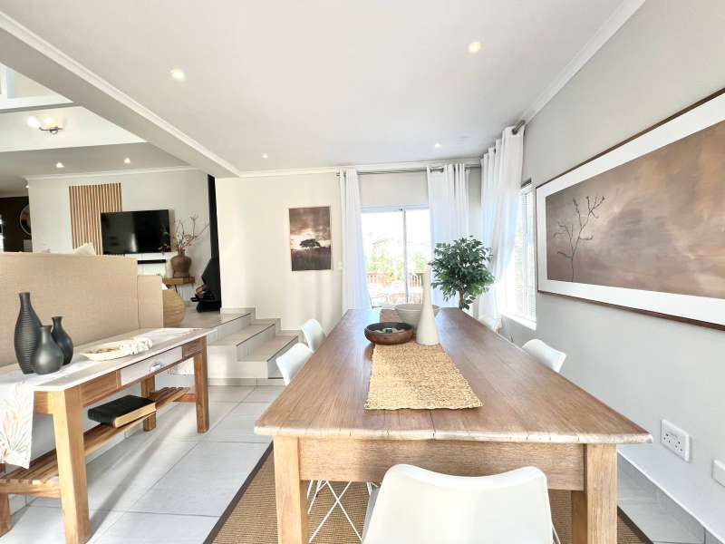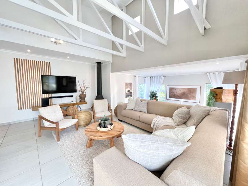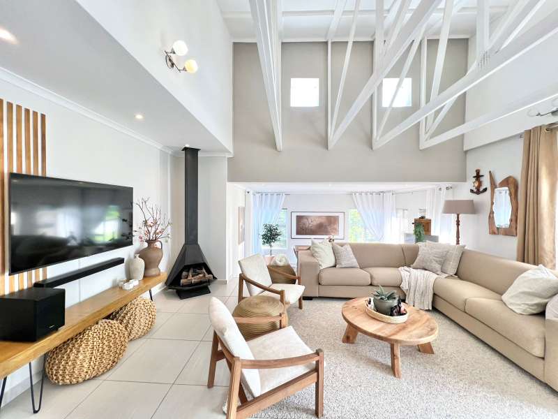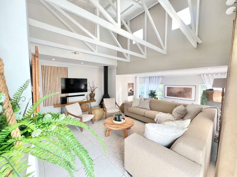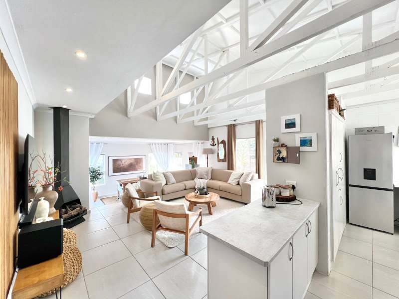 EXCLUSIVE SOLE MANDATE- Step into this beautifully renovated, move-in-ready home nestled in the tranquil heart of Noorsekloof. From the moment you enter, you're welcomed by airy open spaces, soaring exposed trusses, and a warm, inviting lounge featuring a stylish gas fireplace (convertible to wood-burning) — perfect for cozy evenings. The open-plan layout flows effortlessly into the dining area, which opens onto a spacious deck with built-in braai — ideal for entertaining while enjoying the serene views of the Noorsekloof greenbelt as your backdrop. The crisp white kitchen is both elegant and functional, featuring a gas hob, electric oven, ample cupboard space, and a separate scullery and laundry area to keep things neat and organized. Accommodation includes 3 bedrooms, 2 bathrooms, with the main bedroom boasting an en-suite bathroom. A second full bathroom serves the remaining two bedrooms, while extra hallway linen cupboards add to the convenience. Additional features include: • Double garage with one automated door • 5,000-litre water tank connected to the house • Trellidoors on all exterior doors for enhanced security • Modern retractable ceiling fans in all bedrooms. • PREPAID Electricity. This home is the perfect blend of comfort, style, and practicality — all set in the peaceful surrounds of Noorsekloof. This property will go quickly- Call me for a private viewing today!
