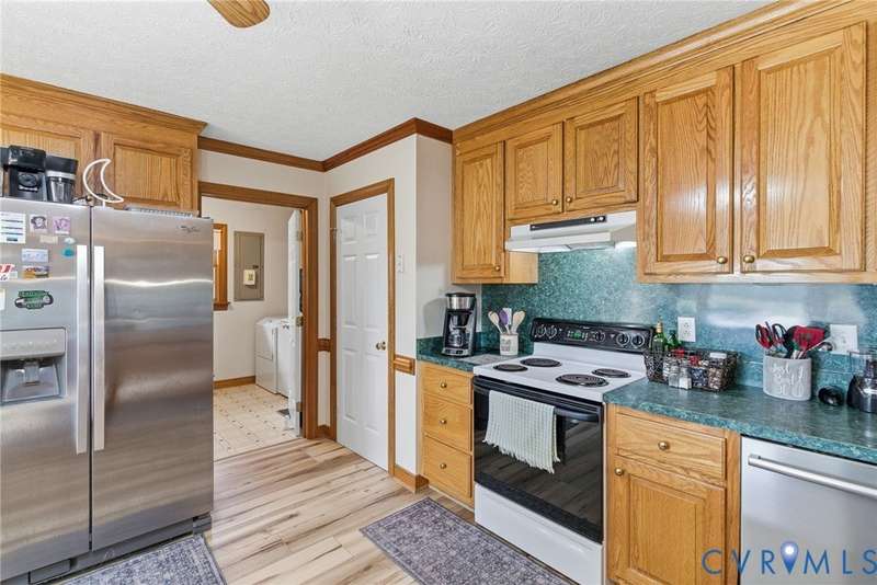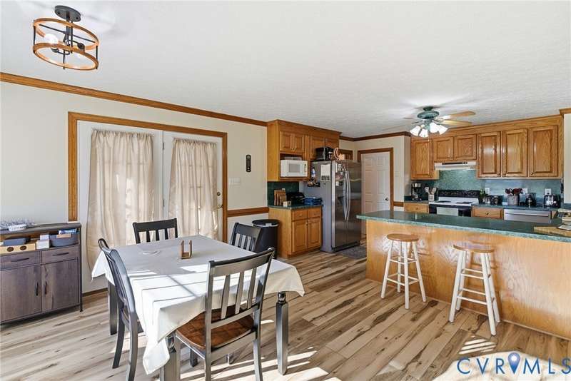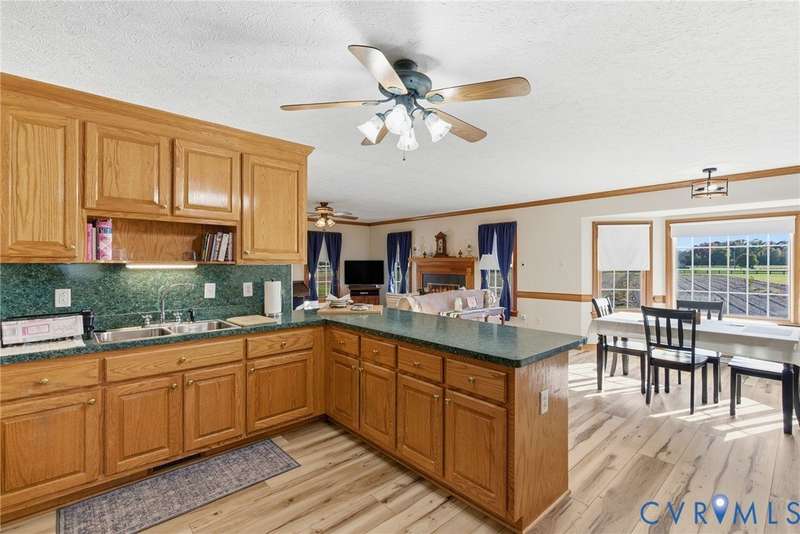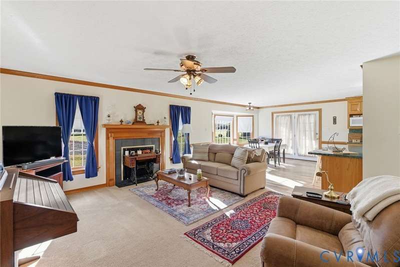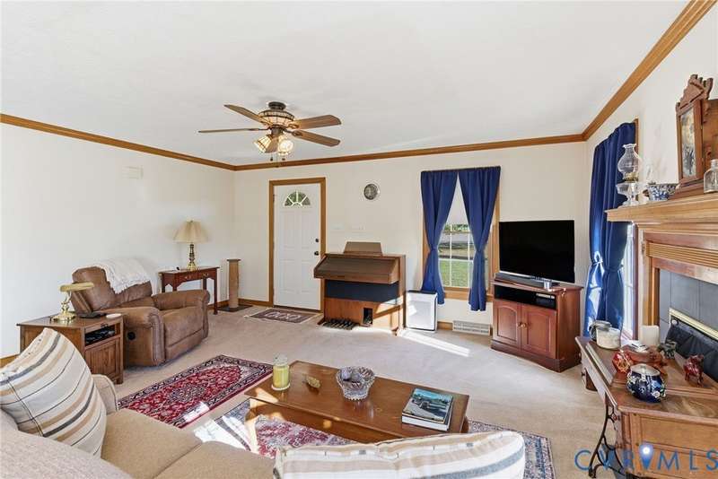 Welcome home to country charm on over five peaceful acres at 240 N Oakland Lane in Walkerton! This 3-bedroom, 2-bath ranch offers 1,688 sq ft of inviting living space with an open floorplan that seamlessly connects the living, dining, and kitchen areas, perfect for entertaining or relaxing by the cozy fireplace. The home features new LVP flooring in the kitchen, custom oak cabinets, crown molding, and chair railing that add warmth and craftsmanship throughout. Enjoy endless hot water with the Rinnai tankless water heater and take advantage of the 12x24 shed with electricity and roll-up door, plus an additional 8x12 shed for extra storage. A 20x20 metal carport provides convenient covered parking, while the property's 5 acres offer plenty of space for gardening, outdoor hobbies, enjoying the peace and quiet of the countryside or even room for horses and equestrian enthusiasts to create their ideal setup. Located just minutes from the Walkerton Boat Ramp on the Mattaponi River, this home is perfect for those who love the outdoors but still want modern comfort and easy access to town amenities.