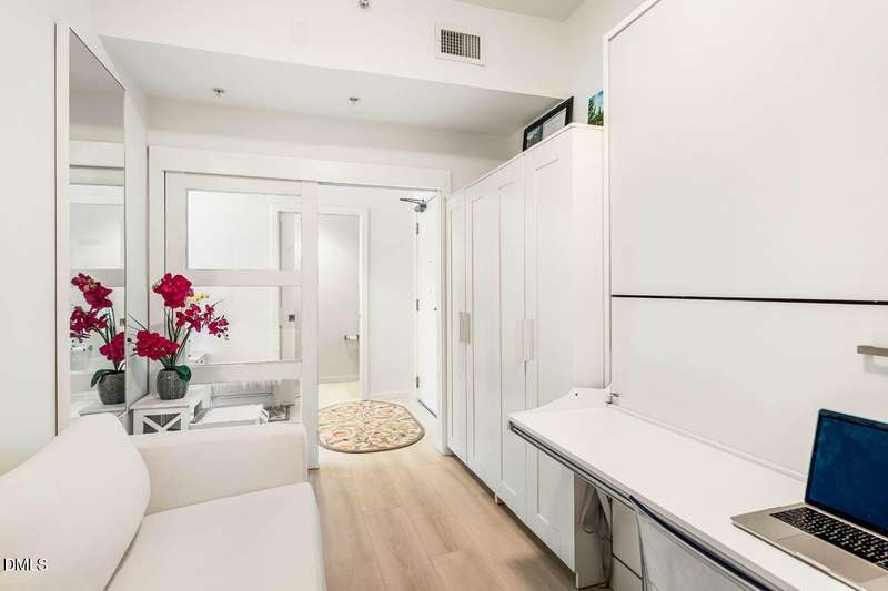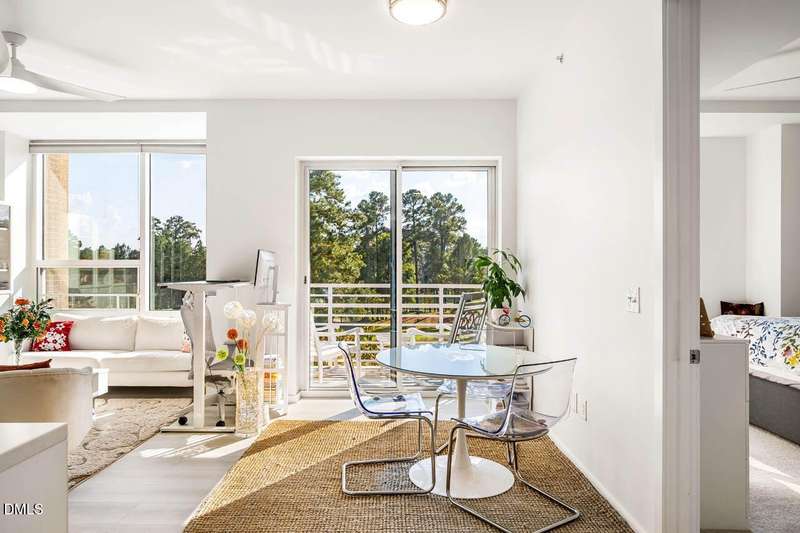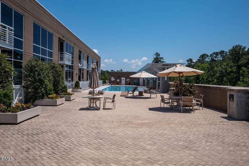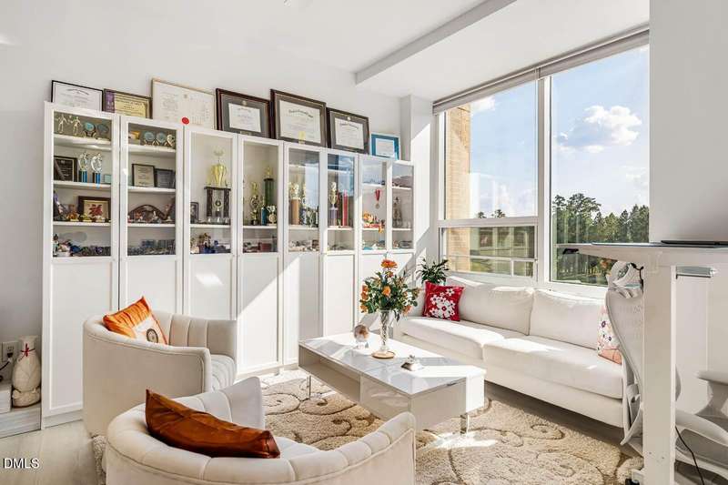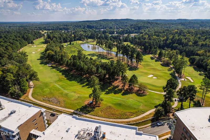 CLEAN & SERENE with SCENIC long-distance golf course greens & wooded views!! *Come enjoy the comfort & relaxing easy living life-style of the highly sought after East 54 community *Live above it all - the perfect location with restaurants, retail, shops & more right downstairs. Only minutes to UNC/CH campus, hospital, downtown Franklin Street & just 2 miles to I-40 for easy commutes *Get in a workout at your own private gym or take a dip in the ROOF-TOP salt water pool & catch some rays on the terrace *Private parking garage, security code entry & elevators with all 1-level living *UPDATED larger 1-BR unit / 1.5 Baths + Den/Office (with built-in trundle bunk beds - ideal as a 2nd sleeping area option for family/guests). OPEN & versatile floor plan with expansive kitchen island & breakfast bar. High-ceilings & walls of windows let the light flood in. *Spacious primary suite with large walk-thru closet & bath with walk-in shower. You'll also find a washer/dryer & added shoe storage for everyday ease. Walking trails & free bus line just steps away from the front door. Feels like new & built to LEED Gold certified standards. Don't miss this opportunity for stunning skyline views & sunsets from your covered balcony with the perfect balance of luxury & location!