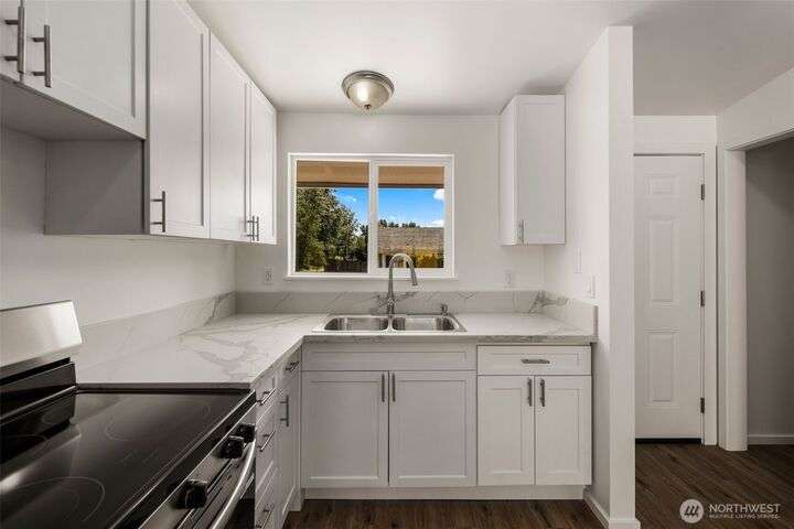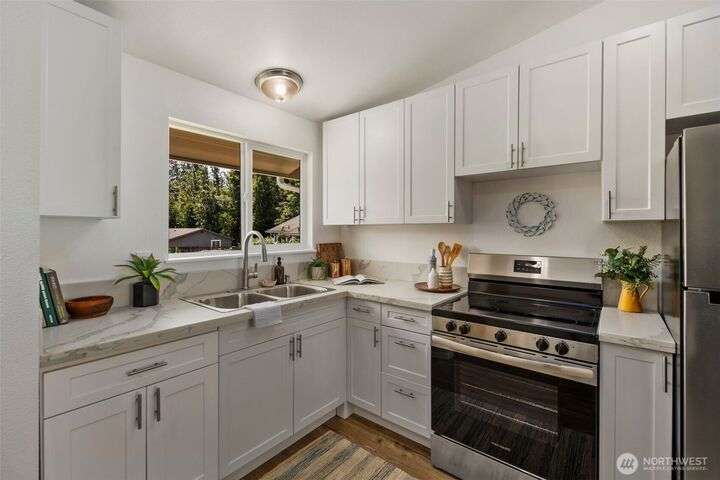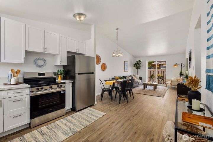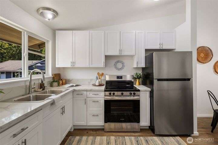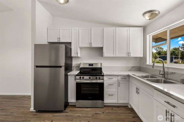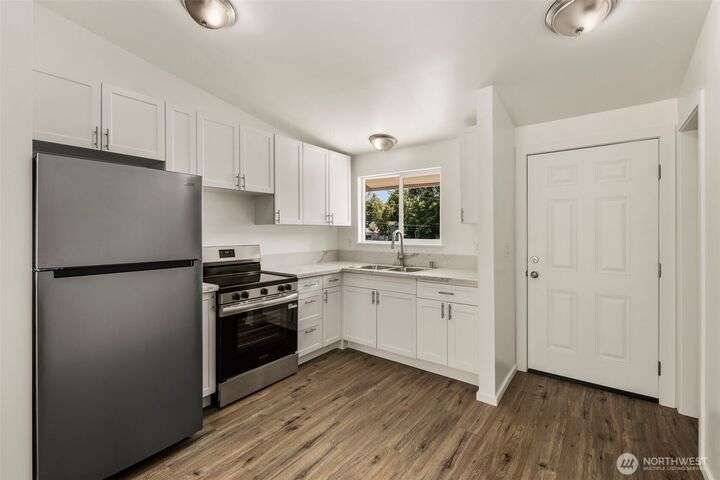 Duplex fully remodeled in 2025. Each single-level 2-bed, 1-bath unit (852 sq ft) features new siding/windows, vaulted ceilings, new craftsman-style cabinets, quartz counters, stainless appliances, woos-look plank flooring, fresh interior/exterior paint & sliding doors to private patios & partially fenced backyards. Dedicated individual laundry/storage rooms & 2 carports between units add privacy. Offers exceptional flexibility for investors, multigenerational living or owner-occupants. Located in Alderwood community. Off-street parking for 6 cars total. Rents are estimated. Inspection Report available!