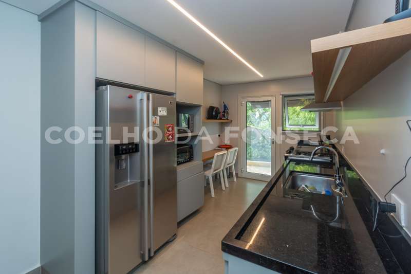 Cozinha integrada com a sala e o espaço gourmet, ideal para receber amigos e familiares.