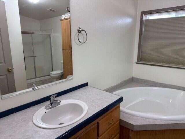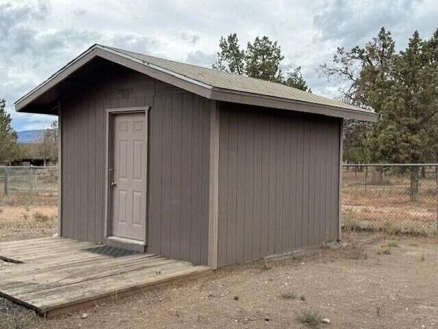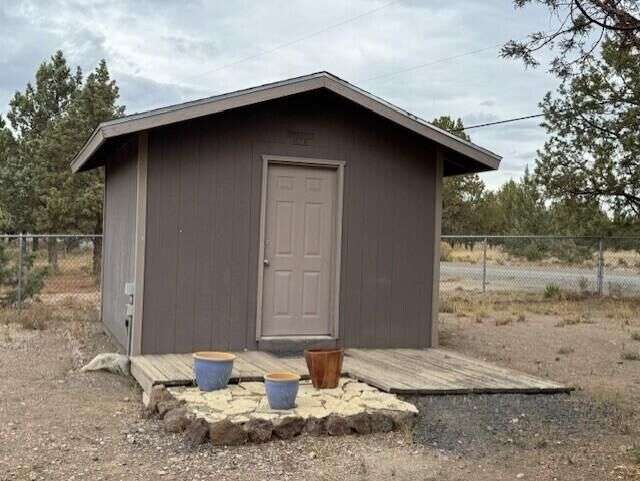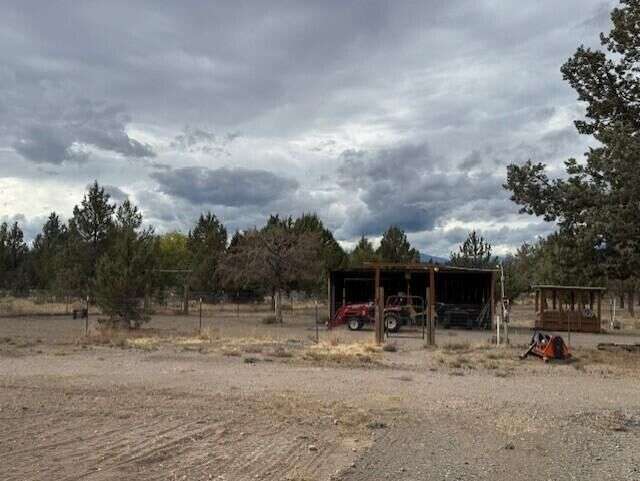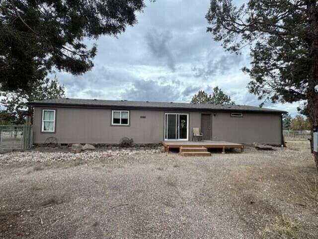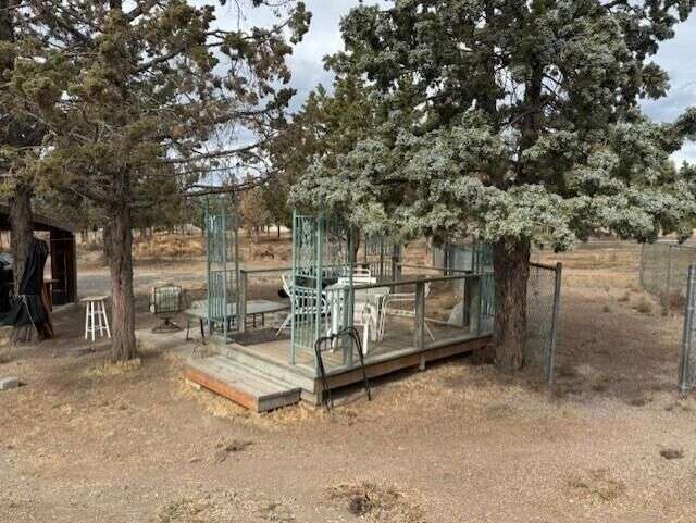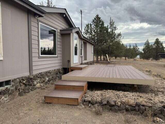 Nicely updated manufactured home with mini splits, solar panels, & newer roof. Stylish kitchen features new cabinets, countertops, backsplash, lighting, appliances, & eating bar. Wood laminate and tile flooring, factory-installed woodburning fireplace, and tons of windows to bring in the sunlight. The primary bedroom ensuite is complete with soaking tub, walk in closet, and is well separated from two additional bedrooms and full bath. Front & back decks boast new Trex decking and the back deck offers a great space to relax and watch your animals or enjoy filtered Cascade Mountain views. Mature junipers dot the landscape on this fully fenced parcel, with an additional chain link fenced yard to contain small animals or kiddos. There are outbuildings including a hayshed, machine/equipment shed, and shelter for horses, goats etc. There is also a 12x12' shop perfect for wood working or other hobbies. A large riding arena includes all livestock panels and is accessed via cross fenced areas.