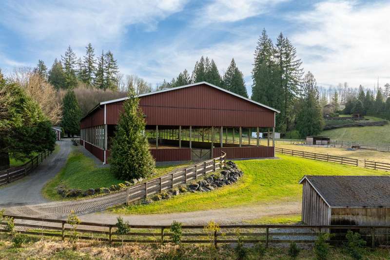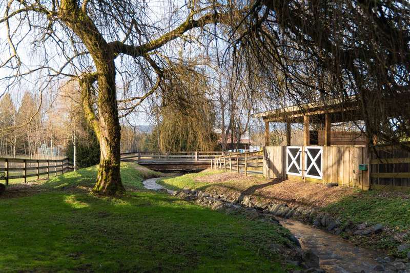 Cobblestone Farm - a premier equestrian property in Glen Valley, just 10 min from Thunderbird Show Park. Spanning 8.3 acres, it features a pristine hunter/jumper facility w/ a renovated country house, a Gambrel-style barn for 15 horses & extensive turnout. A charming brook crossed by multiple bridges that enhances the serene landscape. The fully renovated home offers a unique layout w/ covered verandahs, grand foyer, spacious living areas & a luxurious master suite. High-end appliances, outdoor pool, & a hidden loft to add to its charm. The barn includes oversized stalls, heated facilities, & a legal loft apartment. Add'l amenities include a 5-horse exerciser, covered indoor arena, oversized outdoor ring, & shelters/paddocks. Thoughtfully designed for horse welfare, an extremely rare find.