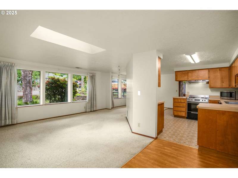 One-level living in this classic Hillsdale charmer with wraparound floorplan on large, private lot. This home is in solid shape, has tons of potential and is ready for your personal touches. Move right in and slowly improve to your taste. Super upside potential. Living and dining rooms feature large north-facing windows for natural light all day. Open efficient kitchen has gas range and serving peninsula. Vaulted family room includes a woodstove and slider to a big private deck where you can entertain or simply enjoy viewing the large garden.King-size vaulted primary suite has walk-in closet and bathroom with double sinks. Full-size laundry room with sink and storage. Single detached garage creates welcoming entry breezeway. This neighborhood can’t be beat. Walking distance to tasty restaurants, coffee shops, breweries, shopping destinations, Hillsdale Library, parks, top-notch schools and friendly neighbors, you'll have everything you need right at your fingertips. [Home Energy Score = 2. HES Report at https://rpt.greenbuildingregistry.com/hes/OR10239439]