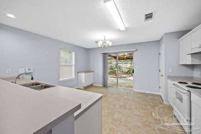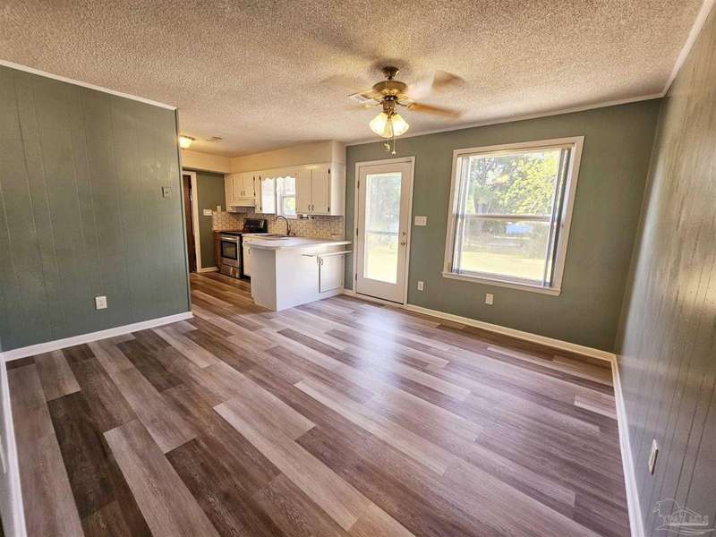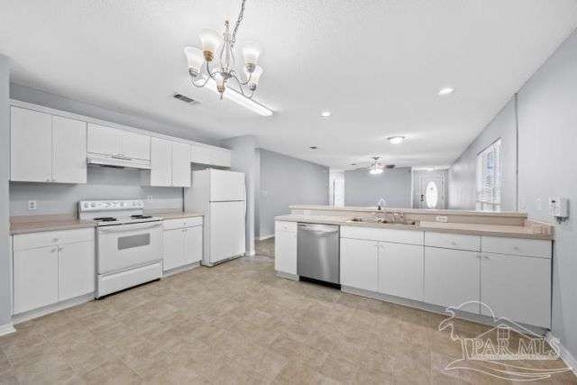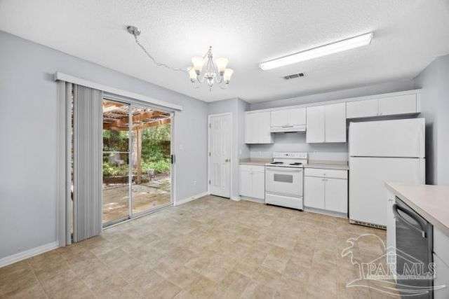 PSST! Yes, you. I heard you were looking for an INCREDIBLE VALUE FOR MONEY! HERE IT IS! Welcome to this delightful three bedroom, two bathroom home featuring a spacious open-concept, split floor plan, ideally located in Northwest area of Pensacola with no HOA restrictions! Step through the covered front porch into a welcoming foyer that opens into a generous living room, complete with a ceiling fan and ample space for your furnishings. The adjoining eat-in kitchen boasts a high-top breakfast bar overlooking the living room, perfect for entertaining. You'll appreciate the kitchen's pantry and included appliances: refrigerator, stove, and dishwasher. The spacious primary suite offers comfort and privacy, featuring a large bathroom with a double vanity, shower, and an expansive walk-in closet. The split floor plan provides two additional bedrooms and a full guest bathroom on the opposite side of the home. Additional features include a single-car garage, covered back porch, and a natural backyard, ideal for relaxing or entertaining. Neutral paint tones throughout make it easy to customize the space to your style. This one is a gem so schedule your private tour today!