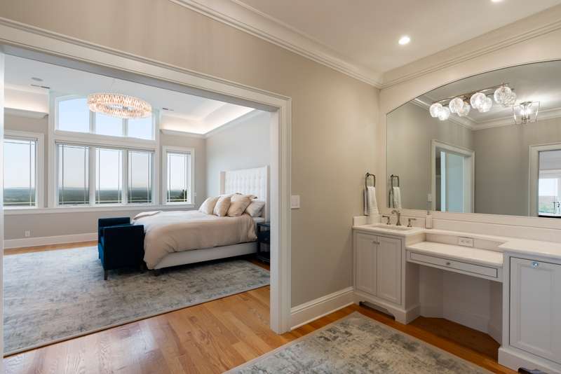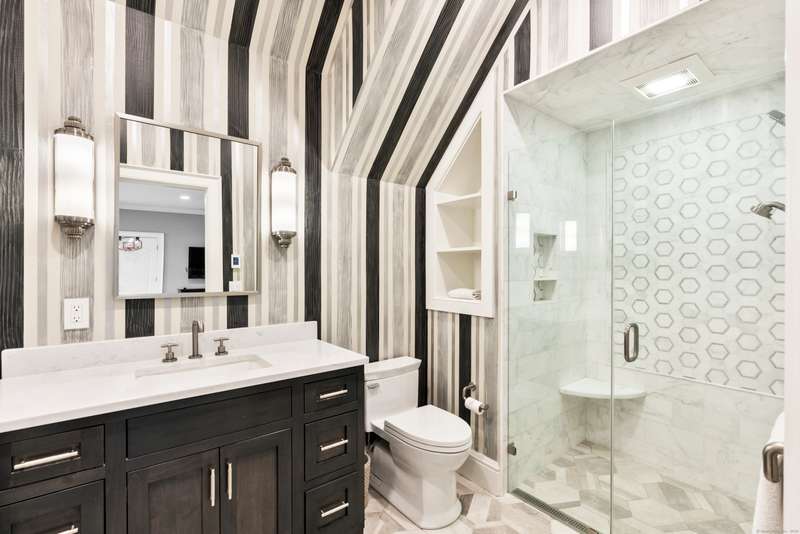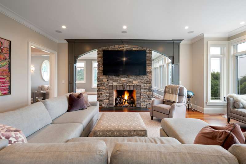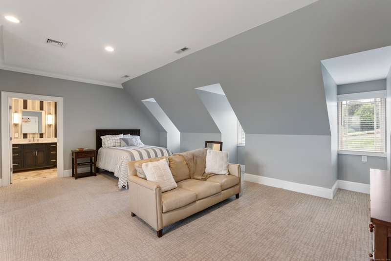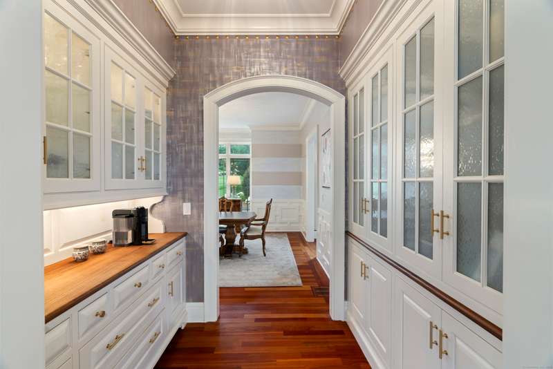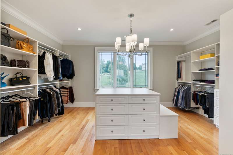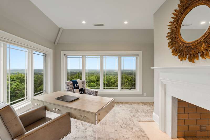 Designed to Perfection - An Interior Designer's Own home! Tucked on a private perch, in a sought-after Glastonbury cul-de-sac neighborhood, this impeccably reinvented home is truly a perfect 10. Enjoy breathtaking views of Hartford River Valley and the Farmington Valley from a private and beautifully landscaped setting. Step inside the dramatic two-story foyer, where rich cherry herringbone hardwood floors set a tone of timeless sophistication. The flexible and thoughtfully designed floor plan includes a living room with fireplace and a sun-filled conservatory-ideal for home office, entertaining, or a quiet retreat. At the heart of the home is a great room that opens invitingly to a true oversized chef's kitchen, outfitted with top-of-the-line Wolf appliances, including a 6-burner range, double ovens, pot filler, warming drawer, Sub-Zero refrigerator, pastry shelf and wine & beverage cooler. There is an office nook which could double as a walk-in pantry; as well as a butler's pantry. E