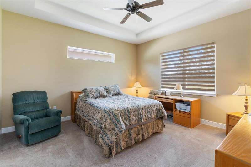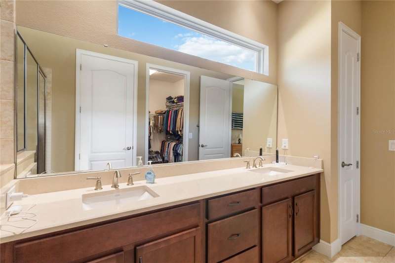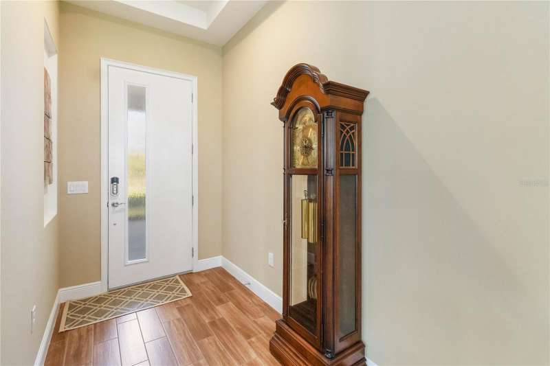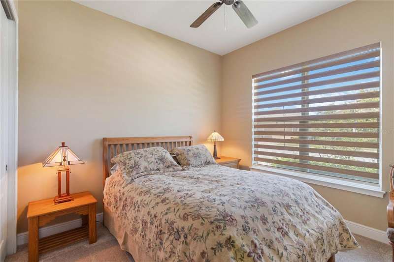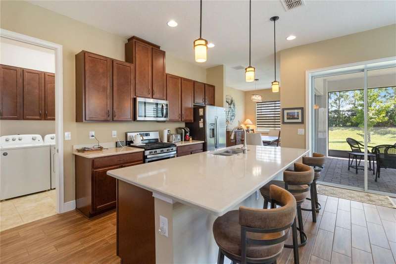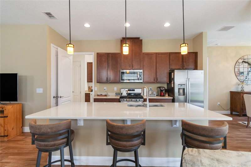 Meticulously kept Anna Maria floor plan located in the well sought after Gated 55+ Active Del Webb Twin Lakes community. Property featuring Custom painting and stunning staggered Plank tile flooring throughout. Custom 42" kitchen Cabinets, Island features custom edged Quartz countertop, pantry, custom pendant lights, and chandelier in the formal dining area/Den/Office. The living room features plank flooring and zebra custom shades. Sliding glass doors lead to screened in Lanai with custom ceiling fan & light to enjoy your morning coffee. Den/Office area features Sliding glass doors. Master bedroom with custom zebra blinds, trey ceiling, and ceiling fan. The master bedroom bathroom features custom glass doors, diamond shaped flooring in the shower, and custom tiling. Double vanity edged Quartz countertops. Large, carpeted walk-in closet. Laundry room tailored with upgraded upper cabinets as well as lower cabinets for great storage, ceramic tile flooring, and beautiful quartz countertops. Guest bedroom ceiling fan and custom zebra shades. The Garage has built-in Storage closets. Amenities include a Resort style pool, Lap Pool and 3rd pool on the carriage house side, 20,000 square foot Gorgeous Clubhouse, State of the art Fitness Center, Flex room, Tennis Courts, Putting Green, Walking Trails, Pickle Ball Court, Fishing, and Pontoon Boats and Jon boat to use on Live Oak Lake! The community has many active and socializing activities. View today!