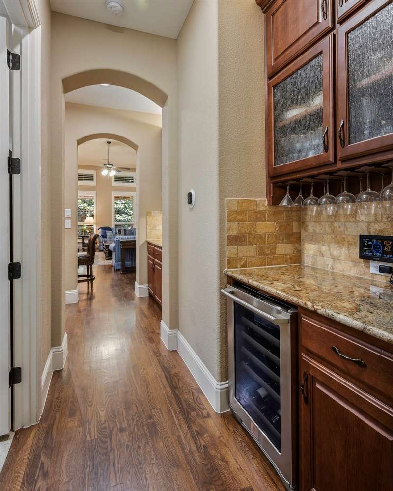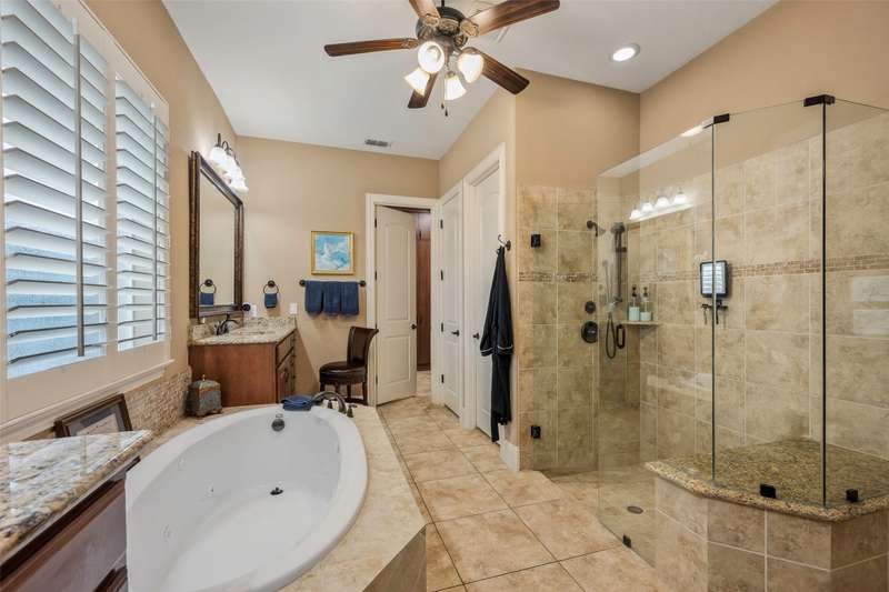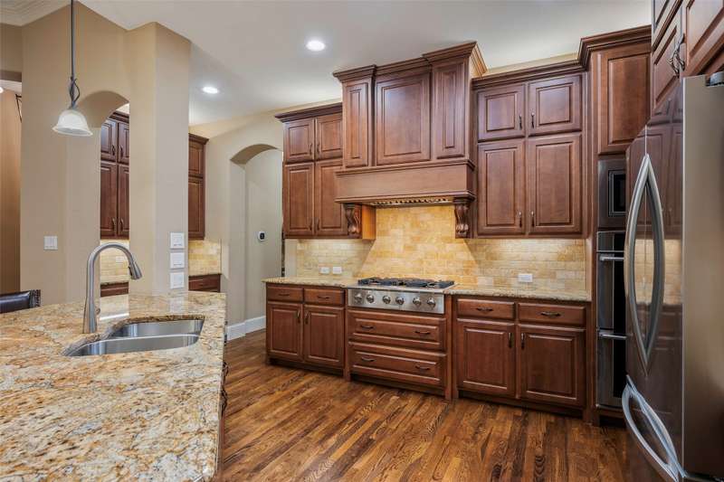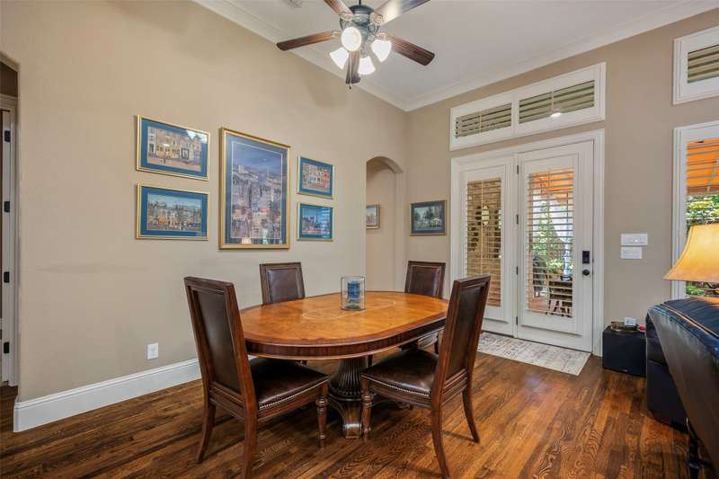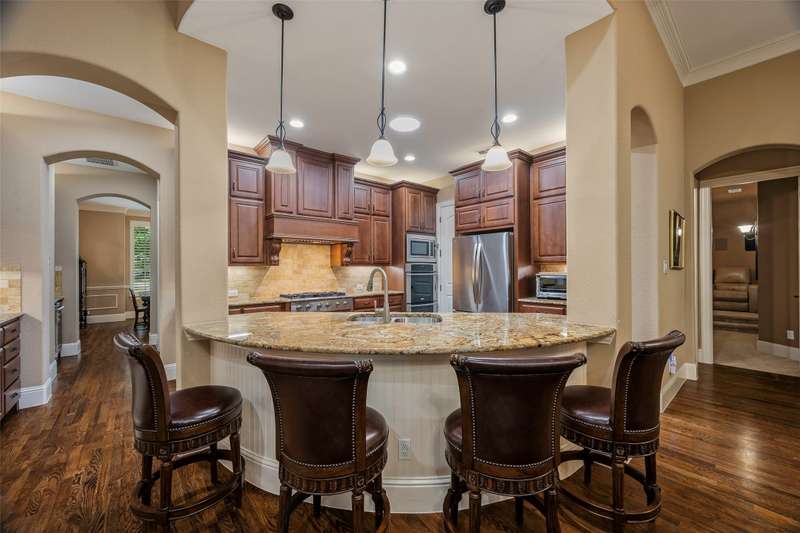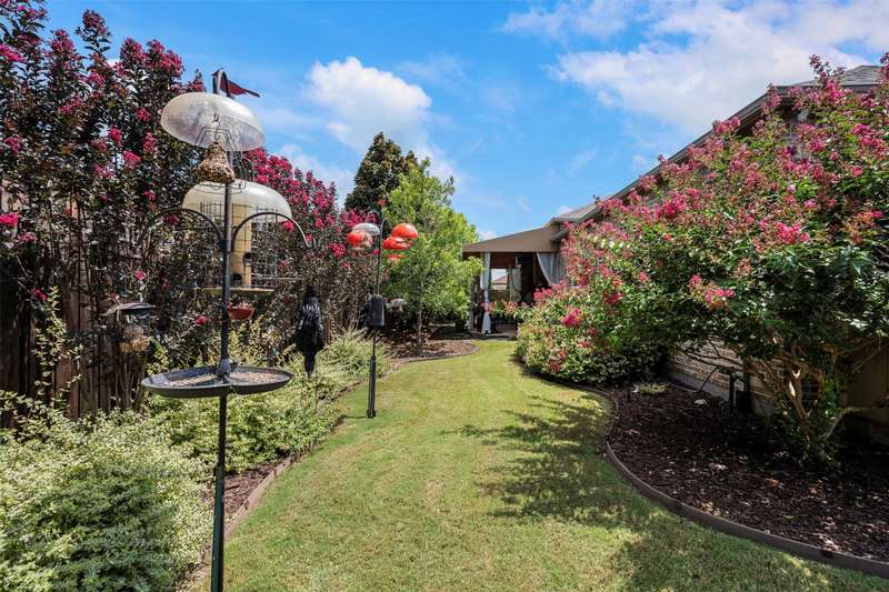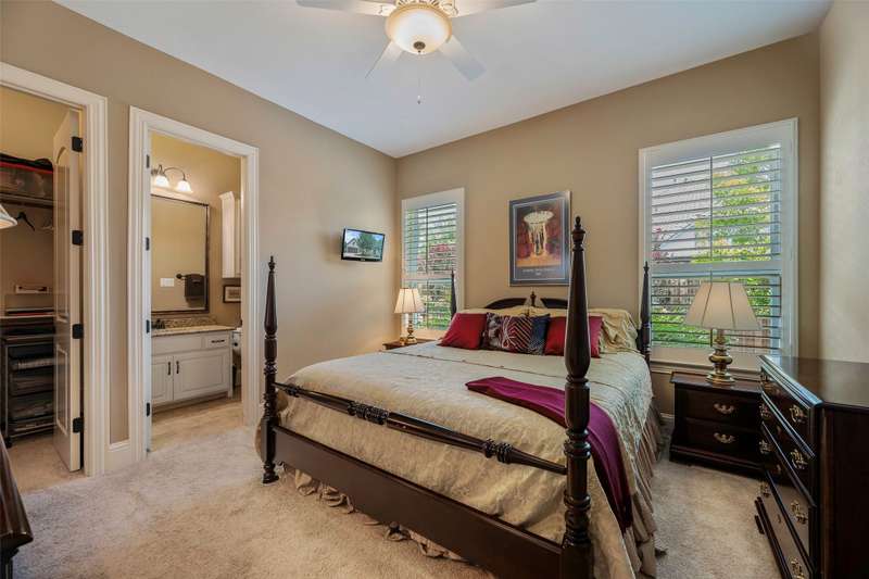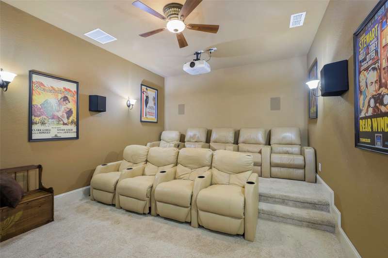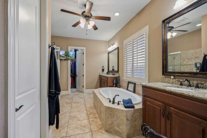 Stunning, one-story, well-appointed home located in one of the top five master-planned communities in America, offering resort-style amenities and a family-friendly environment. This beautifully maintained property showcases rich hardwood flooring throughout the main living areas and an elevation that creates the appearance of two floors, combining timeless elegance with everyday durability. The gourmet kitchen is a chefs dream, featuring granite countertops, an Electrolux 6-burner gas cooktop, double Electrolux ovens, and butlers pantry complete with a dedicated wine refrigeratorperfect for entertaining or casual family gatherings. Designed with flexibility in mind, the home features a dedicated media room for movie nights, as well as an exercise room that can be converted into an extra bedroom, home office, or playroom to suit your lifestyle. The spacious primary suite is a true retreat, boasting a private sitting area with a dramatic cathedral ceiling, creating an airy and relaxing space. The spa-like primary bath features dual vanities, a hydrotub for soaking and relaxation, and two walk-in closet systems offering ample storage. Step outside to a large covered outdoor patio ideal for al fresco dining or lounging. Mature magnolia trees provide privacy and beautiful views, while gorgeous landscaping enhances curb appeal and overall serenity of the space. Residents of this exceptional guard-gated community enjoy an unparalleled lifestyle with access to a grand clubhouse, resort-style pool, fitness center, event spaces, scenic parks, and playgrounds. Its a perfect setting for families, offering security, convenience, and opportunities to connect with neighbors in a vibrant, active environment. Dont miss your chance to own this thoughtfully designed, move-in-ready home in one of the most desirable, master-planned neighborhoods in the countrycombining luxury finishes, flexible living spaces, and outstanding amenities for the ultimate in comfort and convenience.