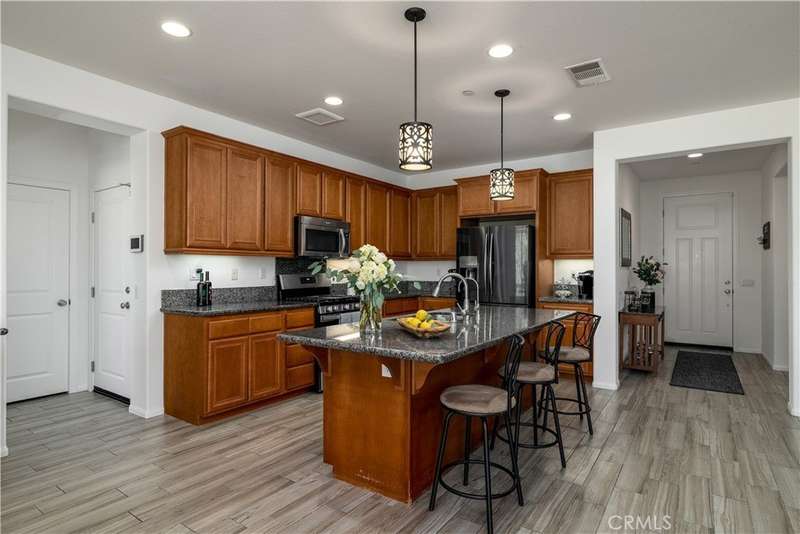 Step into this delightful 2-story gem tucked away on a peaceful cul-de-sac right in the heart of Menifee! Built in 2012 and beautifully cared for, this home blends everyday comfort with modern style. Inside, you'll love the spacious layout, complete with an upstairs bonus room (hello, home office or playroom!) and a separate laundry room that makes chores a breeze. The kitchen is a total crowd-pleaser, featuring rich maple cabinets, sleek granite countertops, and an open-concept design that’s perfect for hosting friends or whipping up your favorite meals. When it's time to unwind, head outside to your private backyard retreat—grassy space for play, a bubbling hot tub for soaking, and a cozy fire pit for s’mores and stargazing. Bonus perks? Energy-saving solar panels, a water softener system, and access to a fun-filled clubhouse with a pool and paddle boats. Plus, you’re just minutes from top-rated schools, shopping, parks, and a gorgeous lake. Don’t miss out—schedule your private tour today and fall in love!