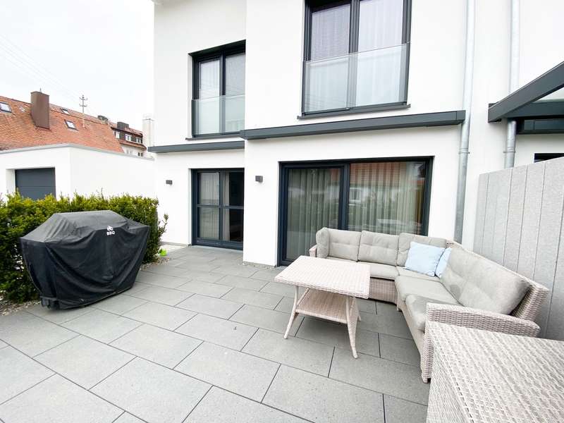 This spacious semi-detached house in a quiet location in Senden, town center, was built in 2021 and offers you plenty of space for new living ideas on approx. 174 m² of living space and a plot of approx. 273 m². The property has a total of 6.5 rooms on 3 levels and offers the best living value thanks to its high-quality furnishings. This new build is ideal for families or couples who need a lot of space. The property is entered via a hallway with guest WC and storage room. The bright, open-plan living and dining area, with access to the paved terrace, is the heart of the house. There is plenty of space here for sociable evenings with family and friends. The kitchen area, which invites you to cook, can be reached through the living and dining area. The floor-to-ceiling windows and real wood floors give the room a warm, inviting atmosphere. On the upper floor there are 3 light-flooded and generously proportioned rooms, which offer plenty of space for individual design. This floor is rounded off by a daylight bathroom with bathtub and shower, as well as a storage room. A highlight of the semi-detached house is the studio on the top floor. It can be used as a granny flat. A further room and a bathroom with shower complete this level. The basement, equipped with underfloor heating, offers further interesting possibilities. In addition to a large storage room and a laundry room, there is a large room that could be used as an office/hobby room or as a realm for teenagers, for example. The well-kept garden in front of the house with a small terrace is sure to become a family favorite. A garage parking space and an outdoor parking space complete the property. Have we piqued your interest? We look forward to hearing from you. Please understand that only inquiries with complete contact details (name, address, telephone number, e-mail address) can be processed.