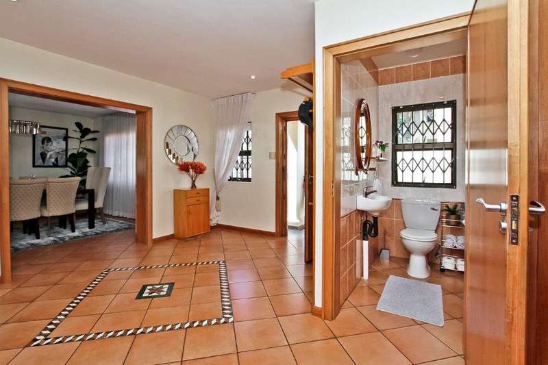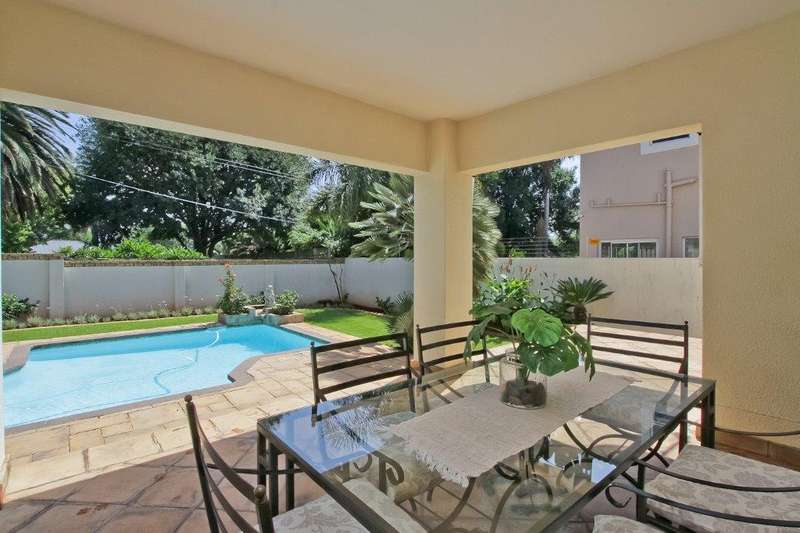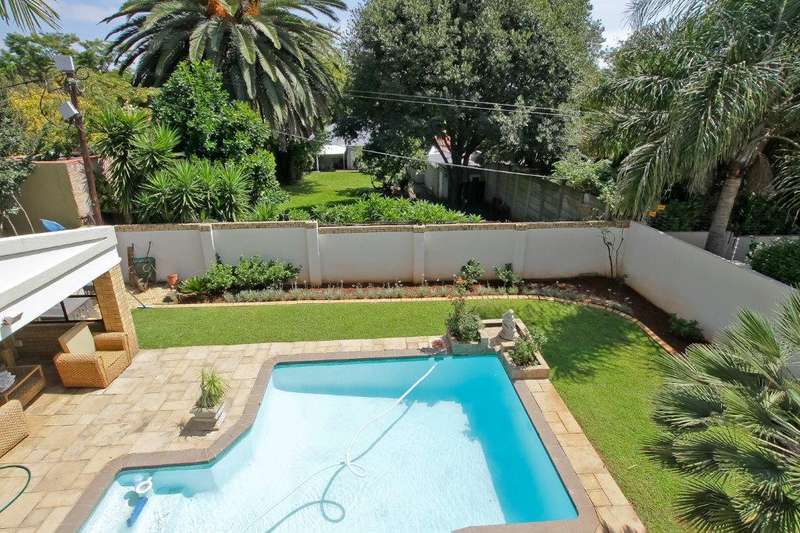 Cluster style 4 bedroom home on Bedfordview border in secure enclosure. Tastefully renovated double storey home ideal for the busy lifestyle. Downstairs is a welcoming reception room leading to dining room, tv room, lounge and modern, well appointed kitchen with separate scullery, gas stove and granite tops. There is also a guest toilet downstairs. Upstairs are 4 light bedrooms with built in cupboards and 2 bathrooms. The main bedroom has an adjoining room which would make an ideal nursery/study/pyjama lounge. Outside is a covered entertainment area next to the pool plus a covered patio leading out from the lounge. Double garages and additional secure parking. Pre paid electricity. Inverter, solar heated pool. Asking R2 700.000